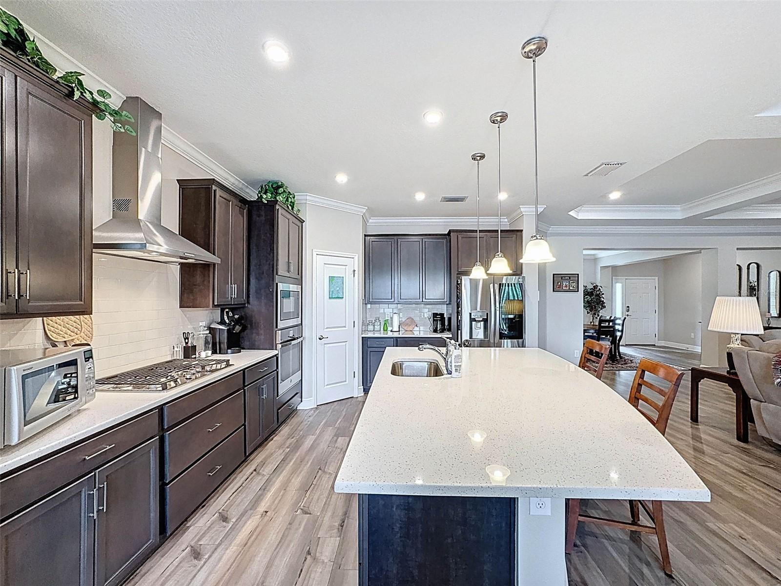 Bem -vindo a este requintado 3/2.5/3 localizado nas Cascades de Southern Hills, uma comunidade de mais de 55 anos com comodidades e conveniências de estilo resort, incluindo uma piscina comunitária, quadras de bola e tênis, biblioteca, um centro de fitness e muito mais. As taxas do HOA também incluem manutenção de internet, cabo e gramado. Construído em 2022, esta residência meticulosamente mantida está pronta para a mudança! O vendedor está disposto a negociar os móveis! Ao entrar, você é recebido com uma planta baixa brilhante e convidativa - uma área de jantar formal, uma sala grande com tetos de alojamento, um recanto de café da manhã e uma cozinha gourmet com armários de 42 '' com moldagem por coroa, portas suaves, portas de quartzo, alcance de gás e forno de parede (aço sem standless, claro). Os controles deslizantes levam ao lanai exibido com vistas da lagoa - um excelente lugar para relaxar e apreciar o clima da Flórida. O privilégio principal de grandes dimensões (também com um teto dividido) tem um grande chuveiro, pias duplas e um enorme closet. Dois quartos adicionais bem equipados proporcionam conforto e conveniência para os hóspedes. Além disso, há um meio banho perto da área de estar adicionando funcionalidade para a vida diária. Há também uma lavanderia de grandes dimensões com muito armazenamento. Atualizações em abundância com piso LVP durável, cores modernas, iluminação embutida e uma calçada pizada! Esta casa é uma verdadeira ver! Sem zona de inundação! O vendedor possui um empréstimo de VA da taxa de juros de 3,5% de 3,5% - peça detalhes ao seu agente.