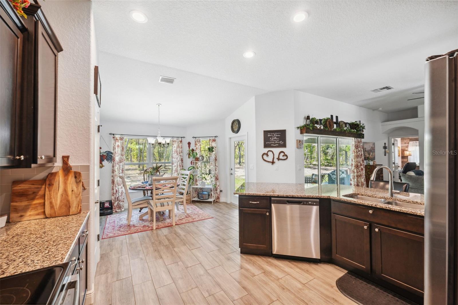 Escondido no final de um pacífico beco sem saída, esta chaleira encantadora de estilo country (com um telhado de 3 anos) fica em um amplo lote arborizado de 9,9 acres que oferece privacidade, serenidade e espaço para passear. Um jardim frontal lindamente paisagístico dá as boas-vindas a uma casa quente e convidativa, com tetos abobadados, pisos de ladrilhos de tábuas de madeira em áreas de estar e espaços úmidos e um espaçoso layout de conceito aberto que conecta perfeitamente a sala de estar, a área de jantar e a cozinha. A sala de estar mostra uma lareira aconchegante e uma parede de portas de vidro deslizantes que se abrem para uma generosa varanda coberta, perfeita para desfrutar de vistas tranquilas da floresta circundante. A cozinha é uma delícia de cozinheira com bancadas em granito, uma barra de café da manhã, canto do café da manhã e despensa. Uma planta baixa oferece privacidade adicional, com a suíte primária com um teto de trey com moldagem e iluminação de coroa, armários duplos e um luxuoso banheiro privativo com uma banheira de imersão, chuveiro separado e armário de água. Dois quartos adicionais e uma cova versátil com elegantes portas de vidro duplo oferecem espaço flexível para os hóspedes ou um escritório em casa. A lavanderia é equipada com uma pia e armários amplos, enquanto a garagem de dois carros com entrada lateral é complementada por um plugue de 220 A e possui uma entrada de automóveis padrão e circular. Fora da garagem anexada, você encontrará um plugue RV de 50 amp. Na parte traseira da propriedade, há uma garagem destacada de 2 carros com duas portas de enrolar, além de canteiros de jardim elevados e uma estrutura de estufa pronta para o seu toque. Toda a propriedade é cercada com duas entradas fechadas, incluindo um portão elétrico com acesso à chave do FOB. Para a aventura local, aproveite o impressionante Weeki Wachee Springs State Park, a apenas 22 quilômetros de distância, oferecendo caiaque, paddleboarding e o famoso show de sereia ao vivo; A Suncoast Trail fica a apenas 15 quilômetros de distância para andar de bicicleta e caminhar; e Pine Island Beach, uma pitoresca praia da Costa do Golfo perfeita para o Sunset Picnics, está localizada a 32 quilômetros de distância. O Suncoast Parkway (State Road 589) fica a apenas 7 a 16 quilômetros de distância, oferecendo acesso rápido e fácil à área da Baía da Grande Tampa - aproximadamente 80 quilômetros ao sul - fazendo comutórios, viagens de aeroporto e acesso a grandes compras, restaurantes e centros de entretenimento incrivelmente convenientes.