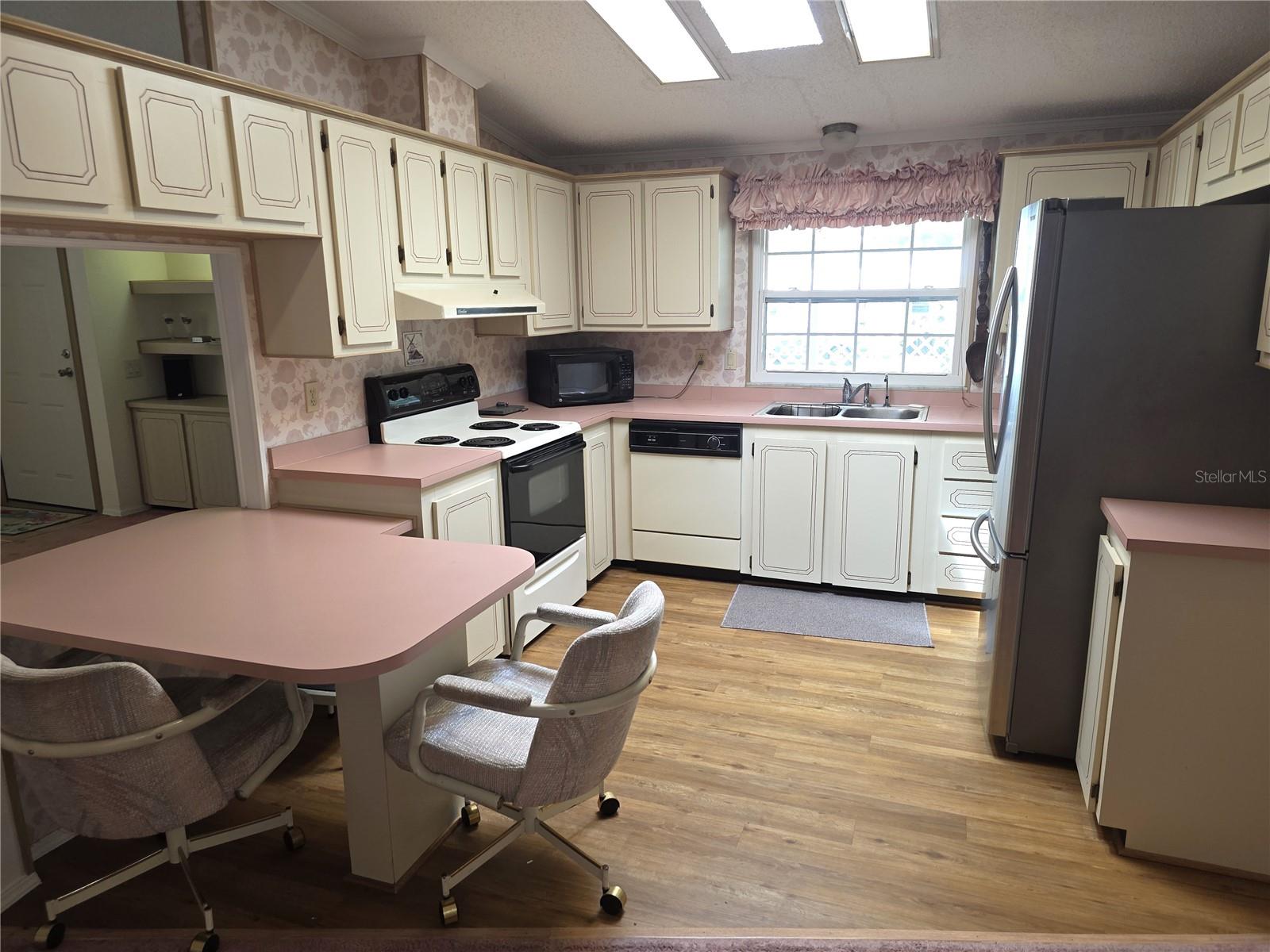 Brookridge Community -Double Lot! Campo de golfe de 2 quartos com 2 banheiros completos e uma garagem anexada de tamanho grande, além de uma garagem de 2 carros e uma garagem para carrinho de golfe anexada e galpão de armazenamento- tudo em um lote duplo 135x125. O Parcel # R2722218147405200160 está incluído na casa. - Enter The Home To The Living Room With Built In Cabinets And Shelving And Vaulted Ceilings-- Eat In Kitchen With Dual Sinks, Pantry And Breakfast Bar- The Primary Bedroom Has A Walk In Closet, Tub And Separate Shower, Skylight And French Doors- The Lanai Is 34x12 Great For Entertaining- Extras Include A Wooden Deck, Ceiling Fans, Inside laundry Area With A Closet And Cabinets, Roof Recover 2017- Decorative Curb A Lawn On Both Lotes, planta para o piso plano aberto hoje para uma exibição.