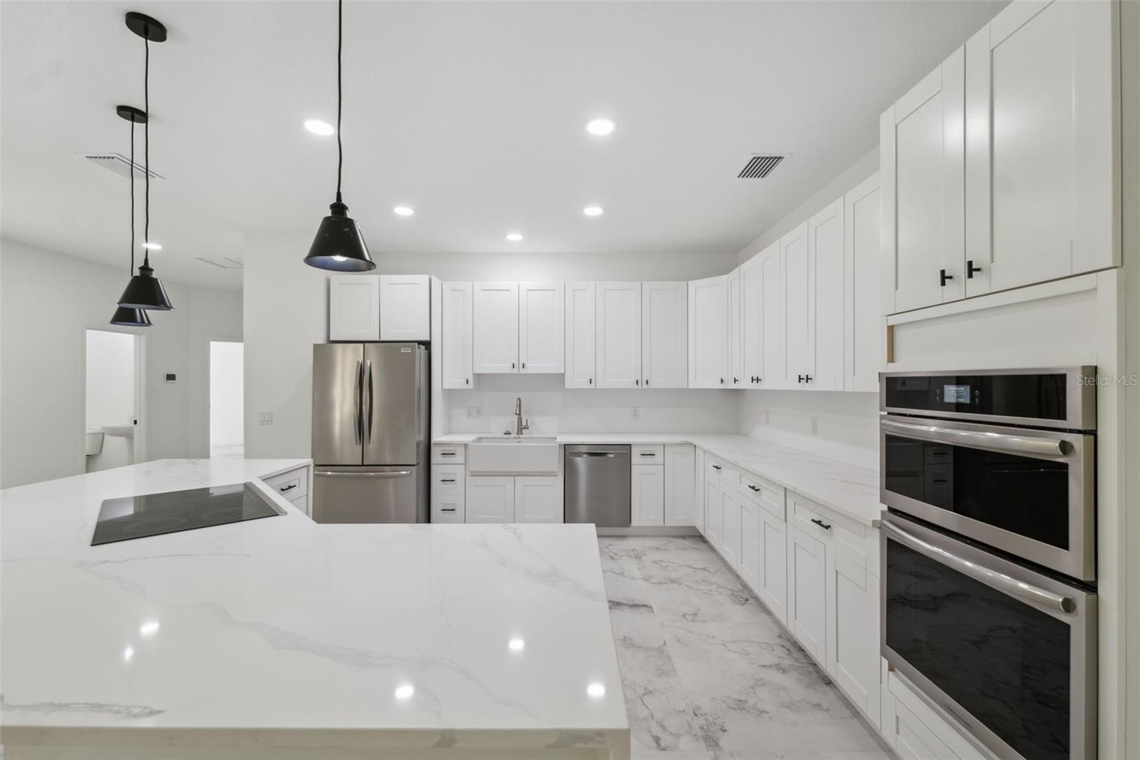 Novo casa de fazenda personalizada em 2,3 acres em Brooksville. Esta propriedade combina a eficiência moderna com os elementos de design clássicos por toda parte. O layout de conceito aberto inclui 4 quartos, 2,5 banheiros e uma espaçosa área de estar com uma lareira a lenha. A cozinha está equipada com um fogão de indução, forno duplo com fritadeira de microondas e ar, refrigerador de vinho, pia da fazenda, lava -louças e uma grande despensa com portas duplas. Os acabamentos internos incluem piso de ladrilhos de cerâmica italiano de 40 "x40", toda a iluminação LED, isolamento de espuma com spray icynene, janelas de vidro de impacto e um sistema inteligente de HVAC. A suíte do proprietário oferece um chuveiro independente com choves e acessórios de mão, uma banheira de pés de garra, vaidades duplas com espelhos iluminados por fundo, um dreno linear e um armário de água privado. O segundo banho completo inclui uma combinação de banheira/chuveiro com telha no teto. Recursos adicionais: aquecedor de água a gás sem tanque, serviço de 200-AMP, porta de garagem isolada com classificação de impacto, piso de garagem epóxi, armazenamento de garagem, armazenamento no sótão com madeira compensada, conexão de gerador de casa inteira, sarjetas, varanda da frente com teto de língua e ranhura, lanai traseiro coberto e um sistema sépticos com estação de elepatura. A lavanderia inclui uma pia e lavadora/secadora de pedestal. O Vendedor está oferecendo um crédito de US $ 5.000 para o armário personalizado e a despensa.