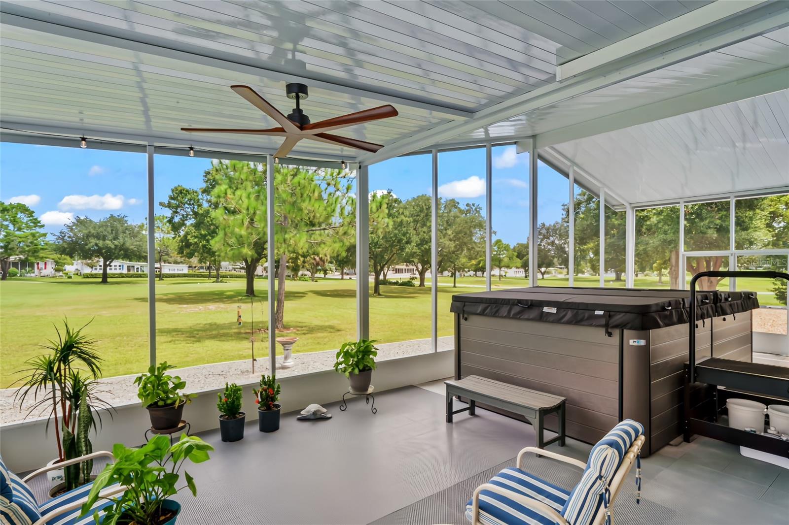 Não perca a oportunidade de comprar esta casa lindamente mantida localizada em Brookridge, uma principal comunidade adulta ativa de 55 anos. Brookridge oferece o estilo de vida da Flórida que você procura, com um campo de golfe particular, toneladas de comodidades recreativas, um portão de segurança tripulado de 24 horas e acesso conveniente a compras, restaurantes e instalações médicas. Esta espaçosa casa de 3 quartos e 2 banheiros possui um total de 3.188 pés quadrados sob o teto e está perfeitamente situado com vistas de campo de golfe. A casa foi atualizada cuidadosamente com uma moderna cozinha, exibindo armários de cor linho, utensílios de aço inoxidável e um elegante backsplash, junto com um banho primário renovado com pias duplas e amplo armazenamento. Desfrute de uma vida durante todo o ano na sala de Florida, com ar-condicionado, ou entre no Lanai, recentemente expandido (2024), com vista para o campo de golfe e inclui um spa de natação que permanecerá com a casa. Este espaço ao ar livre é ideal para relaxar ou divertir enquanto aprecia a vista. Destaques adicionais incluem uma grande garagem para carrinho de golfe com armazenamento generoso, um teto substituído em 2018, o HVAC atualizado em 2021 e um pátio de baixa manutenção sem grama para manter. A maioria dos móveis é opcional, fazendo com que essa propriedade realmente torne a chave e a mudança pronta. Com taxas baixas de HOA, isso meticulosamente cuidado de casa combina conforto, conveniência e o melhor estilo de vida da aposentadoria da Flórida. Ligue hoje para agendar uma exibição particular!