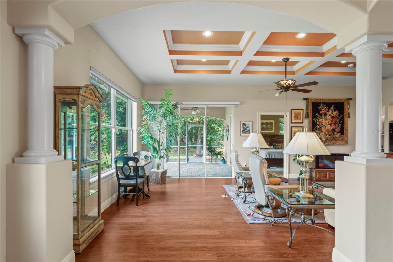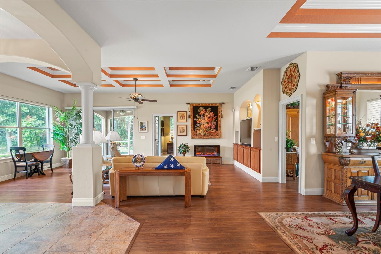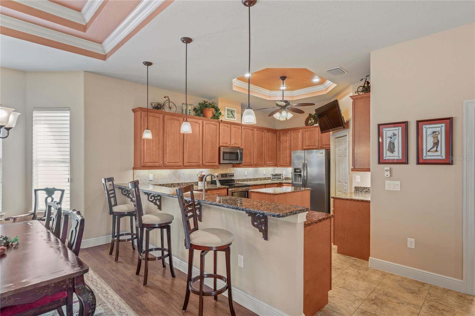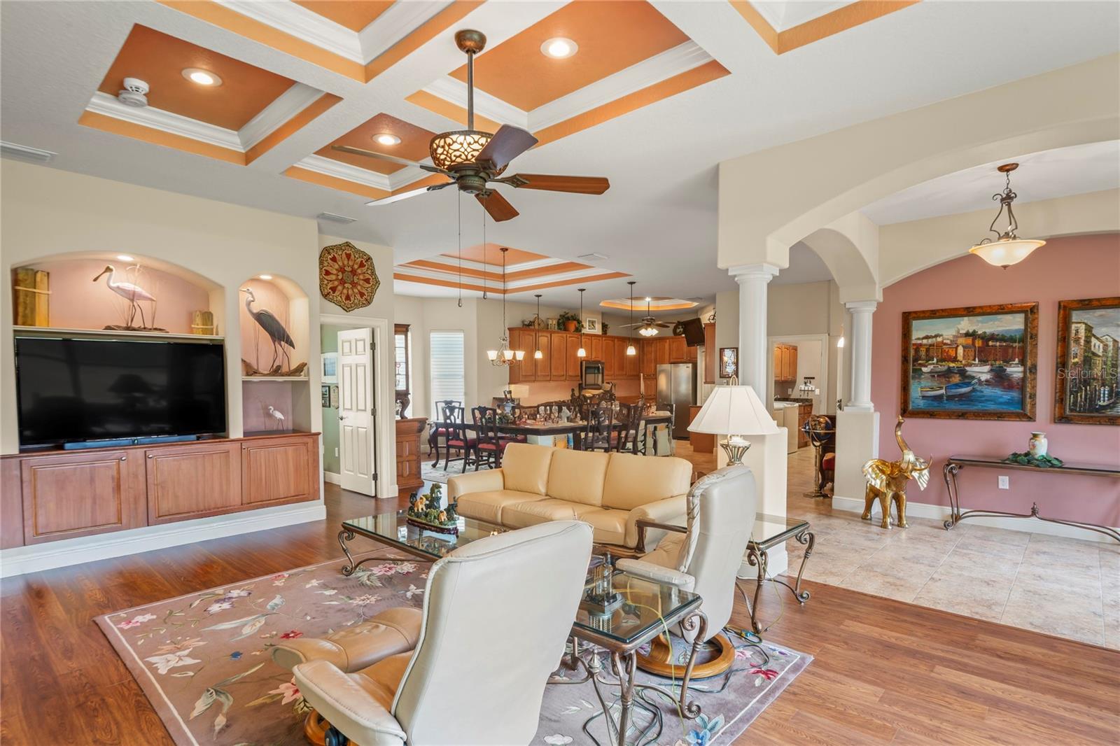 Uma ou mais fotos foram praticamente encenadas. 'Hora de mudar seu endereço' ' Mova-se para esta villa única, com 3 quartos, 2 banheiros, garagem de 2 carros e quarto flexível, oferecendo 2.212 m². Ft. de espaço descontraído. Construído em 2013, possui um piso plano aberto com balcões de granito, bandeja e tetos divididos e tratamentos de janelas personalizadas. Desfrute de vistas pacíficas do campo de golfe, formam a grande Lanai perfeita para entreter ou relaxar. A cozinha bem planejada e mantida possui espaço abundante para armários com prateleiras mais baixas, mantendo tudo de fácil acesso e o cozinheiro envolvido em todas as conversas da sala de estar e da sala de jantar. Amplo armazenamento, uma casa ao lado e o restante é toda a visão de campo de golfe. A localização privada de beco sem saída e vizinhos amigáveis tornam esta casa verdadeiramente especial.