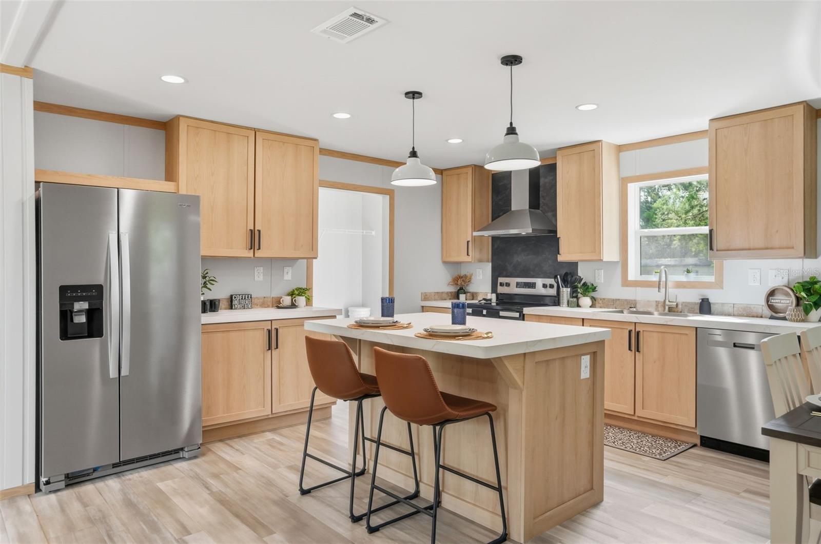 MUDANÇA PRONTA!! CASA NOVA EM PALM HARBOR!! 3 quartos + 2 banheiros + SUÍTE PRIMÁRIA IMPRESSIONANTE com banheira de imersão independente, lote de mais de 1/4 acre + em uma estrada pavimentada com lindos carvalhos maduros e SEM HOA e SEM ALUGUEL DE LOTE!! Você é dono da terra!! Tudo é NOVO!! Esta impressionante casa fabricada em Palm Harbor, totalmente nova, bem construída e de largura dupla, tem um interior de drywall totalmente acabado, moldura externa 2 x 6 (não 2 x 4) com pinos triplos em todas as aberturas externas, vigas de piso 2 x 8; sinta a diferença ao entrar! Até o rodapé da casa atende aos mais altos padrões de qualidade construído em placa de cimento maciço. A casa fica em 0,29 acre de terreno paisagístico na tranquila Brooksville — e o melhor de tudo, SEM HOA...então traga seu barco, trailer, quadriciclo, animais de estimação, traga tudo! Com 1.440 pés quadrados de espaço cuidadosamente projetado nos novos tons quentes de terra, esta casa oferece uma grande planta aberta com a cozinha aberta para a sala de jantar e uma grande sala, fazendo com que esta casa pareça incrivelmente espaçosa, iluminada, iluminada e alegre. Ótimo para receber família e amigos!! A casa está repleta de atualizações, incluindo luxuosos pisos de pranchas de vinil (sem carpete), tornando-a tão elegante quanto de baixa manutenção. Até o rodapé da casa é o Entre na cozinha de design, onde nenhum detalhe foi esquecido. Você vai adorar a ampla ilha central com balcão de café da manhã, perfeito para assentos extras!! A cozinha possui eletrodomésticos de aço inoxidável totalmente novos, com um exaustor extra atualizado com backsplash de designer (o ponto focal da cozinha), armários de madeira real, lindas bancadas modernas e iluminação, pia e torneiras de designer. Muito espaço lindo na bancada e muitos armários para bastante armazenamento! A suíte principal é um verdadeiro retiro, com um quarto espaçoso e um luxuoso banheiro privativo que você raramente vê --- com uma IMPRESSIONANTE banheira de imersão independente, box amplo separado, pias duplas de design e belas janelas de destaque sobre a banheira de imersão que dão ao espaço uma sensação sofisticada de spa. Este banheiro principal é super espaçoso e realmente uma atualização impressionante para a casa!! Você vai querer mostrar isso aos seus convidados!! O segundo banheiro tem banheira e chuveiro combinados com acabamentos combinando, dando aquela sensação contínua em toda a casa!! O 2º e o 3º quartos são ambos de bom tamanho!! Tudo nesta casa é NOVO: poço novo, fossa séptica nova com garantia de manutenção de 2 anos, HVAC novo, todos os eletrodomésticos novos, aquecedor de água novo e a casa é coberta por garantia do fabricante de 1 ano! Aproveite a tranquilidade da área circundante, adornada com os icônicos grandes carvalhos pelos quais Brooksville é conhecida. E quando chegar a hora de fazer tarefas ou se deslocar, você estará a poucos minutos de mercearias, lojas, restaurantes e da Suncoast Parkway para fácil acesso a Tampa e além. 30 minutos para o pôr do sol em Pine Island, Parque Aquático Buccaneer Bay, caiaque e paddle boarding no cristalino rio Weeki Wachee, nadar com os peixes-boi, passear de barco e pescar no Golfo da América! 40 minutos para Tampa para trabalhar e se divertir!! Não perca esta rara oportunidade de possuir uma casa pronta para morar em um terreno com todos os benefícios de uma nova construção - e nenhuma das restrições! Agende sua exibição privada hoje e comece a viver o estilo de vida da Flórida com que você sempre sonhou!