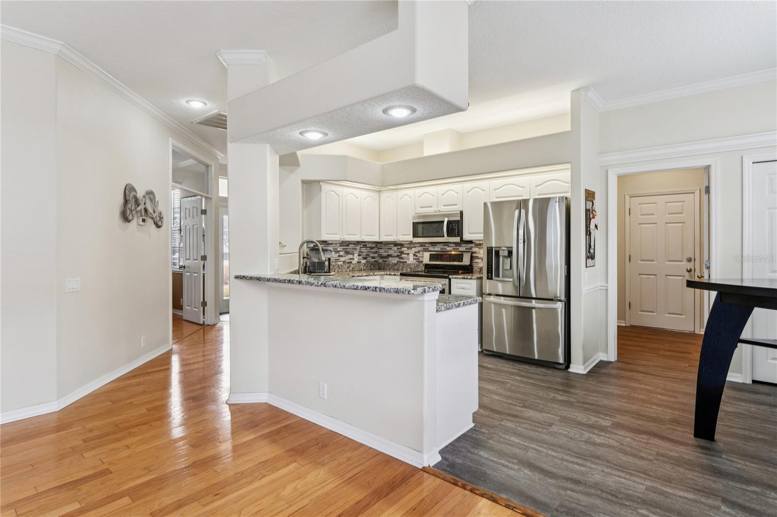 Uma ou mais fotos foram virtualmente encenadas. Esta villa fechada de 1.720 pés quadrados com 2 camas e 2 banheiros em Silverthorn fica em um terreno de esquina enorme com piscina privativa e vista para o campo de golfe. A planta aberta apresenta piso de madeira real, quartos divididos, uma sala flexível e uma cozinha atualizada e banheiros com eletrodomésticos de aço inoxidável. A piscina privada foi recentemente atualizada com uma nova bomba, recapeamento e nova tela. Convenientemente localizado perto de comodidades comunitárias, incluindo basquete, pickleball, tênis, piscina e academia. As taxas HOA incluem manutenção básica de cabo e quintal de internet e pintura externa - perfeita para uma vida de baixa manutenção na Flórida.