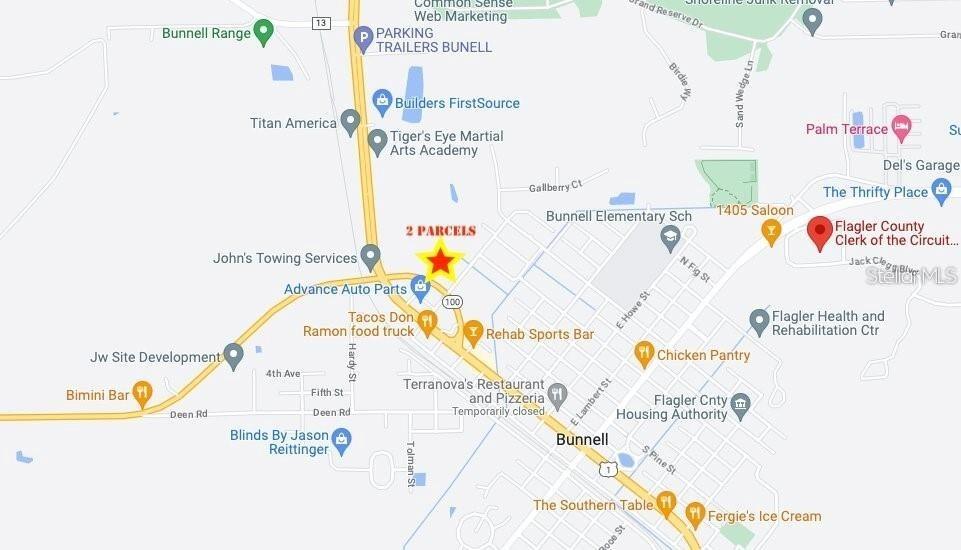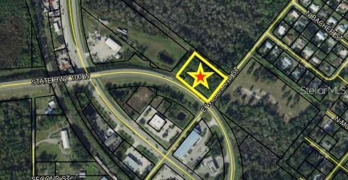 Duas parcelas comerciais com 1,28 acres localizadas em grande área de alta visibilidade de Bunnell Florida na esquina do estado Hwy 100 West e E. Zoneamento comercial de Woodland St. B-1. Financiamento do proprietário disponível. Não perca esta oportunidade!