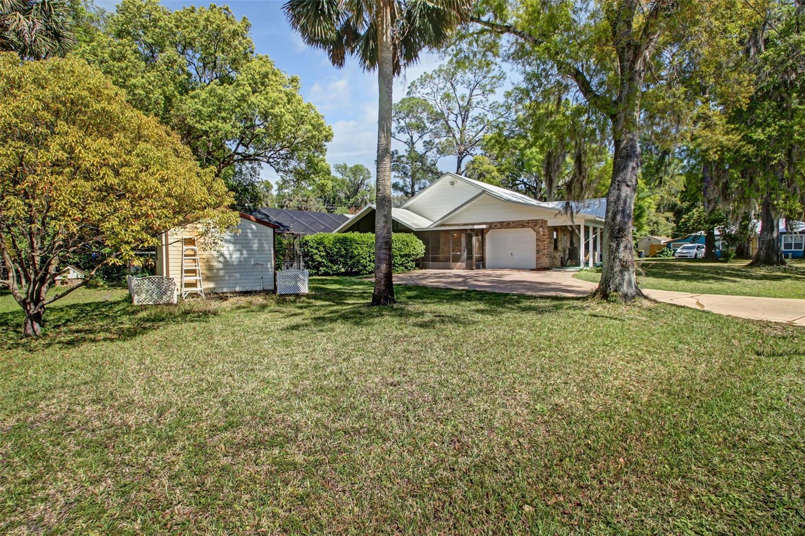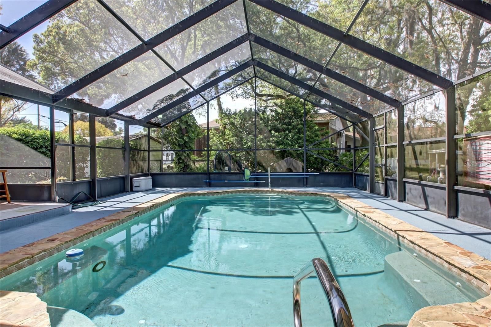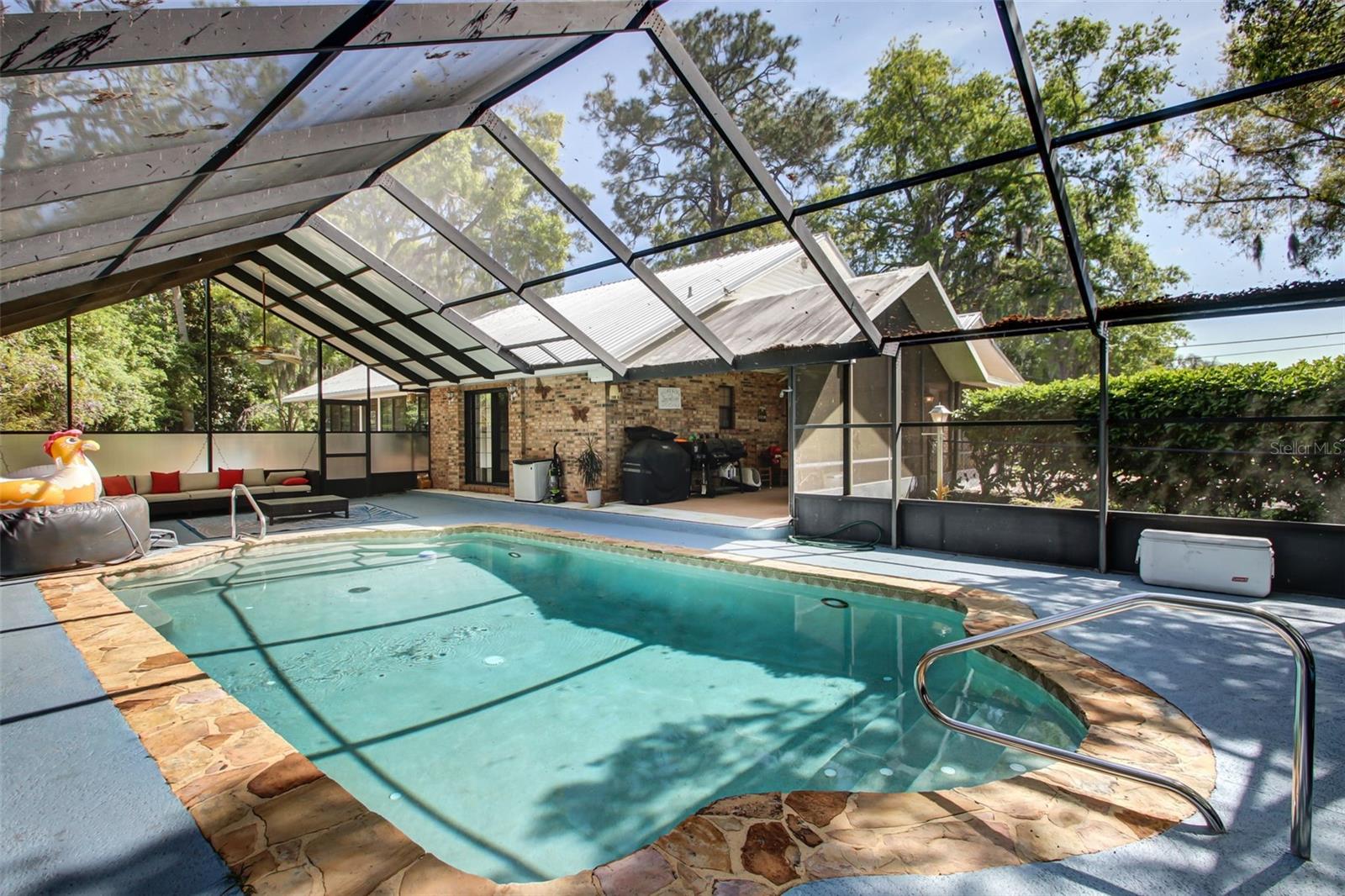Bem -vindo ao seu sonho oásis! Esta requintada piscina de 3 quartos possui um cenário pitoresco parecido com um parque e está aninhado em uma propriedade de canto que abrange três lotes, totalizando 0,36 acres de exuberante tranquilidade. 2023 Telhado de metal, novo piso de tábua de vinil, totalmente cercado para a privacidade final, este paraíso oferece a mistura perfeita de luxo e conforto. Entre para descobrir novos pisos por toda parte, com elegantes pisos de madeira na sala de estar e na área de jantar, complementados pelo piso de tábua de vinil de luxo na sala e nos quartos da Flórida. Um telhado novinho em folha e um aquecedor de água sem tanque garantem a eficiência e a paz de espírito nos próximos anos. Projetado para conveniência e relaxamento ideais, a planta baixa garante a privacidade, enquanto a sala de estar mostra uma janela de sacada encantadora com um banco aconchegante, perfeito para se aquecer com a luz solar quente. Suas aventuras culinárias aguardam na cozinha aberta, completa com uma grande ilha central e novos acessórios e iluminação. Revime-se na convidativa sala da Flórida, com prateleiras embutidas e uma lareira a gás, ideal para reuniões aconchegantes ou noites tranquilas em casa. Do lado de fora, um Lanai, de grande porte, acena, com duas grandes áreas cobertas para entretenimento ou simplesmente desfrutar do ambiente sereno. Com as comodidades em abundância, esta casa oferece uma garagem de 1 carro, detectores de movimento, segurança sólida de janela e porta e um poço na propriedade. Além disso, um galpão de armazenamento de 10 x 10 com água e água oferece amplo espaço para todas as suas necessidades de armazenamento. A nova bomba de piscina garante águas cristalinas em seu oásis privado. Abrace a liberdade de trazer seu trailer ou brinquedos, com amplo espaço para estacionamento. Além disso, aproveite a conveniência de um parque próximo na mesma rua. Observe que a geladeira na cozinha não transmite. Não perca esta rara oportunidade de possuir uma fatia do paraíso, onde o luxo encontra tranquilidade. Programe sua exibição hoje e experimente o epítome da vida na Flórida!