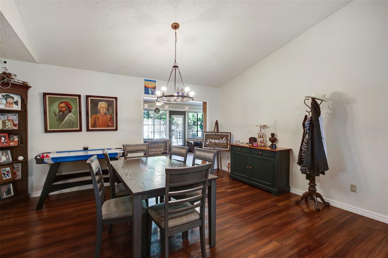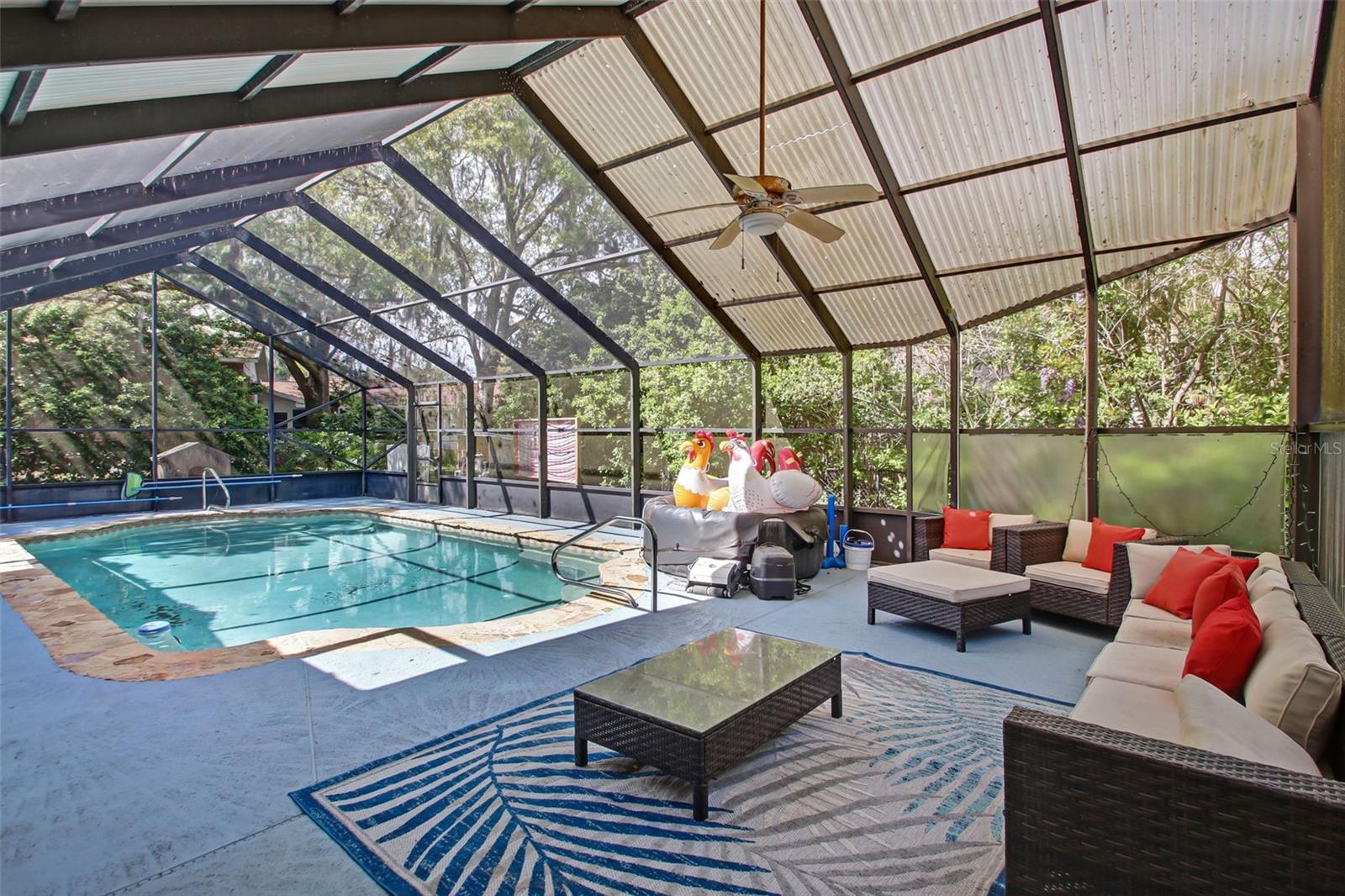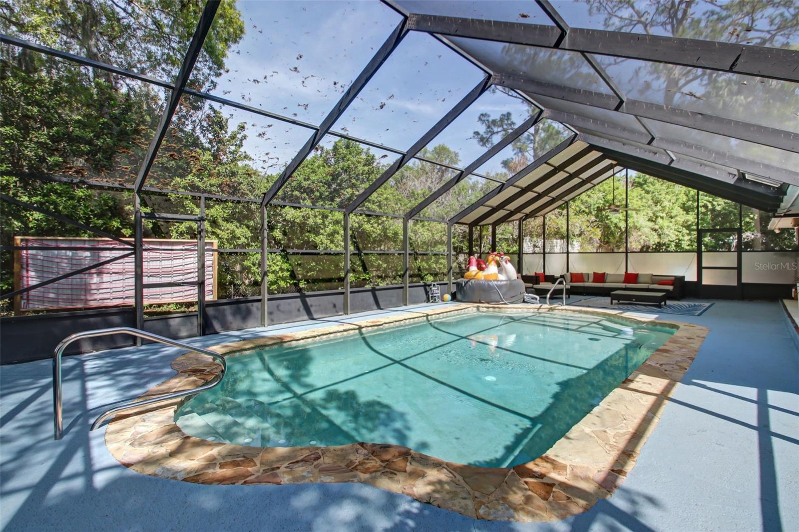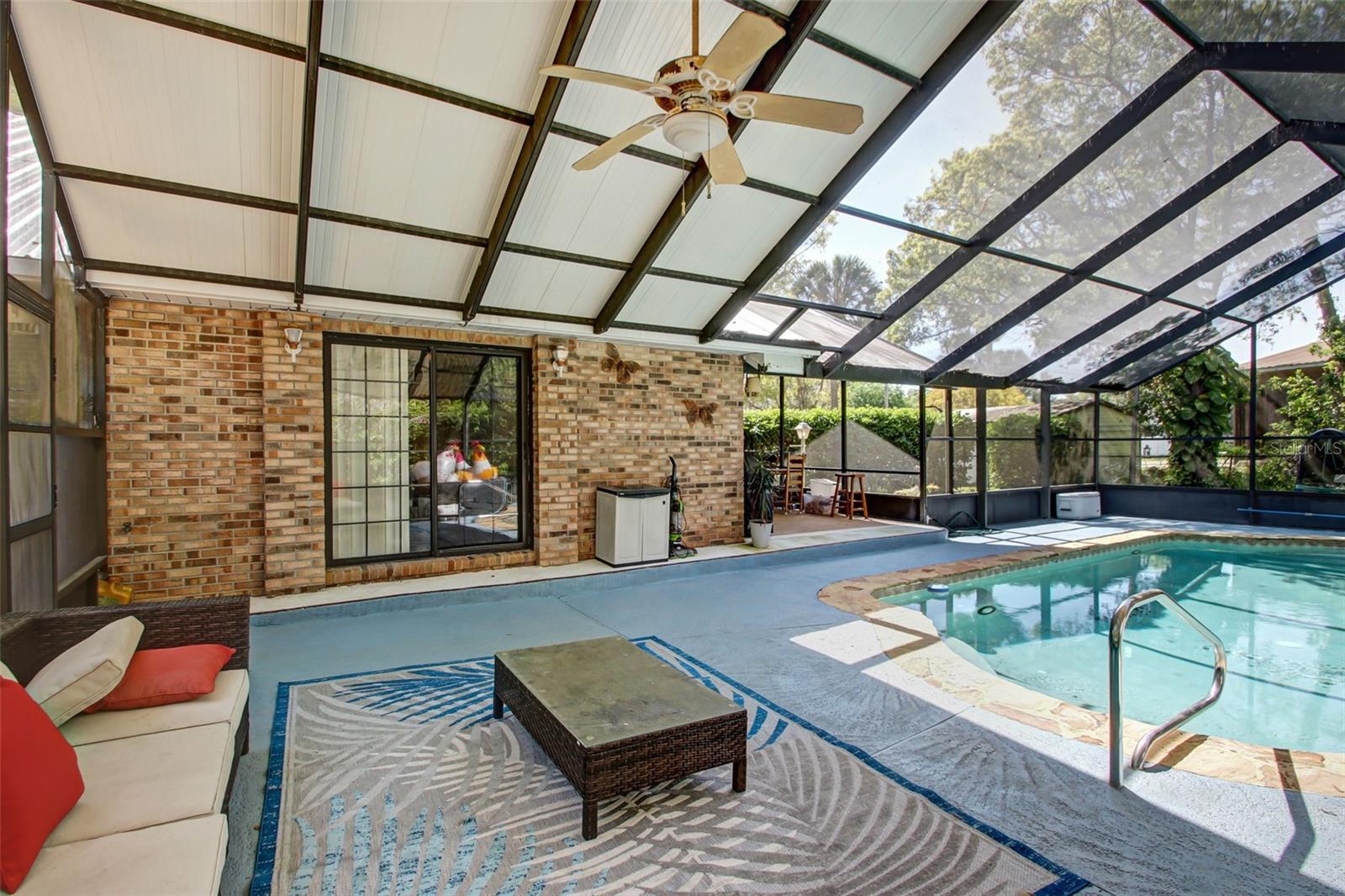 Bem -vindo ao seu sonho oásis! Esta requintada piscina de 3 quartos possui um cenário pitoresco parecido com um parque e está aninhado em uma propriedade de canto que abrange três lotes, totalizando 0,36 acres de exuberante tranquilidade. 2023 Telhado de metal, novo piso de tábua de vinil, totalmente cercado para a privacidade final, este paraíso oferece a mistura perfeita de luxo e conforto. Entre para descobrir novos pisos por toda parte, com elegantes pisos de madeira na sala de estar e na área de jantar, complementados pelo piso de tábua de vinil de luxo na sala e nos quartos da Flórida. Um telhado novinho em folha e um aquecedor de água sem tanque garantem a eficiência e a paz de espírito nos próximos anos. Projetado para conveniência e relaxamento ideais, a planta baixa garante a privacidade, enquanto a sala de estar mostra uma janela de sacada encantadora com um banco aconchegante, perfeito para se aquecer com a luz solar quente. Suas aventuras culinárias aguardam na cozinha aberta, completa com uma grande ilha central e novos acessórios e iluminação. Revime-se na convidativa sala da Flórida, com prateleiras embutidas e uma lareira a gás, ideal para reuniões aconchegantes ou noites tranquilas em casa. Do lado de fora, um Lanai, de grande porte, acena, com duas grandes áreas cobertas para entretenimento ou simplesmente desfrutar do ambiente sereno. Com as comodidades em abundância, esta casa oferece uma garagem de 1 carro, detectores de movimento, segurança sólida de janela e porta e um poço na propriedade. Além disso, um galpão de armazenamento de 10 x 10 com água e água oferece amplo espaço para todas as suas necessidades de armazenamento. A nova bomba de piscina garante águas cristalinas em seu oásis privado. Abrace a liberdade de trazer seu trailer ou brinquedos, com amplo espaço para estacionamento. Além disso, aproveite a conveniência de um parque próximo na mesma rua. Observe que a geladeira na cozinha não transmite. Não perca esta rara oportunidade de possuir uma fatia do paraíso, onde o luxo encontra tranquilidade. Programe sua exibição hoje e experimente o epítome da vida na Flórida!