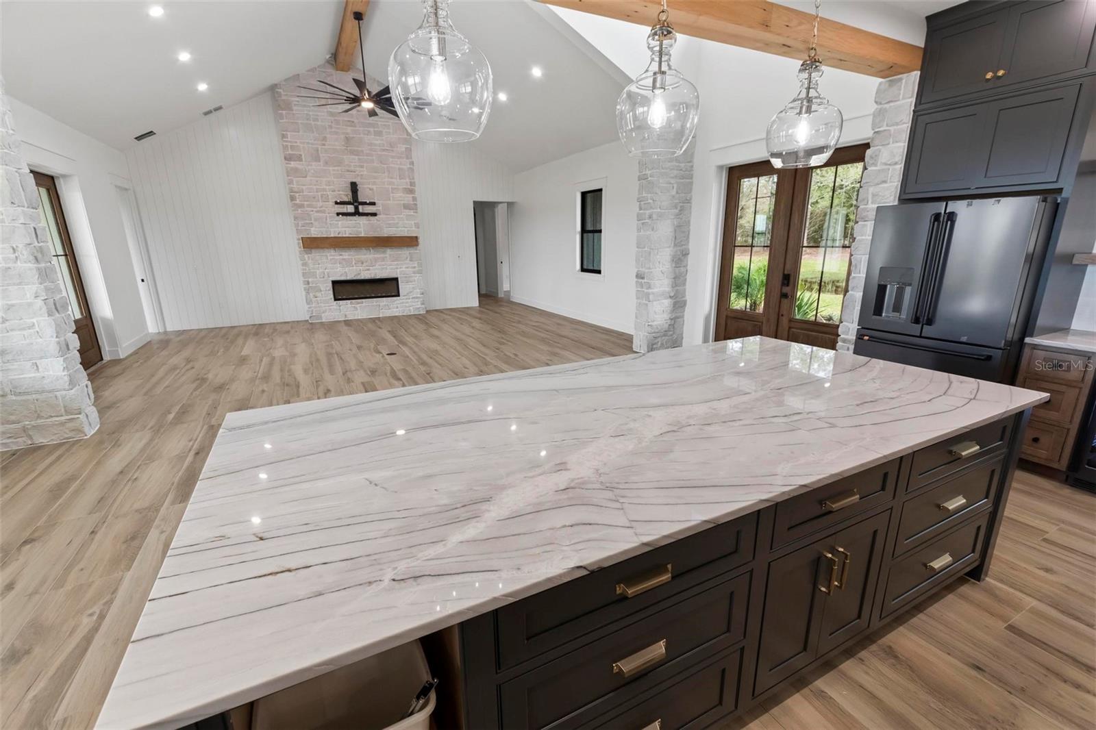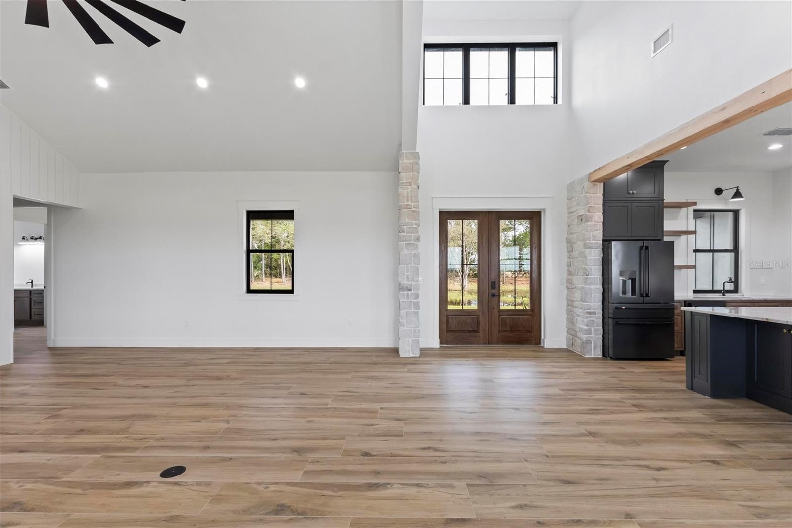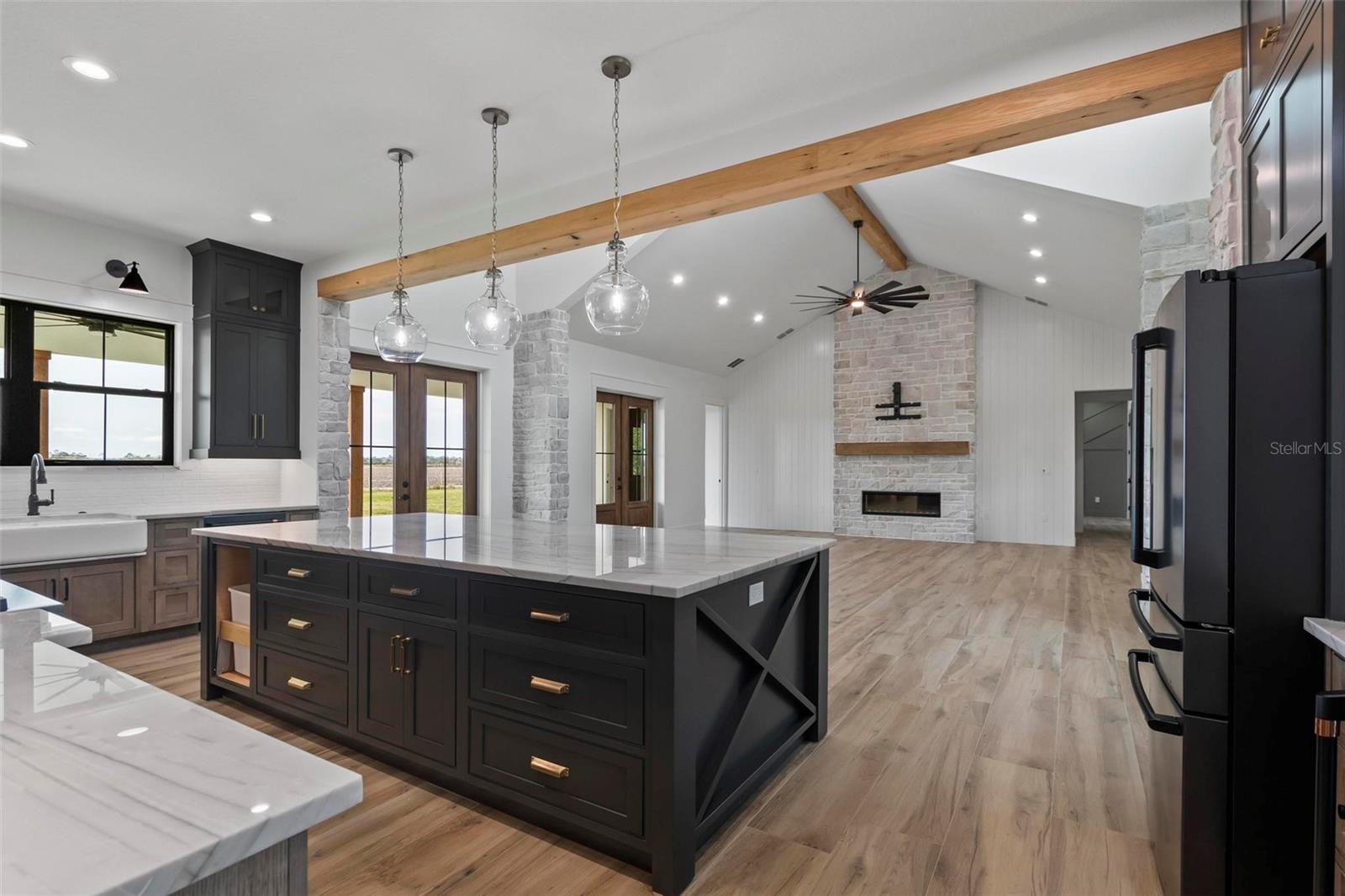 Fazenda Moderna dos seus SONHOS! A Modern Farmhouse construída sob medida está situada em 5,00 acres, convenientemente localizada a 32 quilômetros da cidade e oferece uma vida luxuosa com comodidades modernas. Construída em 2024, esta casa de blocos de concreto possui planta aberta, janelas Blk PGT, um lindo telhado de metal preto e muito mais! Verdadeiramente único! Tetos abobadados, trabalhos em madeira personalizados, trabalhos em pedra personalizados e vigas de madeira serradas à mão por toda parte! Entre nesta cozinha gourmet personalizada com bancadas de quartzo atualizadas, armários embutidos, fogão a gás GE Cafe de 6 bocas de última geração, duas pias e uma despensa espaçosa, organizar reuniões é muito fácil. Retire-se para o banheiro principal em estilo spa com chuveiro personalizado, banheira independente e 4 chuveiros separados! com um closet bônus dos SONHO! A propriedade é totalmente cercada, oferecendo privacidade e segurança, com recursos elétricos atualizados, incluindo iluminação intradorso, sistema de segurança circular, iluminação paisagística e pista para cães. Poço privado, fossa séptica, sistema de filtragem de água, preparado para gerador de casa inteira. Um celeiro independente de 40 x 60 postes com conexões de água/elétricas. Sem taxas de CDD ou HOA e não localizada em zona de inundação, esta propriedade oferece a combinação perfeita de luxo, privacidade e conveniência. Não perca a oportunidade de tornar sua esta Quinta Moderna de Luxo!