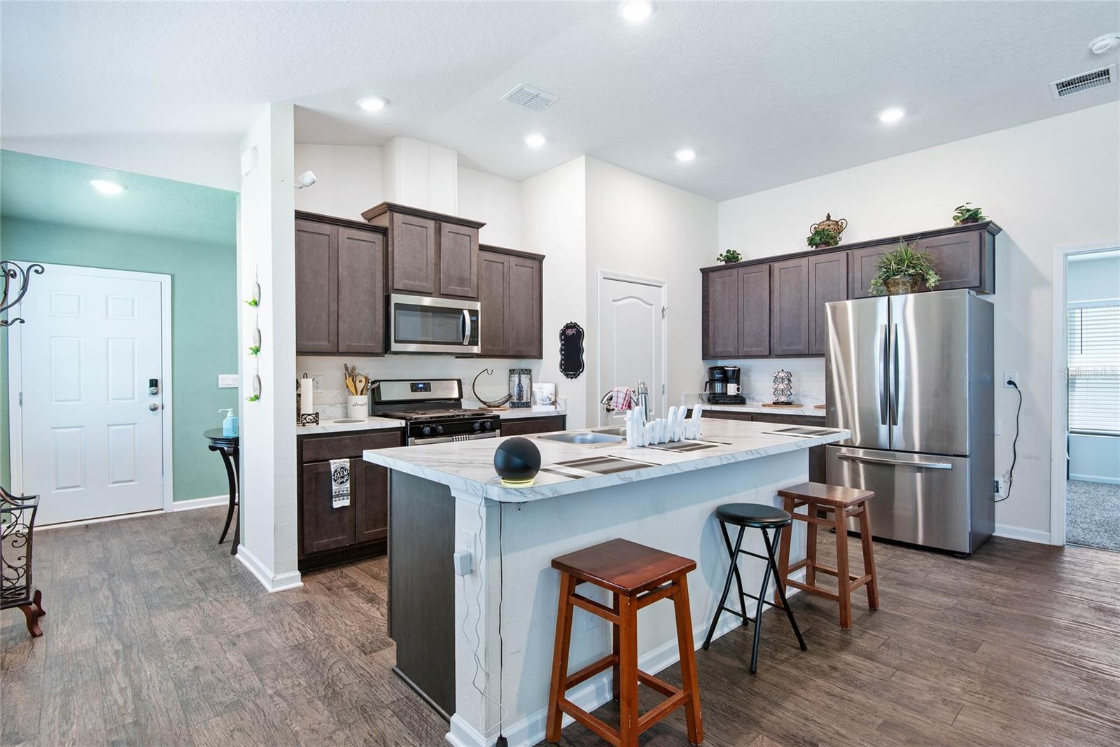 Mova -se direto para esta bela casa da frente do lago atualizada 2022, perfeitamente situada em um lote premium à beira do lago na desejável comunidade de Grand Reserve! Esta casa oferece um layout aberto e arejado, com uma cozinha espaçosa com utensílios de aço inoxidável, armários amplos, uma despensa e bar de café da manhã-tudo com vista para uma área de estar brilhante com grandes portas de vidro deslizantes que levam a uma varanda selecionada com vistas tranquilas do lago. O design de quartos divididos garante a privacidade, com uma generosa suíte primária que inclua um closet e banheira de suíte com pias duplas e um chuveiro grande. Dois quartos adicionais compartilham um segundo banho completo, e o quintal totalmente cercado é perfeito para animais de estimação ou diversão ao ar livre. Com taxas baixas de HOA e CDD, acesso a calçadas e proximidade com as compras, jantar, I-95 e US-1, esta casa combina conforto, conveniência e valor-escapule sua turnê hoje!