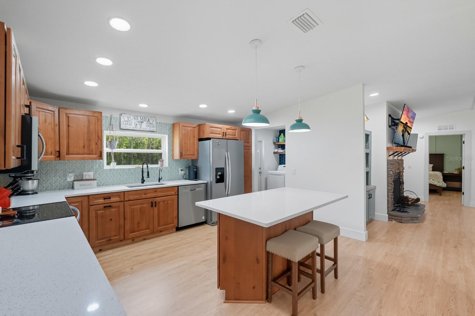 Experimente o melhor país que vive em 1,16 acres em uma casa lindamente remodelada que combina atualizações modernas com espaço, privacidade e possibilidades infinitas! Esta espaçosa casa de 5 quartos e 2 banheiros foi remodelada há alguns anos por Hulbert Homes e apresenta uma planta convidativa convidativa, com uma suíte primária projetada para o relaxamento final. O quarto principal oferece muito espaço, um ventilador de teto e um generoso closet, enquanto o banheiro privativo inclui vaidades duplas, uma banheira de imersão e um chuveiro separado-sua fuga pessoal de spa no final do dia! Dois quartos adicionais também são espaçosos com armários walk-in, e os dois armários restantes embutidos; Todos os quartos incluem ventiladores de teto para conforto por toda parte. O coração da casa é a cozinha atualizada com armários de madeira maciça, balcões de superfície sólida, uma ilha central e eletrodomésticos modernos, perfeitos para cozinhar, entretenimento e reuniões. A sala possui uma lareira acolhedora de madeira, ideal para relaxar noites com familiares e amigos. Saia para desfrutar de vistas pacíficas da lagoa, um galinheiro, gazebo, oficina e muito espaço para cavalos ou hobbies! Aproveite a privacidade e a tranquilidade da vida do país enquanto ainda está ao fácil acesso de Palm Coast, Flagler Beach e restaurantes, compras e recreação locais. A casa está equipada com um amaciador de água, sistema de filtração de água, bem e séptico, juntamente com um telhado de 2 anos e pisos de vinil de luxo-tudo o que você precisa para conforto e conveniência, isso é mais do que um lar; É um estilo de vida. Agende sua exibição particular hoje e comece a viver a vida que você sonha!