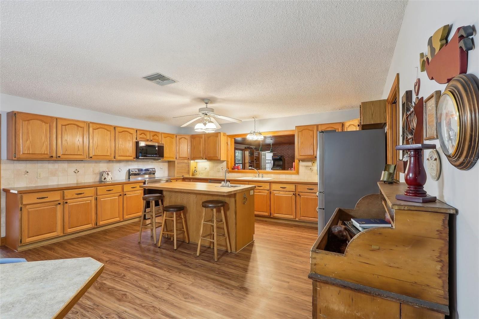 É raro encontrar uma casa da Robert Hogan Construction personalizada disponível para venda. Eles são transmitidos de geração em geração e nem sempre estão disponíveis no mercado aberto, mas 2025 está sorrindo para você. Aqui está a sua oportunidade de proteger esta casa incrível construída por um grande homem e, sim, em nosso livro, ela preenche todos os requisitos. Quando dizemos que os ossos são bons, estamos falando sério. Construída em 1991, a casa poderia precisar de algumas atualizações cosméticas, mas a casa tradicional inspirada no estilo rancho implora para que você não a torne muito contemporânea. O chique de fazenda seria perfeito aqui! Situado em belos 17,5 acres. Pasto na frente no lado norte para seus amigos animais de fazenda, e sonhos de apropriação original, e a privacidade de viver entre as árvores no lado sul da propriedade. Todos os componentes mecânicos são novos ou estão em ótimo estado de funcionamento. O vendedor afirma que o telhado foi substituído em 2013 conforme orientação da seguradora. HVACS substituído em 2024. Aquecedores de água foram substituídos em 2024. Amaciante de água totalmente novo e sistema de filtragem de ferro em 2024. Inspeção recente de 4 pontos concluída em novembro de 2024. Ambas as fossas sépticas foram bombeadas e um novo campo de drenagem em 2024. O absolutamente “oh meu momento” ou seja, a área do pátio e da piscina foi recentemente renovada com novo paisagismo, novo revestimento da piscina e novos azulejos da piscina. Uma verdadeira planta dividida, o que em 1991 não era comum, esta casa é enorme, mas ainda assim aconchegante. Esta planta baixa é uma das melhores que já vimos. A entrada é deslumbrante com uma porta dupla, piso de azulejos tradicional que está em condições fenomenais e tetos abobadados, originais, macho e fêmea que ainda brilham como novos, complementados por um lindo tijolo, lareira a lenha e tijolos embutidos. Nunca vimos uma parede de barras deslizantes numa casa construída em 1991, mas esta casa não tem apenas uma, mas duas, barras duplas com uma vista notável para o pátio. A cozinha vai “surpreender” você também. É grande. Armários e balcão por dias. Ilha central com mais armários. Aparelhos Samsung novos, dezembro de 2024. Uma grande janela de passagem para a sala de jogos e uma despensa para guardar lanches extras. A sala de jogos/família tem mais de 700 pés quadrados. Noite de jogos, noite de cinema, celebrações de feriados, você escolhe, esta sala foi construída para isso. Fora da sala de jogos há outra “mini” casa ou suíte dos sogros. Possui entrada própria, sala, quarto, banheiro e um cômodo que pode servir de kitchenette… tudo sob o mesmo teto. Tecnicamente, uma casa de 4 quartos e 4 banheiros OU uma casa de 3 quartos e 3 banheiros com uma suíte de hóspedes de 1 quarto e 1 banheiro. Nova lavadora e secadora Maytag na lavanderia/sala de artesanato. Há muitos armários e muito espaço de armazenamento, mas se precisar de mais, não há um celeiro no local, mas dois. É um verdadeiro prazer apresentar esta casa à venda e mal podemos esperar para mostrá-la a você. Se você acha que as fotos estão ótimas, espere até vê-las pessoalmente. Convenientemente localizado no lado norte de Bushnell, com fácil acesso a The Villages, Florida Turnpike e Interstate 75. A apenas 1 hora do Aeroporto Internacional de Orlando, Walt Disney World, Aeroporto Internacional de Tampa, World e Equestrian Center. Muito fácil de mostrar, mas somente com hora marcada. Por favor, não vá ao local sem agendamento e seu corretor de imóveis. Você não pode ver a casa da estrada e o portão está trancado. Não queremos que você desperdice uma viagem. Não acredite apenas na nossa palavra, somos definitivamente tendenciosos. Achamos que é uma casa incrível, venha ver por si mesmo.
