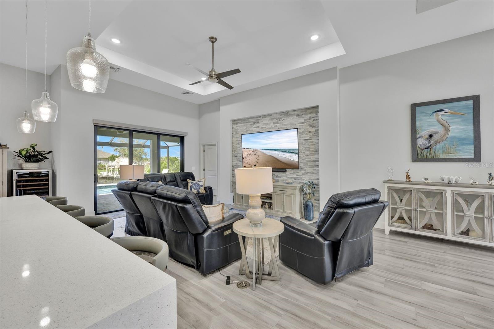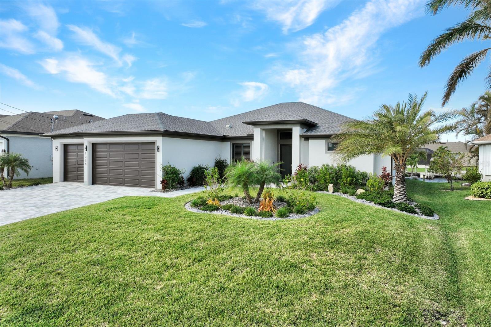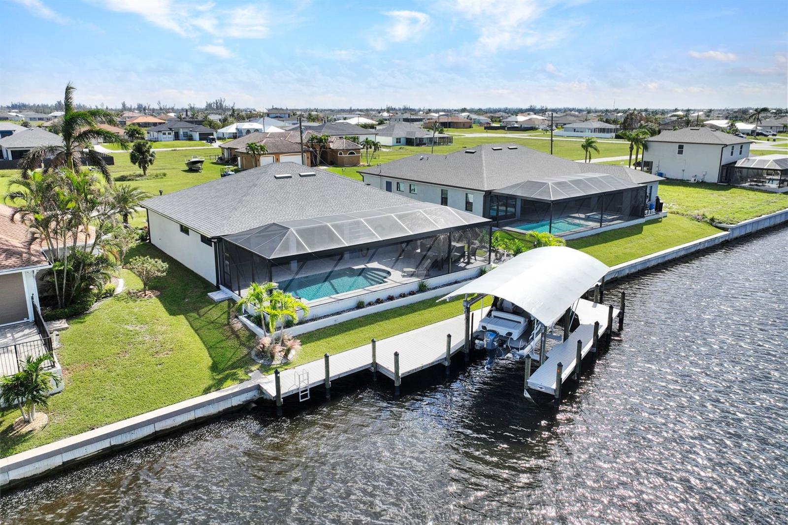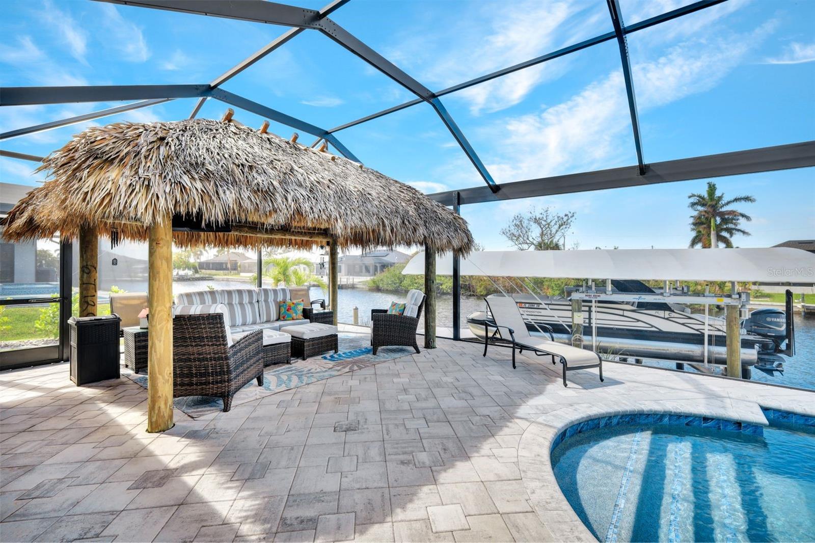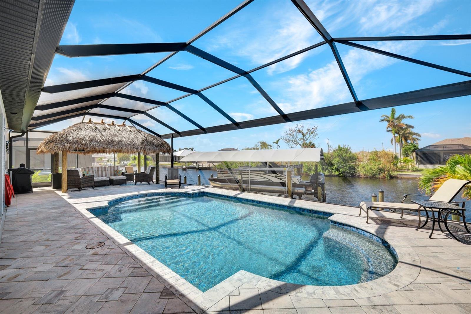 Apresentando luxo costeiro moderno em NW Cape Coral! Construída em 2023, esta joia à beira-mar está situada em um canal de acesso ao Golfo com 37 metros de largura, oferecendo acesso em menos de 30 minutos ao Passo Matlacha. Entre na grande sala, onde tetos de 3,6 metros se elevam acima de uma paleta suave e neutra de cinzas e brancos. A parede de mídia chama a atenção com um impressionante fundo de pedra com detalhes em cinza e branco. A cozinha do chef é funcional e deslumbrante, apresentando uma ilha de quartzo em cascata de 3 metros com armários estilo shaker e detalhes de pedra combinando sob a barra de café da manhã. Uma espaçosa sala de jantar, adornada com venezianas, oferece o espaço perfeito para entretenimento. Com 4 quartos e 3 banheiros completos, este layout inclui uma banheira Jack and Jill e uma banheira de piscina para maior comodidade. A ampla suíte master oferece vistas serenas do canal através de controles deslizantes com classificação de impacto, juntamente com tetos de bandeja, dois grandes armários e uma banheira tipo spa com banheira de imersão, pias duplas com balcões de quartzo e um espaçoso box amplo com branco ondulado azulejos e um toque de cachoeira cinza. Todos os quartos possuem venezianas para privacidade, complementadas por luminárias atualizadas e ventiladores de teto em toda a casa. O espaço ao ar livre foi construído para diversão e relaxamento, incluindo uma cabana tiki construída à mão dentro de uma varanda com janela panorâmica. A varanda coberta dispõe de uma cozinha de verão, enquanto a grande piscina aquecida convida à diversão durante todo o ano. Uma doca composta envolvente com um elevador de barco coberto de 15.000 libras completa esta propriedade deslumbrante, que também inclui uma garagem para 3 carros e janelas e portas resistentes a impactos para segurança durante a temporada de tempestades. Esta casa oferece uma mistura perfeita de luxo, estilo e conveniência à beira-mar.