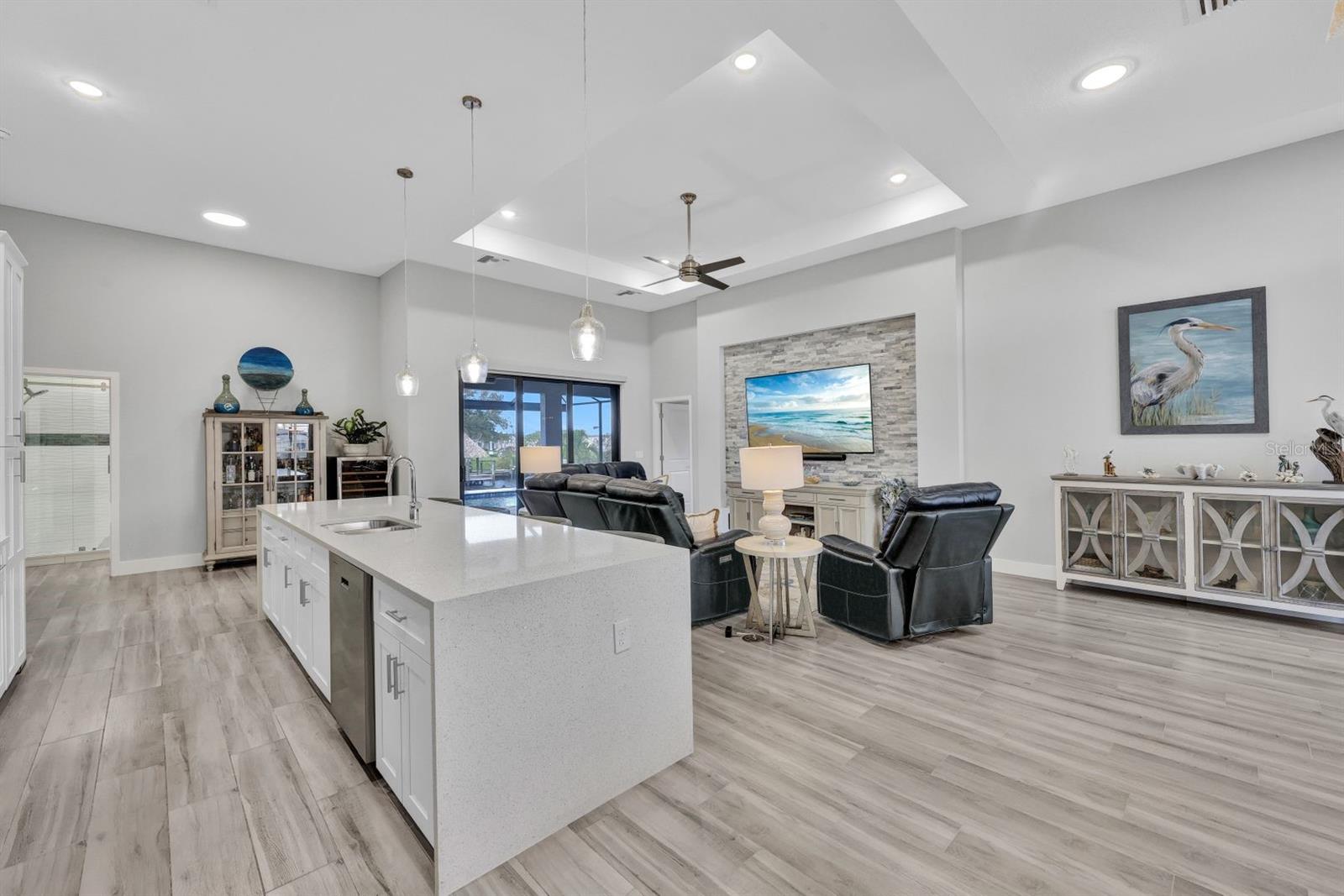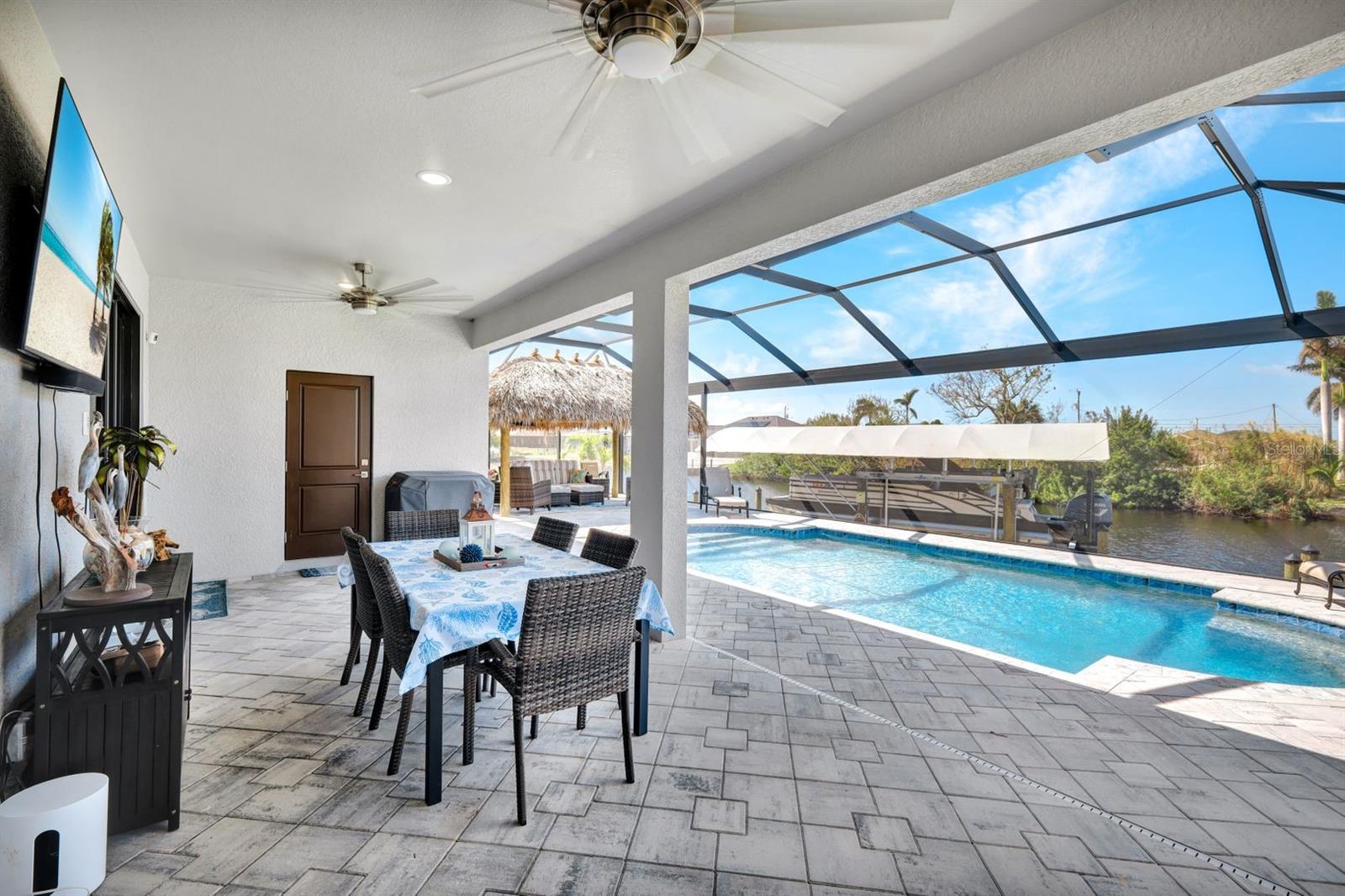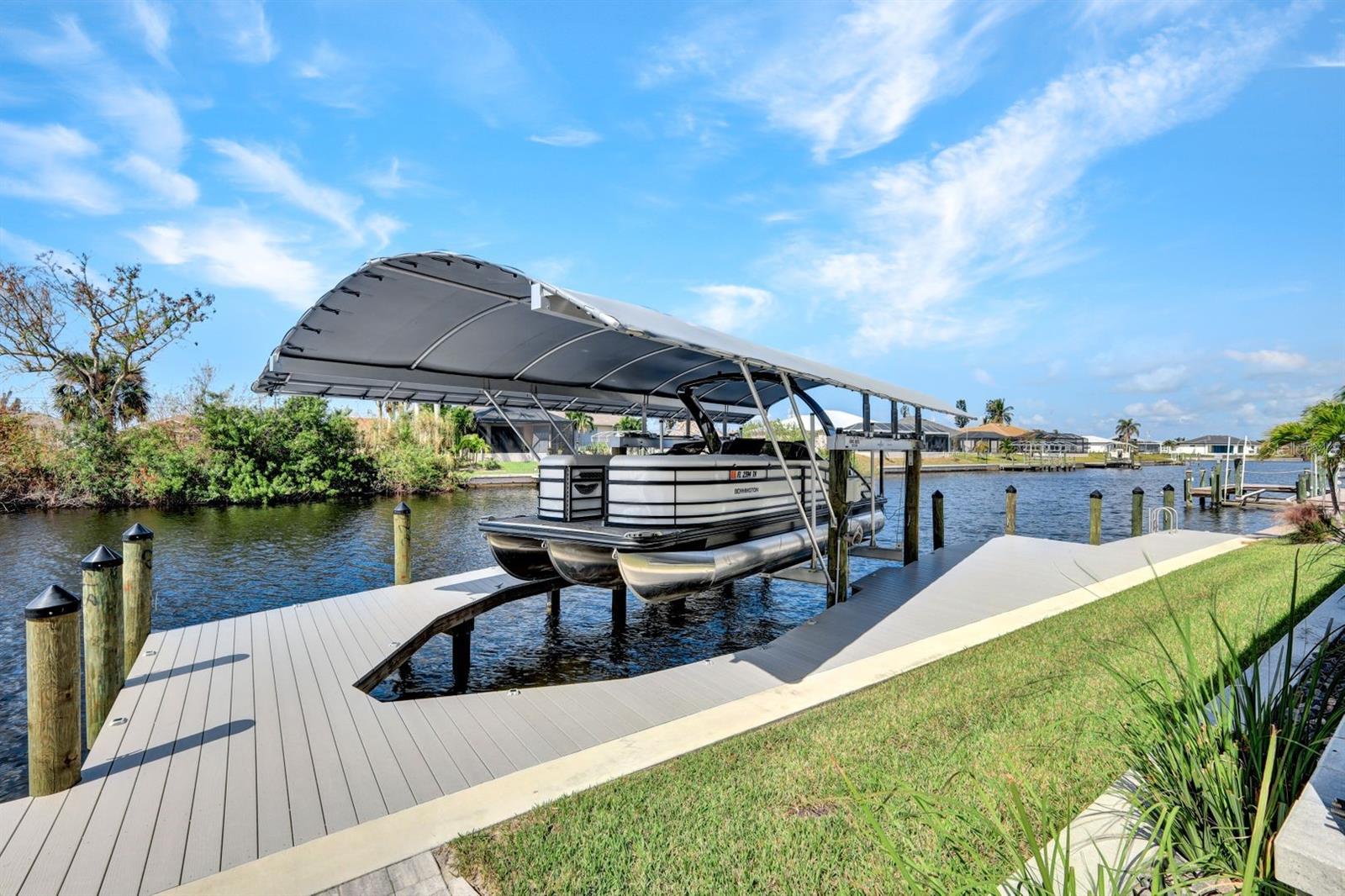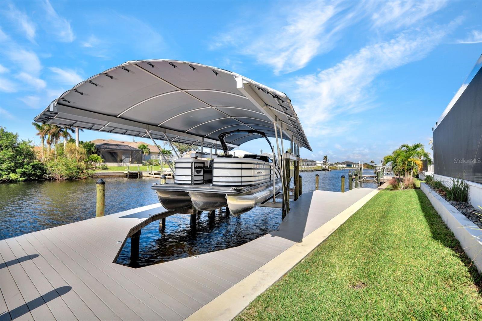 Apresentando luxo costeiro moderno em NW Cape Coral! Construída em 2023, esta joia à beira-mar está situada em um canal de acesso ao Golfo com 37 metros de largura, oferecendo acesso em menos de 30 minutos ao Passo Matlacha. Entre na grande sala, onde tetos de 3,6 metros se elevam acima de uma paleta suave e neutra de cinzas e brancos. A parede de mídia chama a atenção com um impressionante fundo de pedra com detalhes em cinza e branco. A cozinha do chef é funcional e deslumbrante, apresentando uma ilha de quartzo em cascata de 3 metros com armários estilo shaker e detalhes de pedra combinando sob a barra de café da manhã. Uma espaçosa sala de jantar, adornada com venezianas, oferece o espaço perfeito para entretenimento. Com 4 quartos e 3 banheiros completos, este layout inclui uma banheira Jack and Jill e uma banheira de piscina para maior comodidade. A ampla suíte master oferece vistas serenas do canal através de controles deslizantes com classificação de impacto, juntamente com tetos de bandeja, dois grandes armários e uma banheira tipo spa com banheira de imersão, pias duplas com balcões de quartzo e um espaçoso box amplo com branco ondulado azulejos e um toque de cachoeira cinza. Todos os quartos possuem venezianas para privacidade, complementadas por luminárias atualizadas e ventiladores de teto em toda a casa. O espaço ao ar livre foi construído para diversão e relaxamento, incluindo uma cabana tiki construída à mão dentro de uma varanda com janela panorâmica. A varanda coberta dispõe de uma cozinha de verão, enquanto a grande piscina aquecida convida à diversão durante todo o ano. Uma doca composta envolvente com um elevador de barco coberto de 15.000 libras completa esta propriedade deslumbrante, que também inclui uma garagem para 3 carros e janelas e portas resistentes a impactos para segurança durante a temporada de tempestades. Esta casa oferece uma mistura perfeita de luxo, estilo e conveniência à beira-mar.