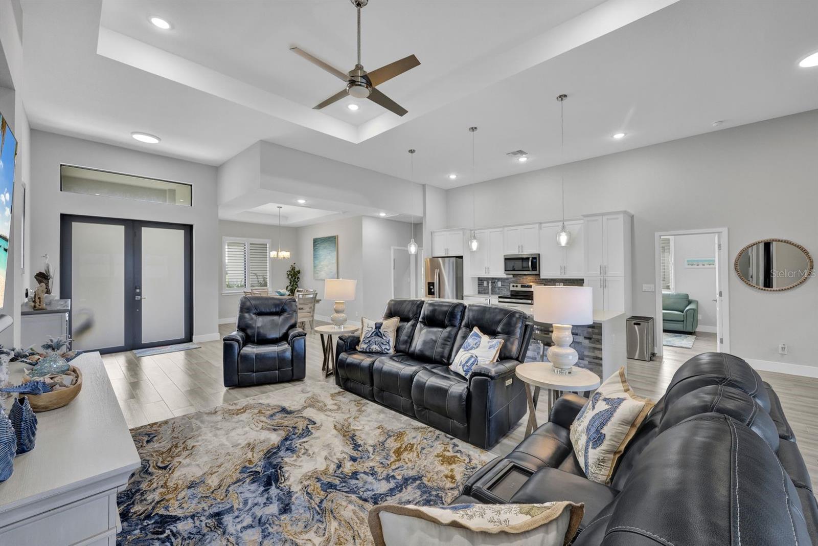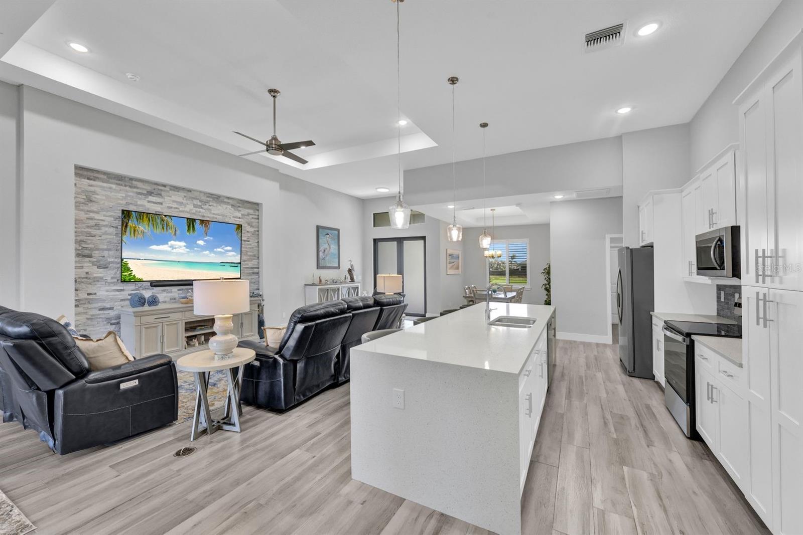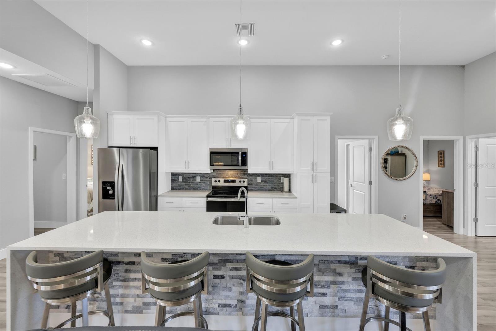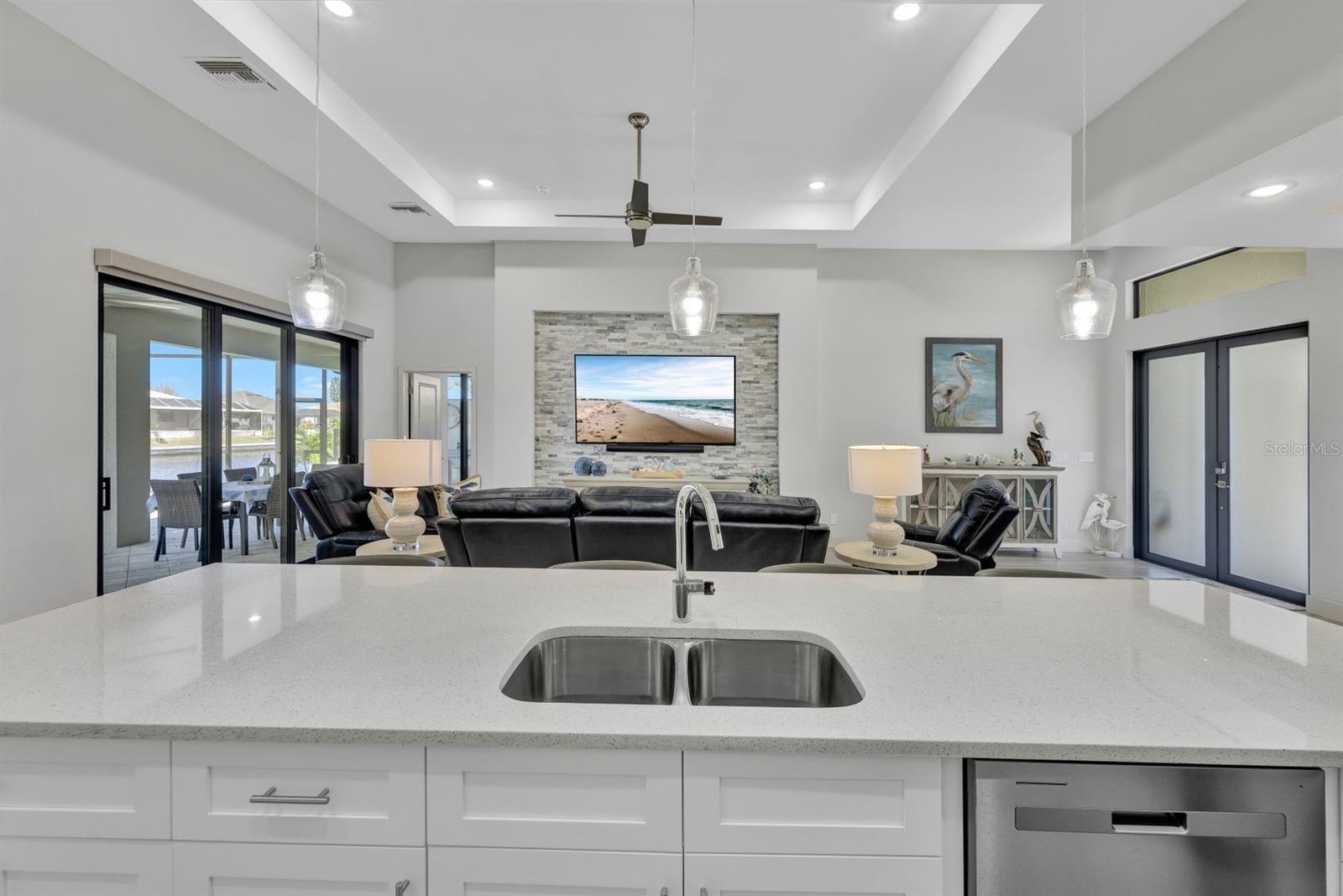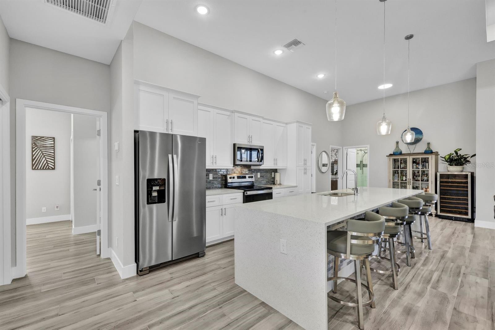 Apresentando luxo costeiro moderno em NW Cape Coral! Construída em 2023, esta joia à beira-mar está situada em um canal de acesso ao Golfo com 37 metros de largura, oferecendo acesso em menos de 30 minutos ao Passo Matlacha. Entre na grande sala, onde tetos de 3,6 metros se elevam acima de uma paleta suave e neutra de cinzas e brancos. A parede de mídia chama a atenção com um impressionante fundo de pedra com detalhes em cinza e branco. A cozinha do chef é funcional e deslumbrante, apresentando uma ilha de quartzo em cascata de 3 metros com armários estilo shaker e detalhes de pedra combinando sob a barra de café da manhã. Uma espaçosa sala de jantar, adornada com venezianas, oferece o espaço perfeito para entretenimento. Com 4 quartos e 3 banheiros completos, este layout inclui uma banheira Jack and Jill e uma banheira de piscina para maior comodidade. A ampla suíte master oferece vistas serenas do canal através de controles deslizantes com classificação de impacto, juntamente com tetos de bandeja, dois grandes armários e uma banheira tipo spa com banheira de imersão, pias duplas com balcões de quartzo e um espaçoso box amplo com branco ondulado azulejos e um toque de cachoeira cinza. Todos os quartos possuem venezianas para privacidade, complementadas por luminárias atualizadas e ventiladores de teto em toda a casa. O espaço ao ar livre foi construído para diversão e relaxamento, incluindo uma cabana tiki construída à mão dentro de uma varanda com janela panorâmica. A varanda coberta dispõe de uma cozinha de verão, enquanto a grande piscina aquecida convida à diversão durante todo o ano. Uma doca composta envolvente com um elevador de barco coberto de 15.000 libras completa esta propriedade deslumbrante, que também inclui uma garagem para 3 carros e janelas e portas resistentes a impactos para segurança durante a temporada de tempestades. Esta casa oferece uma mistura perfeita de luxo, estilo e conveniência à beira-mar.