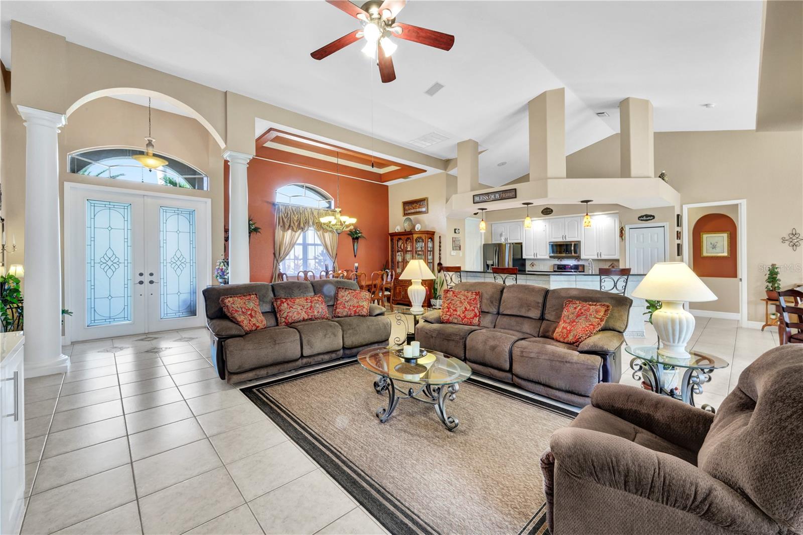 Descubra a casa dos seus sonhos no coração de Cape Coral, FL! Esta deslumbrante casa com piscina de 2.478 pés quadrados está perfeitamente situada em um terreno de esquina, cercada por propriedades milionárias à beira-mar. A partir do momento de sua chegada, o telhado de telha e a garagem lateral deixam uma impressão duradoura, enquanto a elegante entrada frontal possui portas duplas de vidro com chumbo emolduradas por duas graciosas colunas. Entre para encontrar um layout cuidadosamente projetado de 3 quartos e 2,5 banheiros que combina perfeitamente sofisticação e conforto. A moderna sala de estar apresenta um impressionante sistema de estantes com iluminação embutida e armários de armazenamento, substituindo os tradicionais embutidos, e uma porta-parede de vidro deslizante tripla que abre totalmente os bolsos, convidando a vida interna e externa. Adjacente, a área de jantar apresenta um elegante teto duplo para uma experiência gastronômica elevada. Os entusiastas da culinária apreciarão a cozinha atualizada, equipada com eletrodomésticos de aço inoxidável, forno duplo e bancadas de granito reluzentes. O espaçoso quarto familiar é banhado por luz natural, graças à sua ampla janela e portas de vidro deslizantes que dão acesso à área da piscina. Divirta-se sem esforço com um sistema de som para toda a casa que oferece música em todos os cômodos. Retire-se para a luxuosa suíte master, onde piso laminado de madeira, teto falso e amplo espaço criam um oásis sereno. O banheiro principal oferece armários para ele e para ela, pias duplas em lados opostos, uma banheira de hidromassagem relaxante e um box amplo com chuveiros duplos. Ao ar livre, a varanda foi projetada para a verdadeira vida na Flórida, com pavimentação de tijolos, uma área coberta profunda perfeita para entretenimento e uma piscina com aquecimento solar completa com duas cascatas e tela alta opaca para maior privacidade. O paisagismo exuberante e bem cuidado inclui uma cerca viva de privacidade com palmeiras, uma mangueira, uma bananeira e um limoeiro, criando um refúgio tropical. Esta casa excepcional combina elegância, funcionalidade e localização privilegiada – não perca a oportunidade de torná-la sua!