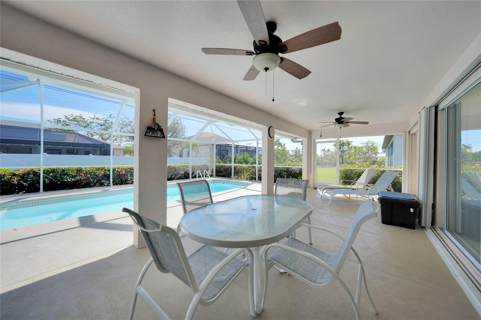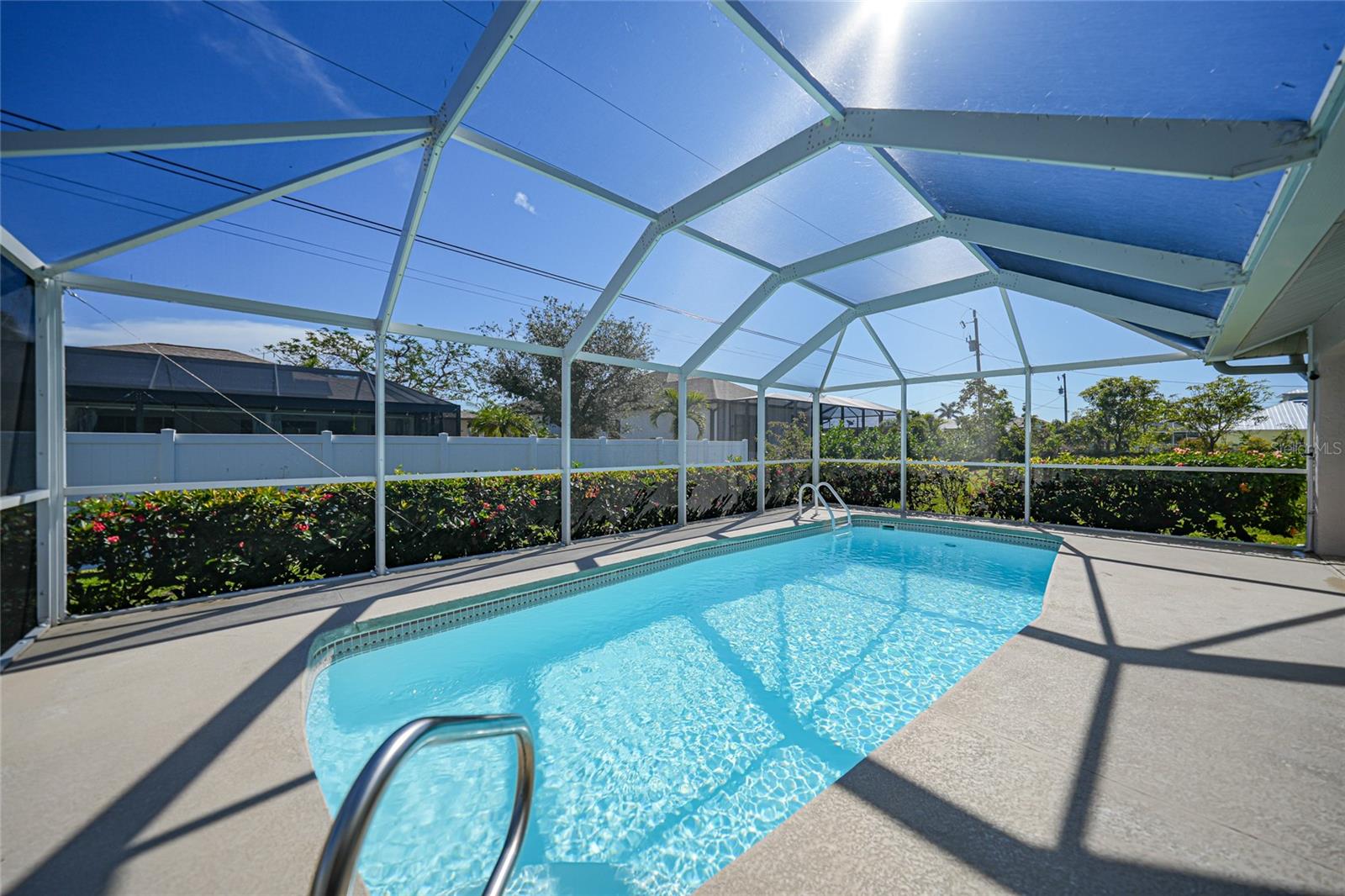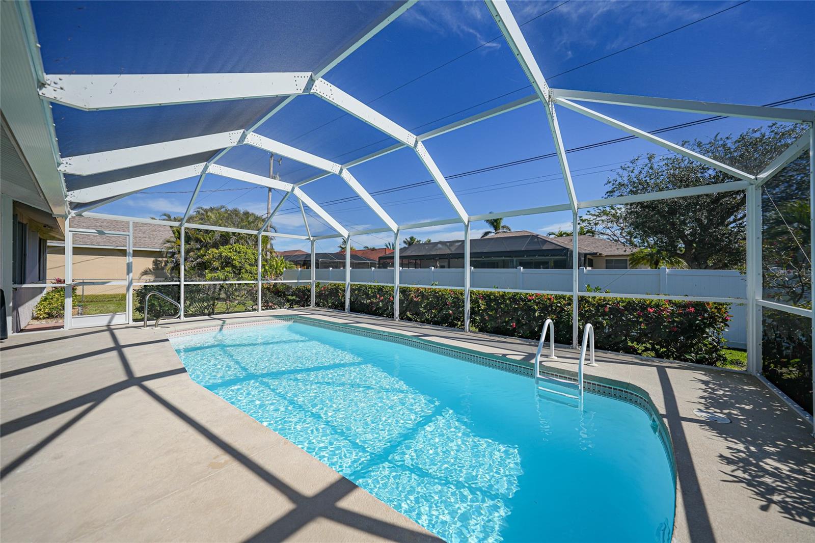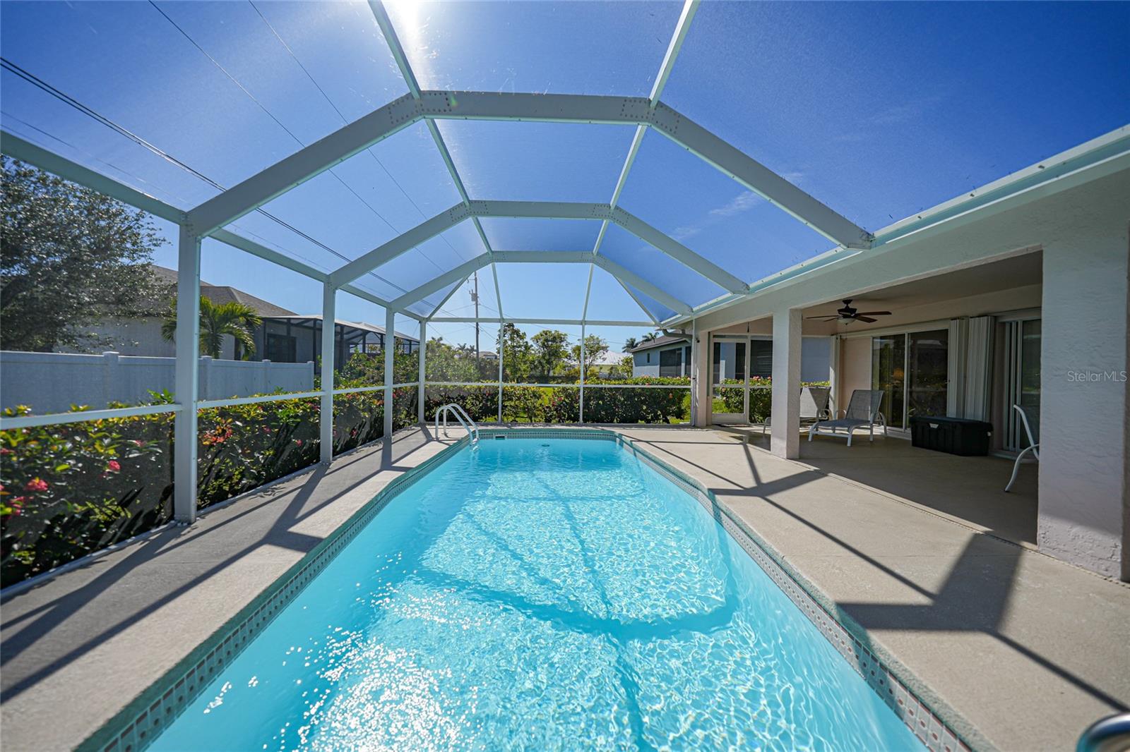 Esta encantadora piscina de três quartos e dois banheiros oferece 1.945 pés quadrados de espaço de estar, com um total de 2.386 pés quadrados sob o teto. Situado ao sul de Cape Coral Parkway e a pé até o porto de Cape, que essa casa combina com a conveniência com conforto. O interior possui um layout espaçoso, com uma sala de família e uma sala de estar, além de uma área de jantar dedicada. O recanto do café da manhã inclui uma mesa embutida, perfeita para o trabalho ou a escola em casa. A cozinha é um destaque, oferecendo muito espaço para o gabinete e a impressionante bancada de pedra. Afaste o clima bonito da Flórida o ano todo com portas francesas que levam à casa e três conjuntos de portas de vidro deslizantes que se abrem para a piscina cintilante e o belo quintal. O paisagismo maduro, aprimorado pela redução de concreto, cria um oásis externo sereno. As atualizações adicionais incluem persianas de acordeão de furacões para facilitar a proteção da tempestade, a nova gaiola e a triagem da Lanai, um telhado de 2018 e uma re-tubulação de 2022 para tranquilidade. Esta linda casa fica em água e esgoto da cidade, com equilíbrio zero nas avaliações e água recuperada. Esta casa oferece funcionalidade e estilo, com fácil acesso às atividades de restaurantes, compras e orla do Cape Harbor. Não perca esta oportunidade fantástica!
