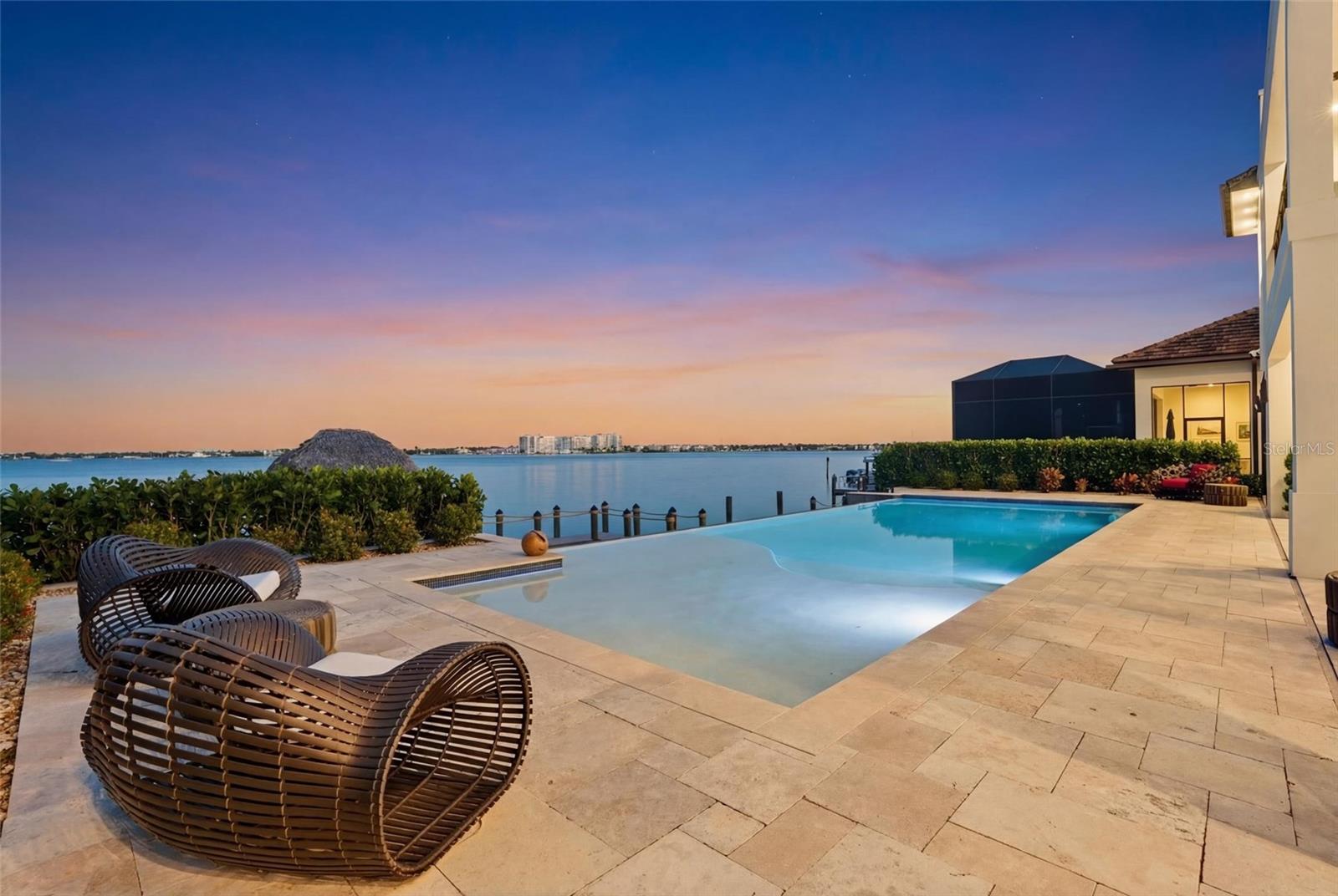 Bem-vindo a uma das propriedades à beira-mar mais ÚNICAS de todo o sudoeste da Flórida! Esta extraordinária residência personalizada de 9.000 pés quadrados oferece o melhor “fator WOW à beira-mar” aqui no Paraíso. Projetada para resistência e longevidade, a casa foi construída usando Forma de Concreto Isolado (ICF) com estacas de 30 pés apoiando as fundações da residência e da piscina, complementadas por JANELAS DE IMPACTO completas e controles deslizantes de vidro de impacto expansivos por toda parte. Esta casa é SÓLIDA e BONITA ao mesmo tempo. A partir do momento em que você entra pela dramática porta pivotante de MADEIRA SÓLIDA, seus olhos são atraídos pelas vistas deslumbrantes do rio Caloosahatchee, emolduradas por espetaculares portas deslizantes quádruplas. O piso de mármore italiano flui por toda a casa, levando a cinco suítes com quartos privativos - cada uma com closets e banheiros completos inspirados em spa e chuveiros walk-in. Um escritório/escritório no primeiro andar oferece flexibilidade, enquanto o loft do 2º andar e o nível do 3º andar oferecem oportunidades para quartos adicionais, se desejado. A cozinha do Chef é uma verdadeira obra de arte, centrada em torno de um cooktop de ilha ENORME com exaustor de luxo, amplos armários iluminados e espaço infinito de preparação à beira-mar. Os aparelhos PREMIUM incluem um forno duplo Wolf, geladeira Sub-Zero, refrigeração de vinho, compactador de lixo e até uma churrasqueira a gás externa Wolf. Além disso, uma enorme despensa para o mordomo - projetada para funcionar como uma sala segura - acrescenta funcionalidade e tranquilidade. Ocupando o 2º andar está a enorme suíte principal. É um retiro privado com amplas janelas e VARANDAS DUPLAS, capturando vistas panorâmicas do rio. O banheiro privativo tipo spa possui pias duplas, uma banheira de hidromassagem de imersão e um box amplo espetacular de 10' x 12' com vários sprays para cabeça e corpo. Tudo perfeitamente conectado a uma sauna pessoal para a melhor experiência de spa em casa. Dois quartos adicionais com casa de banho privada e uma área de loft completam este nível da casa. Um ELEVADOR privado atende todos os andares, incluindo o amplo espaço bônus de 1.000 pés quadrados no terceiro andar - ideal para um estúdio de fitness, retiro de ioga, arena de jogos, local de eventos ou alojamentos adicionais. O Piso Superior também possui uma sala de teatro dedicada com sistema de projeção personalizado. A casa está configurada para fiação completa de casa inteligente, prontidão para gerador e HVAC Quad Zoned com manipuladores separados para cada andar e garagem. A vida ao ar livre captura a essência do luxo do sudoeste da Flórida. Travertino Tile circunda a enorme piscina INFINITY-EDGE com uma enorme prateleira de sol, perfeitamente posicionada para café ao nascer do sol, coquetéis ao pôr do sol e entretenimento à beira-mar. Com acesso ao Golfo em águas profundas e sem pontes, seu barco chega às águas abertas do sudeste dos Estados Unidos da América em poucos minutos. Isto é mais do que uma casa... é uma propriedade fortificada à beira-mar projetada para uma vida luxuosa no Paraíso. Venha viver o melhor estilo de vida do sudoeste da Flórida!
