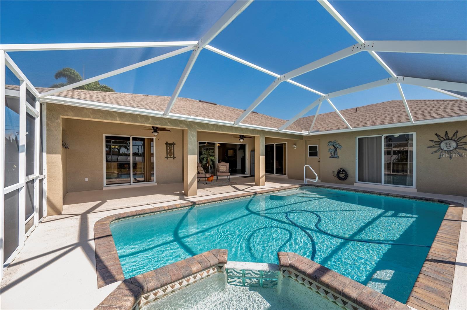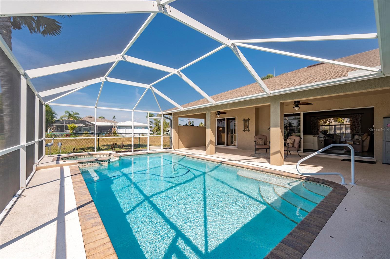 Melhoria de preços ** Vendedor que oferece US $ 9 mil para os custos de fechamento ou opção de recompra 2-1 disponíveis ** Bem-vindo à sua casa dos sonhos, onde o luxo encontra conforto no coração de um cenário sereno à beira-mar, adornado com paisagismo exuberante e oferecendo acesso rápido ao rio Caloosahatchee e no golfo. Este refúgio de 4 quartos não é apenas uma casa; É a Florida Living, em um lote de grandes dimensões, completo com duas docas particulares com vista para o amplo canal Biarritz. A doca do capitão é coberta com um elevador de 10.000 lb., enquanto o segundo possui um elevador de 4.500 lb., com uma doca ressurgida recentemente em 2022, garantindo que suas aventuras náuticas estejam sempre com fácil acesso. Ao pular pela porta da frente, você é adotado por uma atmosfera de calor e luz em uma espaçosa área de estar, cuidadosamente projetada com paredes de sotaque de shiplap, piso de tábua de vinil de luxo neutro nas áreas de estar e embutidos sob medida. A integração perfeita de espaços de estar interna e externa através de elegantes controles deslizantes de bolso triplo se abre para uma piscina deslumbrante e área de Lanai, prometendo inúmeros dias de relaxamento e entretenimento sob o sol da Flórida. A cozinha, é uma delícia de entusiasta da culinária, com uma generosa bar de café da manhã, acessórios chiques, uma pia de fazenda de cobre, grande caminhada em despensa com prateleiras personalizadas e utensílios de aço inoxidável, incluindo um cobiçado forno duplo. Isso se abre graciosamente para a área de jantar. Remoto para a suíte master, oferecendo acesso privado à varanda, armários duplos e um banheiro privativo, adornado com grande vaidade de 78 "e um chuveiro. A casa também abriga três quartos de hóspedes adicionais, dois com alojamento e hóspedes e um banheiro de pista e hóspedes. A piscina, ressurgiu em 2022, possui aquecimento (novo aquecedor 2024), a cerca de segurança de piscina removível e um spa de derramamento, melhorando a experiência de vida ao ar livre O quintal expansivo e cercado, com o sistema de aspersão, leva à sua doca privada, o cenário perfeito para aqueles encantadores pôr do sol da Flórida e a promessa de inúmeras lembranças na água. Aninhado perto das ofertas das cenas de compras e refeições de Cape Coral, esta propriedade é uma escolha impecável para quem procura uma residência primária, uma fuga de férias ou um aluguel sazonal. Além disso, com o lote adjacente também disponível para compra, as possibilidades são infinitas. Esta casa não é apenas um lugar para morar; É um lugar para prosperar. Não deixe essa oportunidade incomparável passar por você!