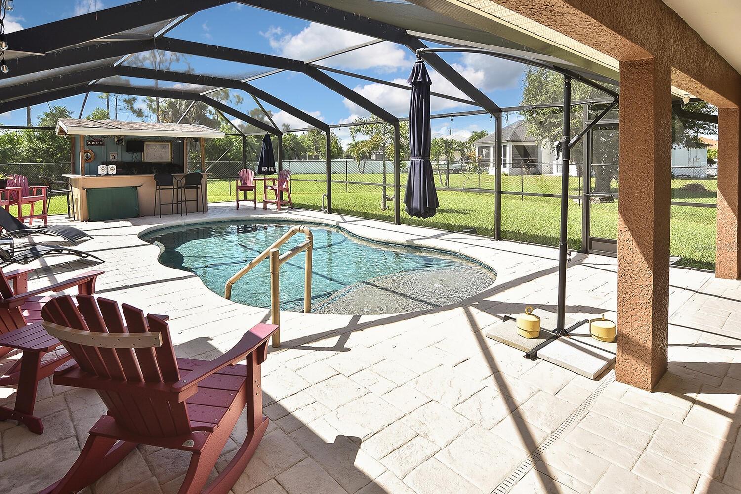 ENORME REDUÇÃO DE PREÇOS! Descubra a casa dos seus sonhos em Cape Coral! Aninhado em um beco sem saída tranquilo com apenas cinco casas, esta jóia oferece privacidade e tranquilidade. O lote de grandes dimensões, mais de 1/3 acres, é totalmente cercado e recua para uma propriedade de propriedade da cidade arborizada, fornecendo uma vista serena e privada no quintal. O destaque desta propriedade é a grande piscina de água salgada aquecida, completa com um espaçoso deck de piscina perfeito para relaxar e divertir. Existe até um bar com eletricidade em uma extremidade do gabinete exibido, tornando -o um local ideal para reuniões. As famílias apreciarão a proximidade das escolas e calçadas, fazendo caminhadas seguras e fáceis de se deslocar. Um novo galpão grande construído para os últimos códigos de construção e furacões oferece amplo armazenamento. A casa está equipada com eletricidade para um gerador e uma casa de motor, garantindo que você esteja sempre preparado. Localizado na Zona de Inundação X500, esta casa também possui novos aparelhos instalados em 2019, uma grande varanda de tela grande perfeita para socializar com vizinhos e uma aconchegante lareira elétrica embutida no interior. Uma alcova com uma mesa embutida é ideal para a lição de casa, um escritório em casa ou hobbies. Não perca esta propriedade excepcional que combina conforto, conveniência e um local fantástico. Faça o seu hoje!