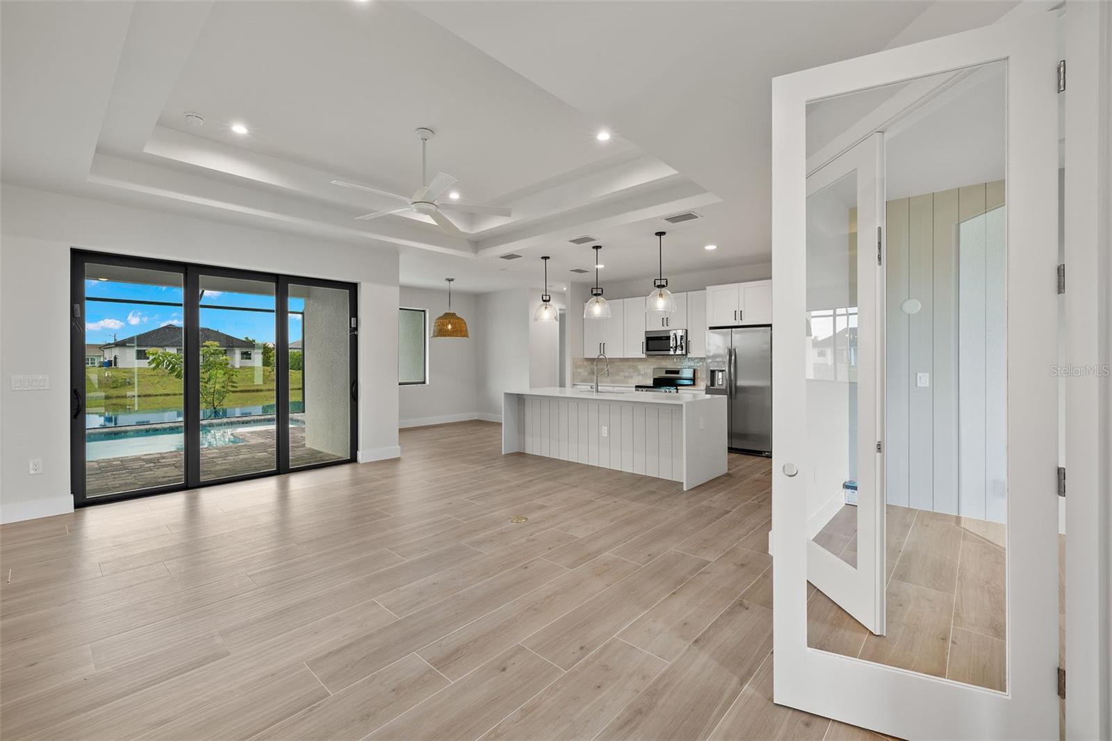Uma ou mais fotos foram virtualmente encenadas. NOVA CASA DE PISCINA À BEIRA-MAR DE CONSTRUÇÃO! Com 3 quartos + sala, 3 banheiros completos e garagem para 3 carros. Esta casa moderna e charmosa recebe-o com belos tectos, pavimento em azulejo moderno espalhado por toda a casa, portas de vidro de correr e grandes janelas com vista para a piscina e enchendo a casa de luz natural, janelas e portas resistentes ao impacto. Cozinha de conceito aberto com grande ilha em cascata, armários brancos, balcões de quartzo e conjunto de eletrodomésticos em aço inoxidável. Portas francesas para o escritório, com uma grande janela com vista para o lindo jardim da frente. Suíte master ampla com dois grandes closets e um banheiro master deslumbrante com box amplo. Esta casa fica no Canal Hermosa de água doce com mais de 145 pés de largura, oferecendo uma vista incrível da água diretamente do seu quintal. Deixe seu barco de pesca e passeie pelos quilômetros de canais que levam a outros lagos menores. Relaxe em sua varanda fechada com vista para sua grande piscina e aproveite o sol da Flórida o ano todo, marque uma consulta hoje mesmo! Água e esgoto da cidade no local, não numa zona de inundação!