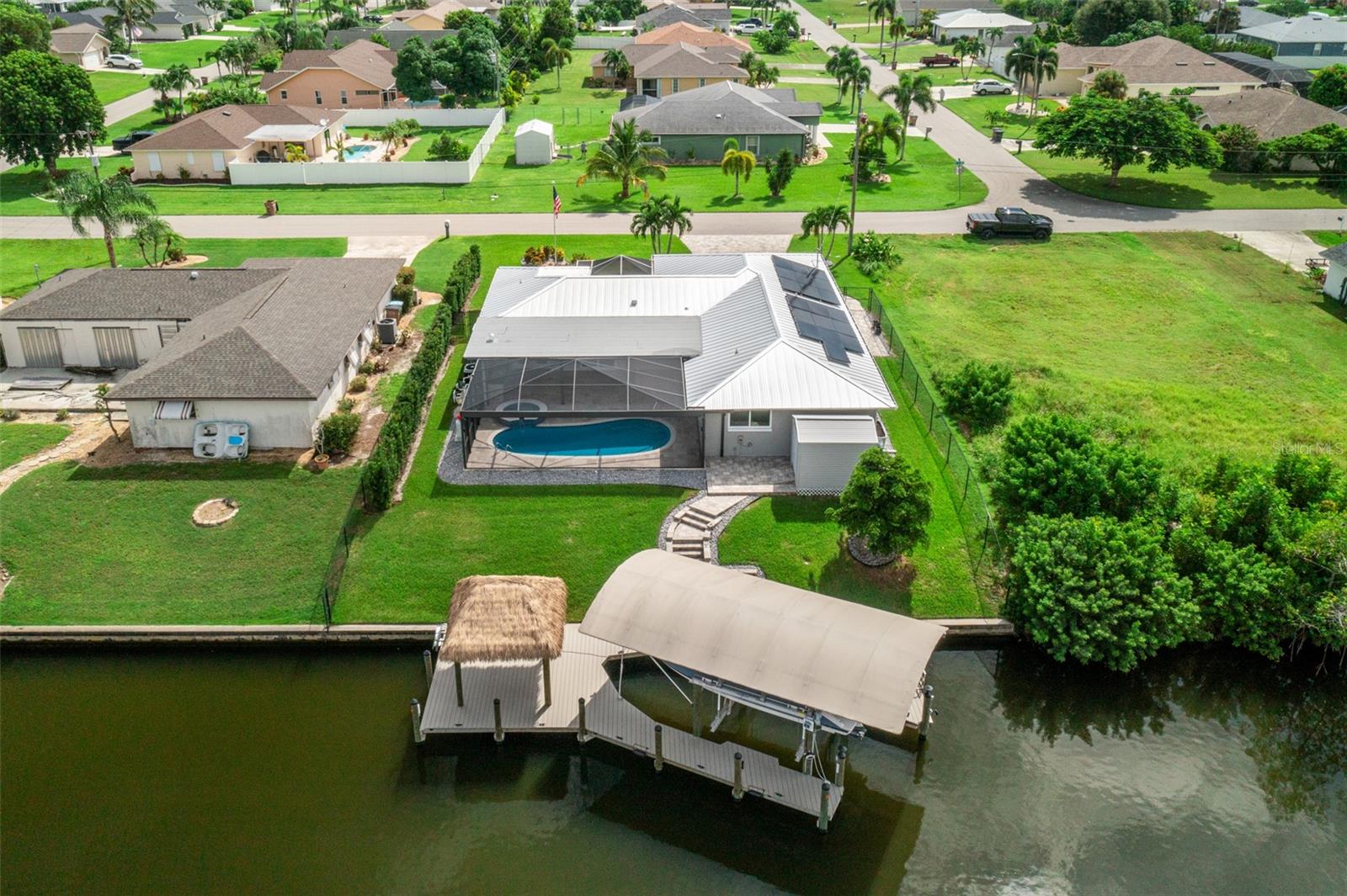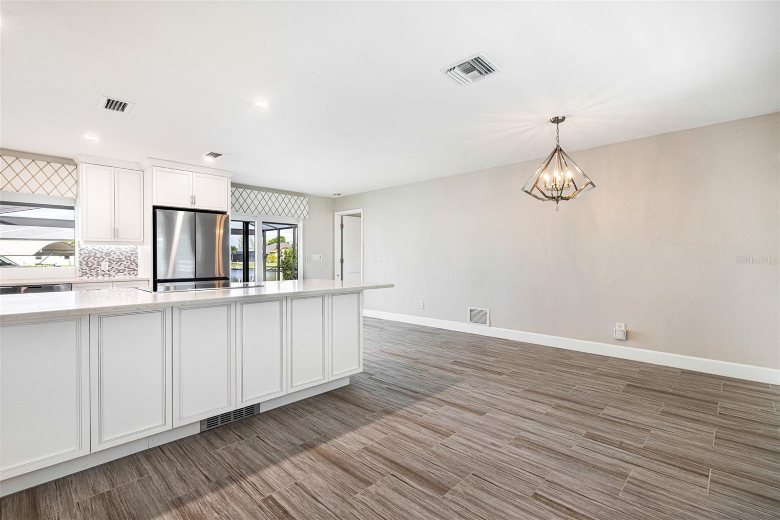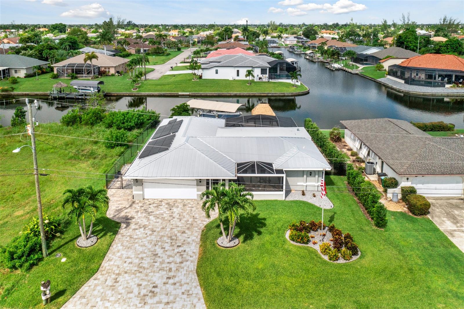 Esta deslumbrante casa de 3 quartos e 2 banheiros com acesso ao Golfo em SE Cape Coral é o epítome do luxo moderno e da vida costeira! Recentemente atualizada com acabamentos elegantes e contemporâneos, a casa recebe você com um apelo extravagante e um exterior com belo paisagismo. Entre em uma cozinha iluminada de conceito aberto que flui facilmente para uma área de estar adornada com embutidos personalizados, uma lareira elétrica e amplas portas de vidro deslizantes que se abrem para o seu paraíso particular. Do lado de fora, uma cozinha ao ar livre e uma varanda espaçosa convidam a entretenimento sem fim, enquanto desfruta de vistas serenas de canais imaculados que se cruzam. A suíte do proprietário é um verdadeiro retiro, completa com closets e banheiro privativo tipo spa com pia dupla. Para completar, a propriedade dispõe de elevador para barcos, cais com uma encantadora cabana, quintal vedado, telheiro para arrumação extra e painéis solares PAGOS INTEGRALMENTE personalizáveis para poupar nas contas de electricidade, consulte o flyer em anexo para mais detalhes sobre o painéis solares. Com pôr do sol espetacular e tranquilidade à beira-mar, esta casa é o sonho de qualquer artista e um paraíso!