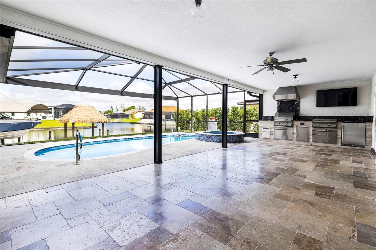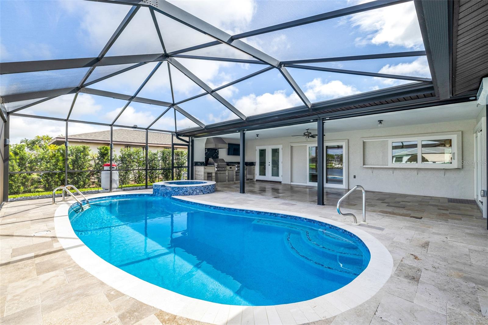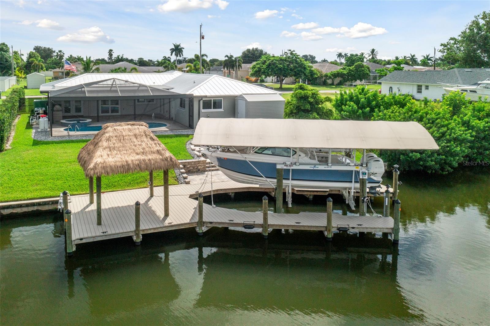 Esta deslumbrante casa de 3 quartos e 2 banheiros com acesso ao Golfo em SE Cape Coral é o epítome do luxo moderno e da vida costeira! Recentemente atualizada com acabamentos elegantes e contemporâneos, a casa recebe você com um apelo extravagante e um exterior com belo paisagismo. Entre em uma cozinha iluminada de conceito aberto que flui facilmente para uma área de estar adornada com embutidos personalizados, uma lareira elétrica e amplas portas de vidro deslizantes que se abrem para o seu paraíso particular. Do lado de fora, uma cozinha ao ar livre e uma varanda espaçosa convidam a entretenimento sem fim, enquanto desfruta de vistas serenas de canais imaculados que se cruzam. A suíte do proprietário é um verdadeiro retiro, completa com closets e banheiro privativo tipo spa com pia dupla. Para completar, a propriedade dispõe de elevador para barcos, cais com uma encantadora cabana, quintal vedado, telheiro para arrumação extra e painéis solares PAGOS INTEGRALMENTE personalizáveis para poupar nas contas de electricidade, consulte o flyer em anexo para mais detalhes sobre o painéis solares. Com pôr do sol espetacular e tranquilidade à beira-mar, esta casa é o sonho de qualquer artista e um paraíso!