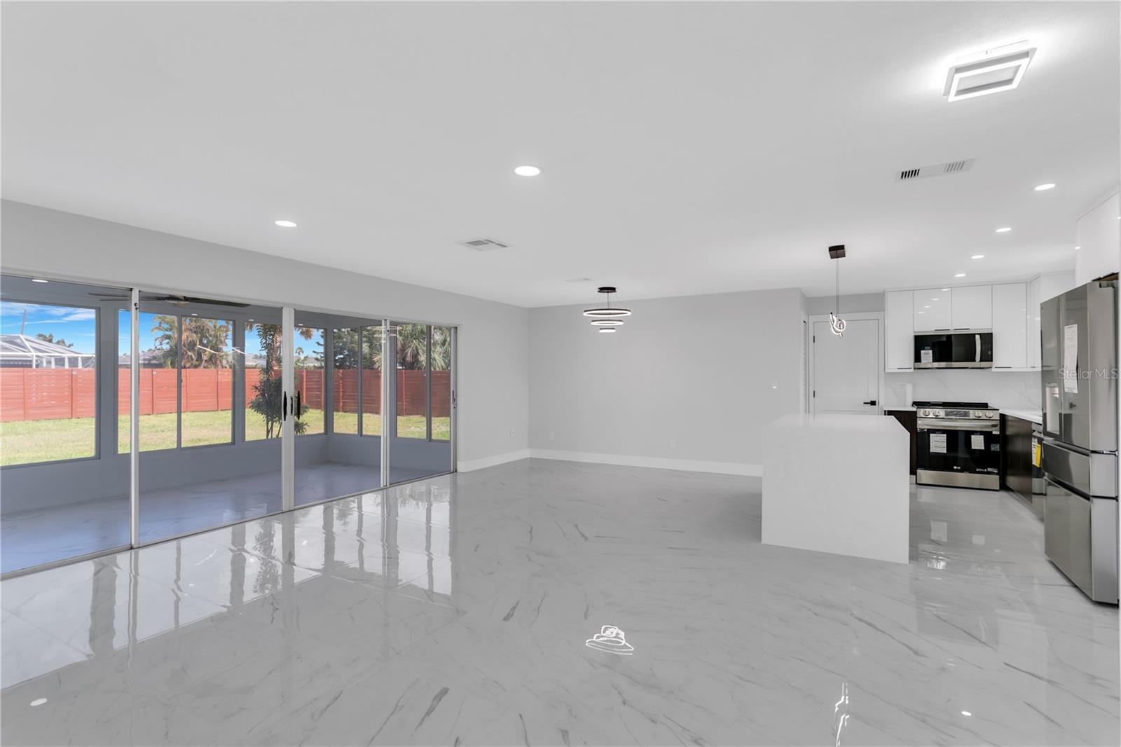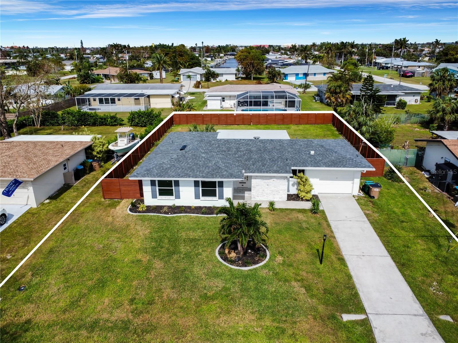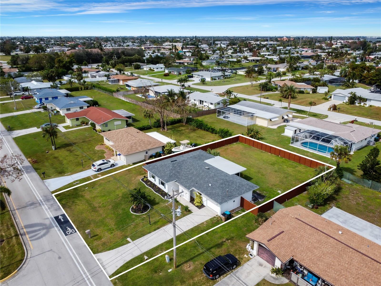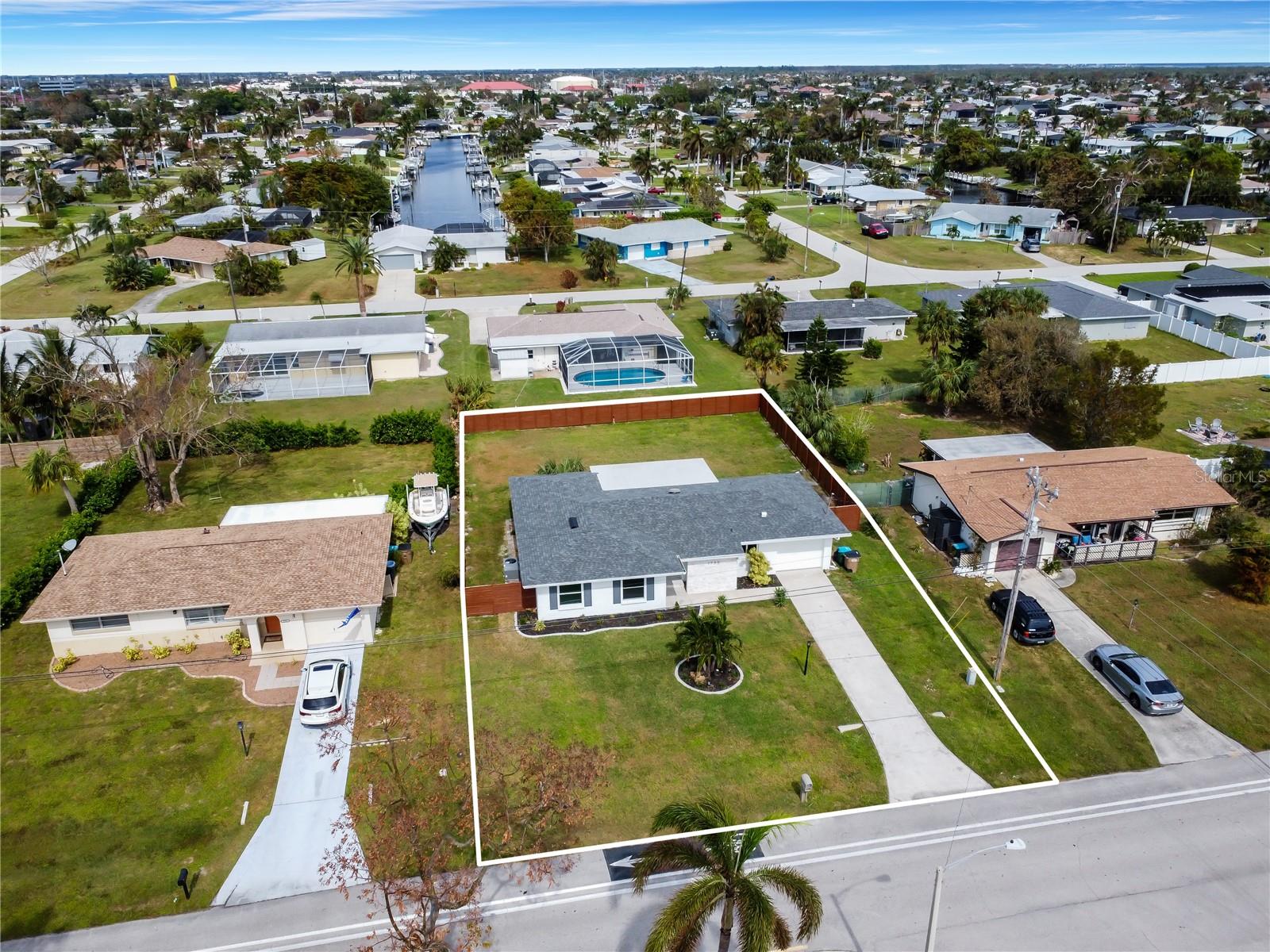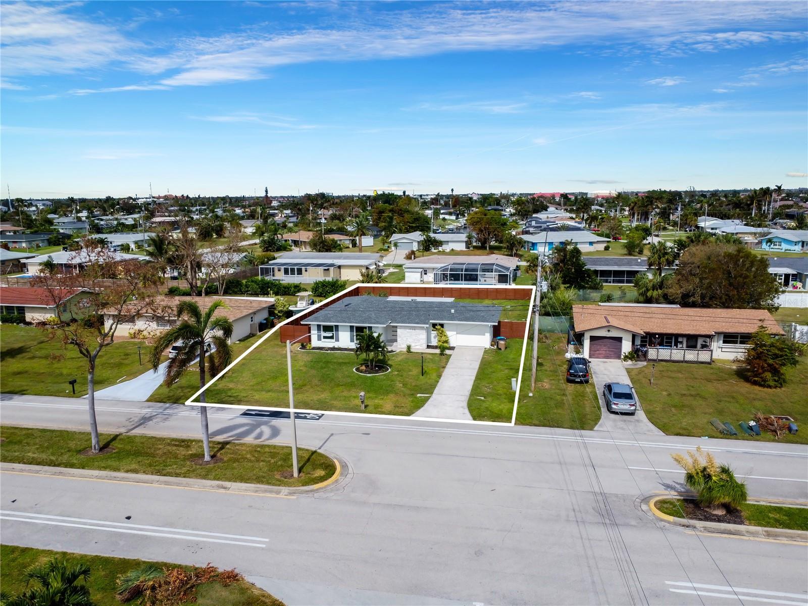 "Prime Cornwallis area location in Cape Coral! Fully renovated 3-bed, 2-bath home with 1,297 sq ft. Features new roof (2024), new A/C, porcelain tile flooring, quartz countertops, and stainless appliances. Spacious fenced yard ready for a pool, screened lanai with anti-slip flooring, and 1-car garage. Assessments paid, no flood history. Near shopping, dining, Parques e rampas de barcos.