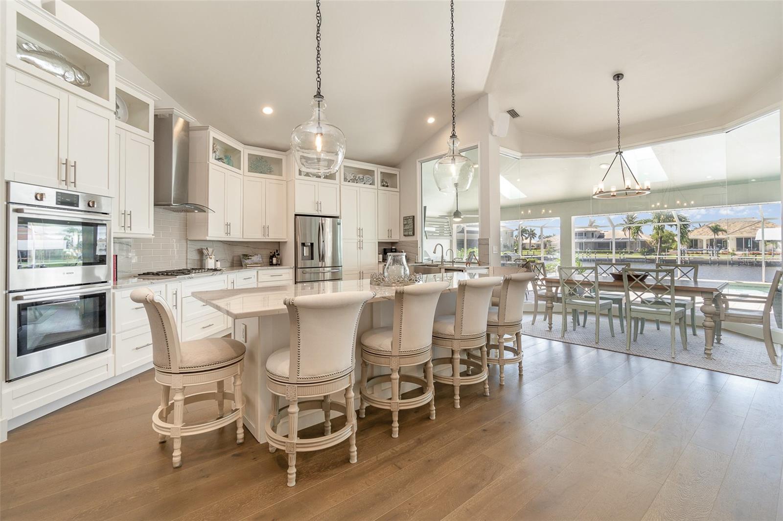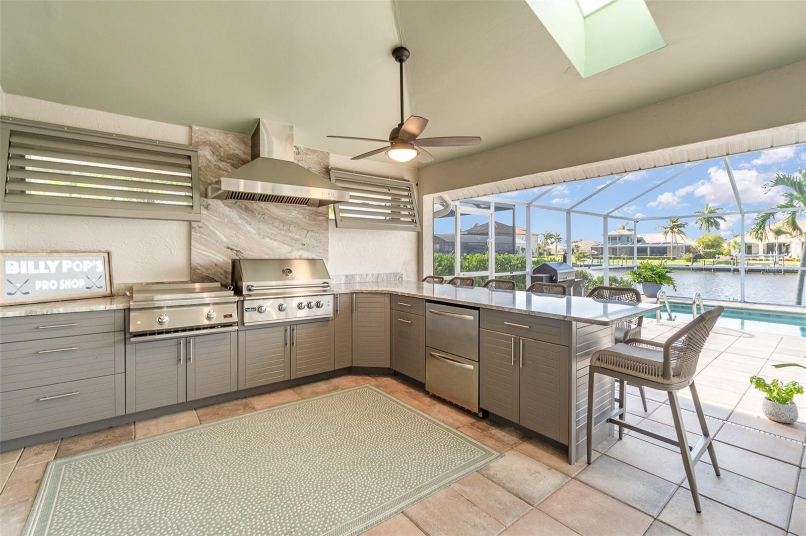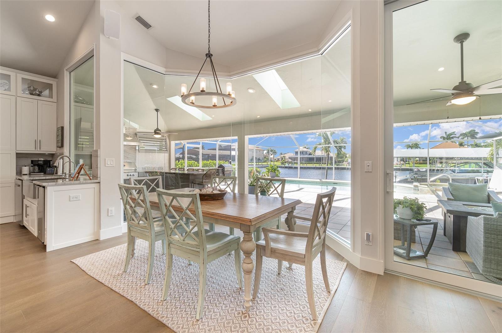Em um terreno enorme no local mais procurado de SW Cape Coral, você encontrará este requintado país das maravilhas à beira-mar. Esta casa oferece 3 quartos de tamanhos generosos e um escritório ou 4º quarto e três banheiros luxuosamente decorados. Em um dos canais mais largos de Cape Coral, nenhum detalhe foi perdido nesta imaculada e belíssima casa com piscina com acesso a um veleiro. Em um bairro tranquilo ao sul de Cape Coral Pkwy e em um canal de 240 pés de largura, você desfrutará de vistas panorâmicas da South Spreader Waterway e acesso rápido de barco à vela ao Golfo do México. Os atuais proprietários remodelaram e reconfiguraram totalmente esta casa em 2019, adicionando muito vidro de impacto junto com todos os novos pisos, bancadas de quartzo, armários de madeira maciça, eletrodomésticos de última geração, além de bela iluminação, encanamentos, tratamentos de janela e muito mais, tornando esta a última palavra. residência à beira-mar. Ao entrar na casa você ficará imediatamente impressionado com a ampla área de estar aberta, tetos volumosos e opções requintadas de cores e acabamentos. Você vai adorar se divertir nesta enorme cozinha gourmet remodelada e verdadeira, incluindo uma abundância de armários de madeira maciça personalizados, uma enorme ilha de quartzo de seis lugares, fogão a gás, forno de parede dupla, geladeira de duas gavetas com portas francesas, pia grande de aço inoxidável, máquina de fazer gelo e características únicas como um bar de vinhos e uma grande despensa escondida para armazenamento adicional. A suíte principal de grandes dimensões é o seu santuário pessoal, que inclui pias duplas, uma grande banheira de imersão e um lindo chuveiro de azulejos. Nenhum detalhe foi perdido na varanda, que inclui uma enorme cozinha de verão com bancadas de granito sobre armários compostos da mais alta qualidade disponíveis, bem como eletrodomésticos de última geração, incluindo uma churrasqueira e uma grelha com ventilação comercial acima, além de uma geladeira estilo gaveta dupla e um grande armário de arrumação para todas as necessidades para desfrutar da vida ao ar livre, tudo protegido por telas anti-furacão. Você poderá dar um mergulho rápido na enorme piscina aquecida ou relaxar confortavelmente no spa integrado. A orla marítima apresenta uma bela doca composta com elevador de 15.000 libras e cobertura de 40 pés de comprimento. Mecanicamente, esta casa também está atualizada, incluindo um sistema de ar condicionado Lenox 2021 de última geração com termostato wi-fi Honeywell e um telhado revestido de pedra de aço 2023 com garantia de 50 anos. Esta casa é o epítome da vida luxuosa à beira-mar e é deslumbrante em todos os sentidos e proporcionará uma vida sem preocupações nos próximos anos. Todas as avaliações são pagas e há uma apólice de seguro contra inundações de custo superbaixo disponível para o comprador assumir. Agende hoje mesmo seu horário para conhecer essa belezura.