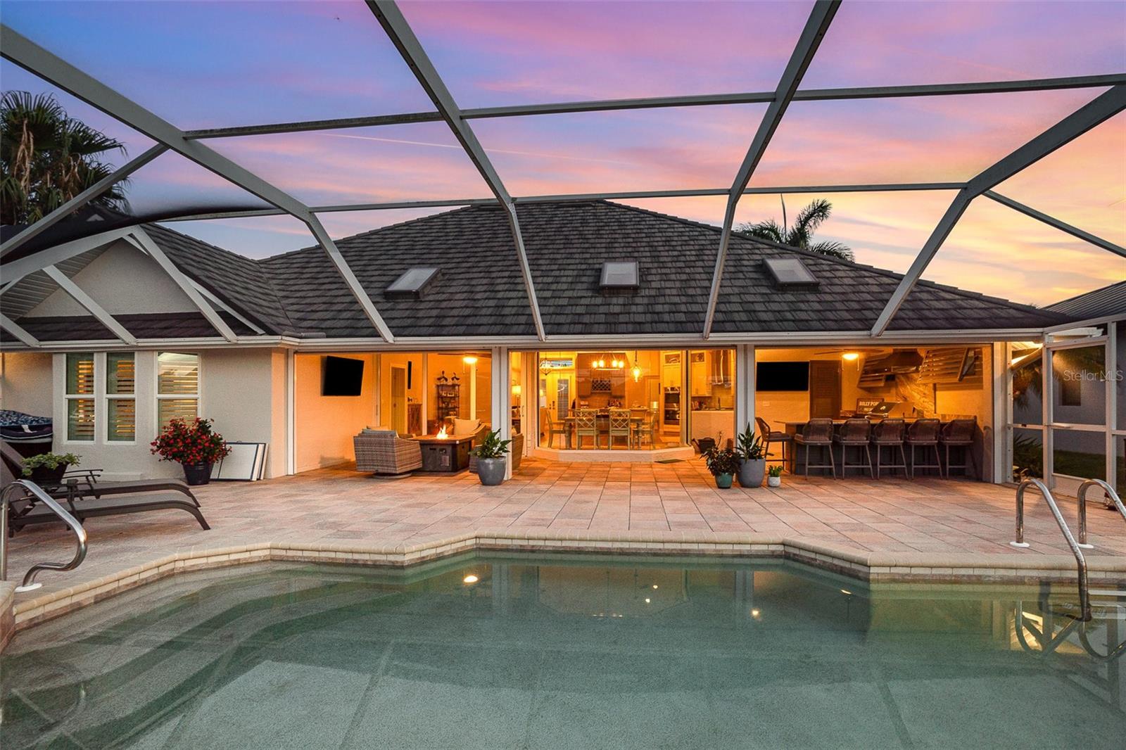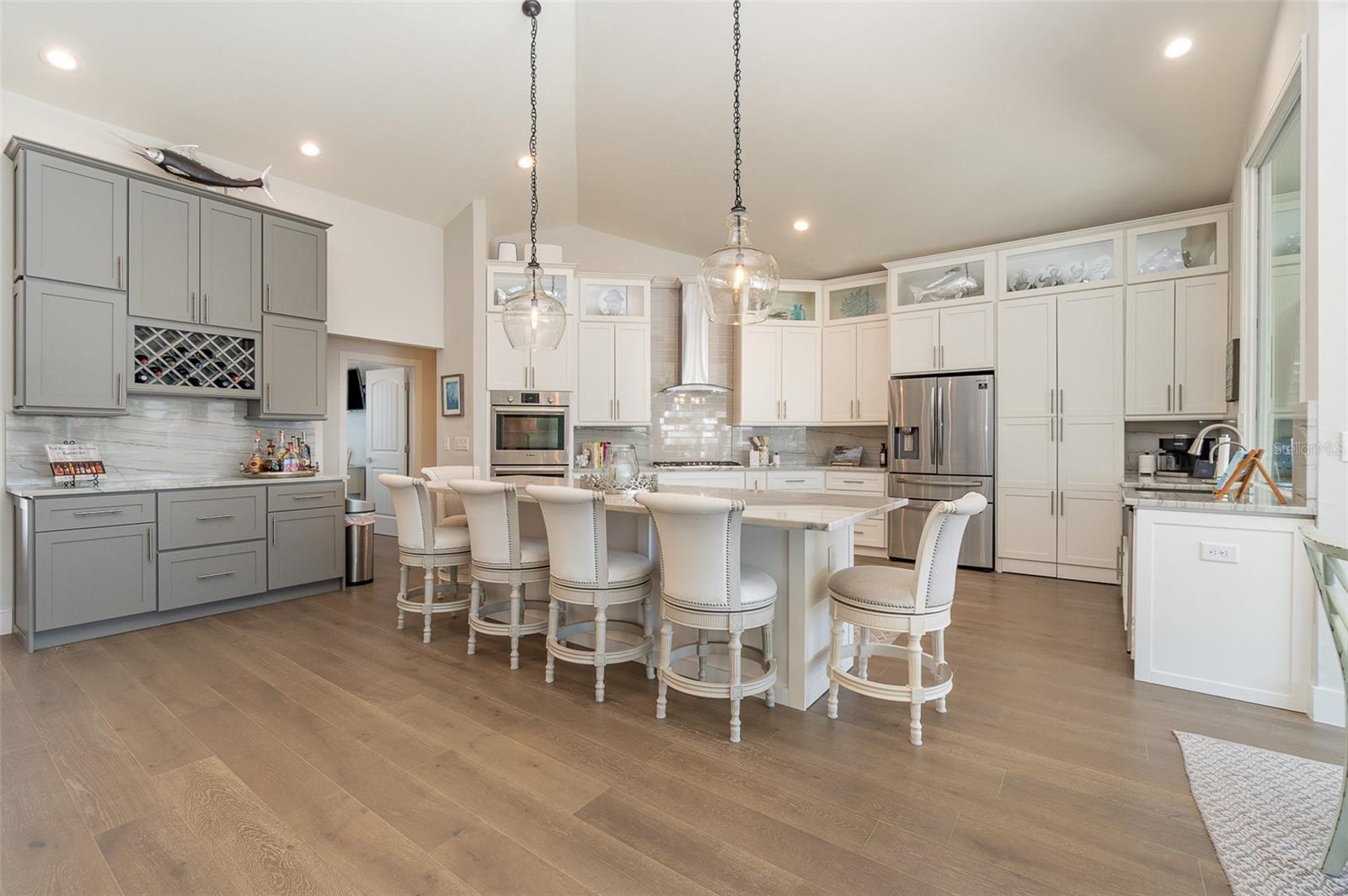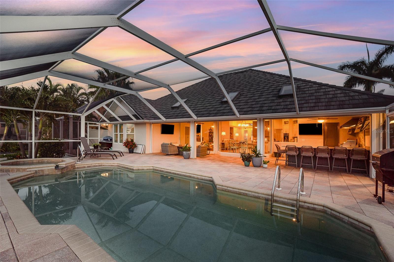 Em um terreno enorme no local mais procurado de SW Cape Coral, você encontrará este requintado país das maravilhas à beira-mar. Esta casa oferece 3 quartos de tamanhos generosos e um escritório ou 4º quarto e três banheiros luxuosamente decorados. Em um dos canais mais largos de Cape Coral, nenhum detalhe foi perdido nesta imaculada e belíssima casa com piscina com acesso a um veleiro. Em um bairro tranquilo ao sul de Cape Coral Pkwy e em um canal de 240 pés de largura, você desfrutará de vistas panorâmicas da South Spreader Waterway e acesso rápido de barco à vela ao Golfo do México. Os atuais proprietários remodelaram e reconfiguraram totalmente esta casa em 2019, adicionando muito vidro de impacto junto com todos os novos pisos, bancadas de quartzo, armários de madeira maciça, eletrodomésticos de última geração, além de bela iluminação, encanamentos, tratamentos de janela e muito mais, tornando esta a última palavra. residência à beira-mar. Ao entrar na casa você ficará imediatamente impressionado com a ampla área de estar aberta, tetos volumosos e opções requintadas de cores e acabamentos. Você vai adorar se divertir nesta enorme cozinha gourmet remodelada e verdadeira, incluindo uma abundância de armários de madeira maciça personalizados, uma enorme ilha de quartzo de seis lugares, fogão a gás, forno de parede dupla, geladeira de duas gavetas com portas francesas, pia grande de aço inoxidável, máquina de fazer gelo e características únicas como um bar de vinhos e uma grande despensa escondida para armazenamento adicional. A suíte principal de grandes dimensões é o seu santuário pessoal, que inclui pias duplas, uma grande banheira de imersão e um lindo chuveiro de azulejos. Nenhum detalhe foi perdido na varanda, que inclui uma enorme cozinha de verão com bancadas de granito sobre armários compostos da mais alta qualidade disponíveis, bem como eletrodomésticos de última geração, incluindo uma churrasqueira e uma grelha com ventilação comercial acima, além de uma geladeira estilo gaveta dupla e um grande armário de arrumação para todas as necessidades para desfrutar da vida ao ar livre, tudo protegido por telas anti-furacão. Você poderá dar um mergulho rápido na enorme piscina aquecida ou relaxar confortavelmente no spa integrado. A orla marítima apresenta uma bela doca composta com elevador de 15.000 libras e cobertura de 40 pés de comprimento. Mecanicamente, esta casa também está atualizada, incluindo um sistema de ar condicionado Lenox 2021 de última geração com termostato wi-fi Honeywell e um telhado revestido de pedra de aço 2023 com garantia de 50 anos. Esta casa é o epítome da vida luxuosa à beira-mar e é deslumbrante em todos os sentidos e proporcionará uma vida sem preocupações nos próximos anos. Todas as avaliações são pagas e há uma apólice de seguro contra inundações de custo superbaixo disponível para o comprador assumir. Agende hoje mesmo seu horário para conhecer essa belezura.