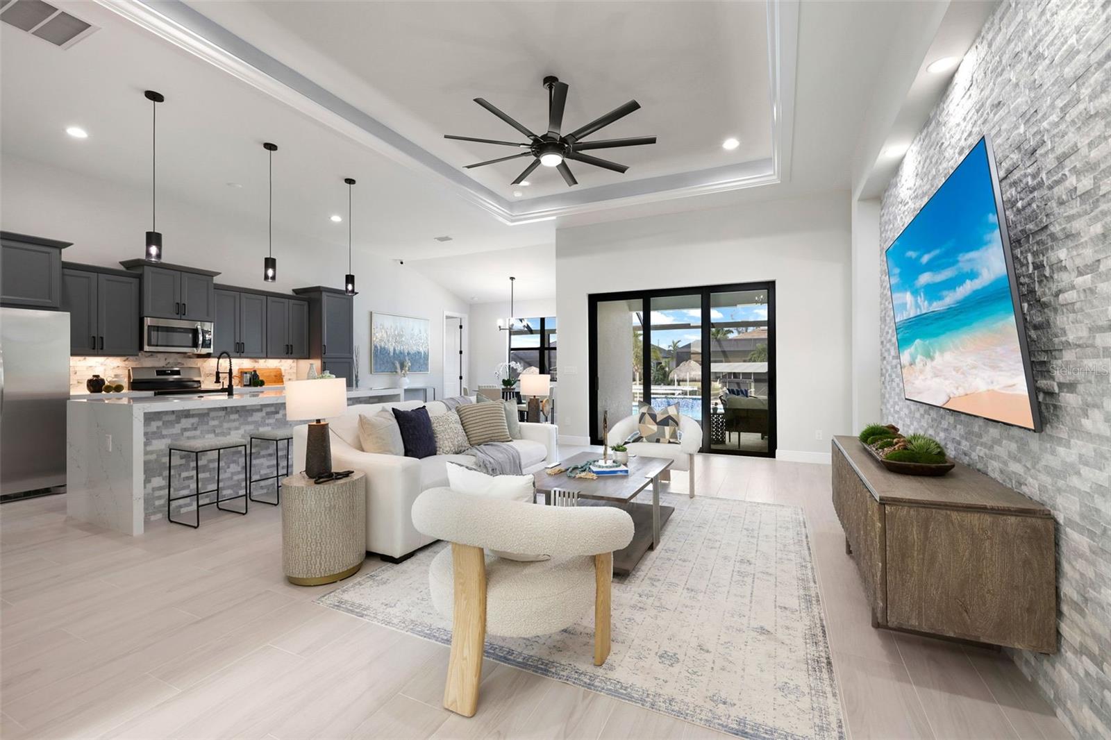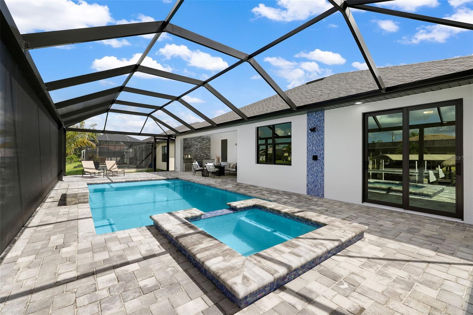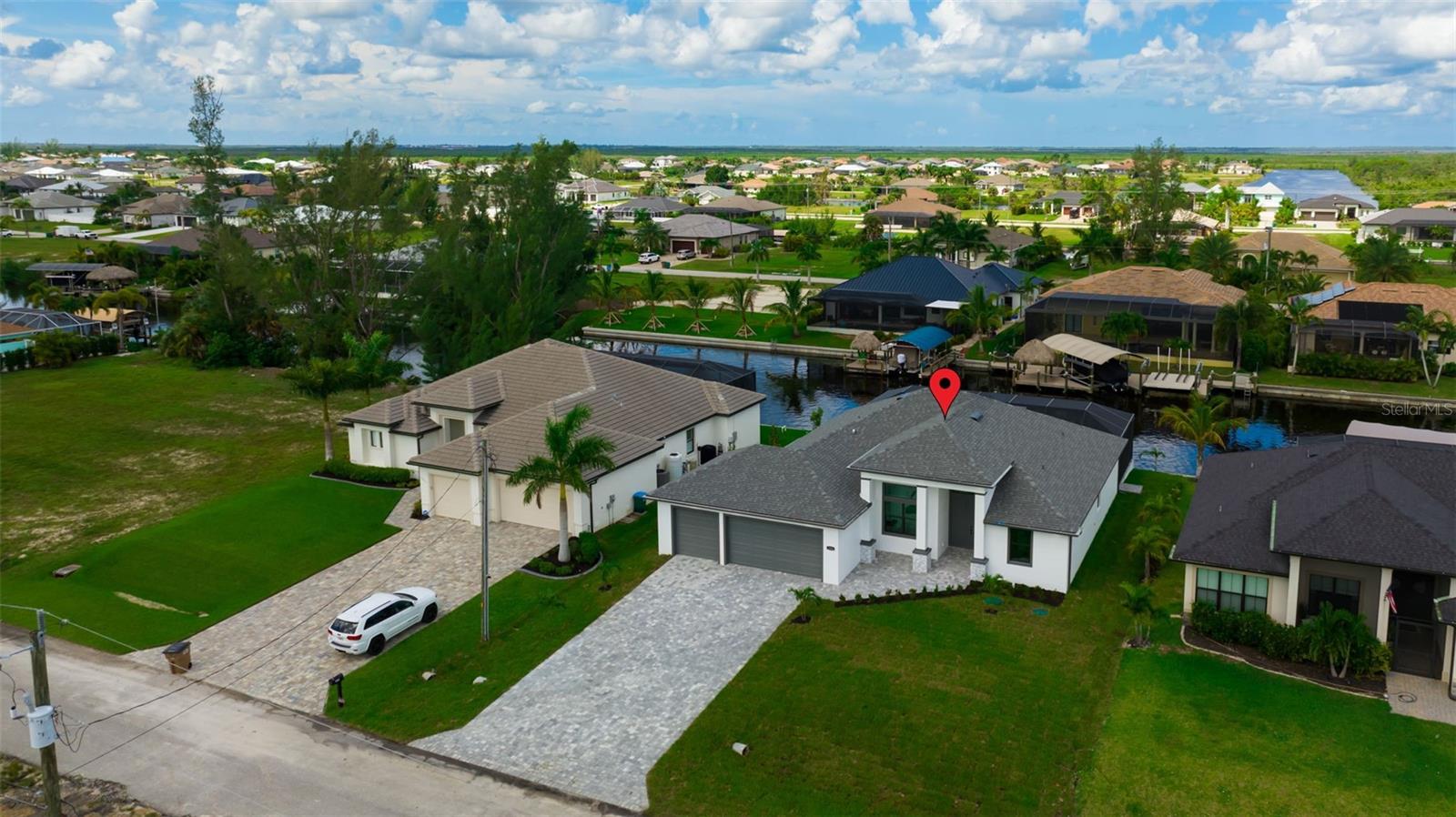 Bem-vindo ao modelo SOHO em 1806 Northwest 38th Place em Cape Coral, FL! Esta nova casa luxuosa de 4 camas e 3 banheiros está repleta de atualizações de alta qualidade e oferece mais de 2.000 pés quadrados de espaço elegante. Imagine relaxar à beira de sua piscina aquecida e spa, tudo gerenciado por um sistema Pentair de última geração. A gaiola da piscina com imagem da guarda oferece vistas desobstruídas, criando uma mistura perfeita de vida interna e externa. Os entusiastas da navegação vão adorar o deck composto e o elevador de barco de 14.000 libras com acesso ao Golfo - perfeito para cruzeiros ao pôr do sol e aventuras de fim de semana. Entre e você será recebido por uma planta baixa de conceito aberto que exala elegância moderna. A cozinha é um sonho culinário, com eletrodomésticos Frigidaire de aço inoxidável, elegantes bancadas de quartzo e amplos armários para todas as suas necessidades de armazenamento. Mas isso não é tudo - esta cozinha de grandes dimensões de 6 cm possui bancadas de quartzo Cambria com retornos em cascata de ilha de dupla face, um descarte e uma torre de receptáculo pop-up que inclui recursos de carregamento sem fio e uma porta de carregamento USB. Os tetos iluminados em toda a casa adicionam um toque de sofisticação e ambiente. A suíte principal é um santuário de conforto e luxo, oferecendo muito espaço para relaxar. O banheiro privativo está equipado com equipamentos e acabamentos de alta qualidade, proporcionando uma experiência de spa em casa. Os quartos adicionais são de tamanho generoso e versáteis, perfeitos para hóspedes ou para um escritório doméstico. Saia para sua cozinha externa totalmente equipada, com frigobar, ideal para receber amigos e familiares. O quintal é adornado com palmeiras natalinas, adicionando um clima tropical ao seu oásis particular. Quer esteja a organizar um churrasco de verão ou a desfrutar de uma noite tranquila à beira da piscina, este espaço exterior foi concebido para relaxamento e diversão. Mantenha-se conectado e seguro com sistemas integrados de alto-falantes internos e externos e câmeras de segurança de última geração. A casa também apresenta acabamento avançado e atenção aos detalhes, garantindo qualidade e durabilidade por toda parte. Esta casa é uma obra-prima de luxo moderno e design atencioso, pronta para você torná-la sua. Não perca esta incrível oportunidade de viver o melhor estilo de vida da Flórida.