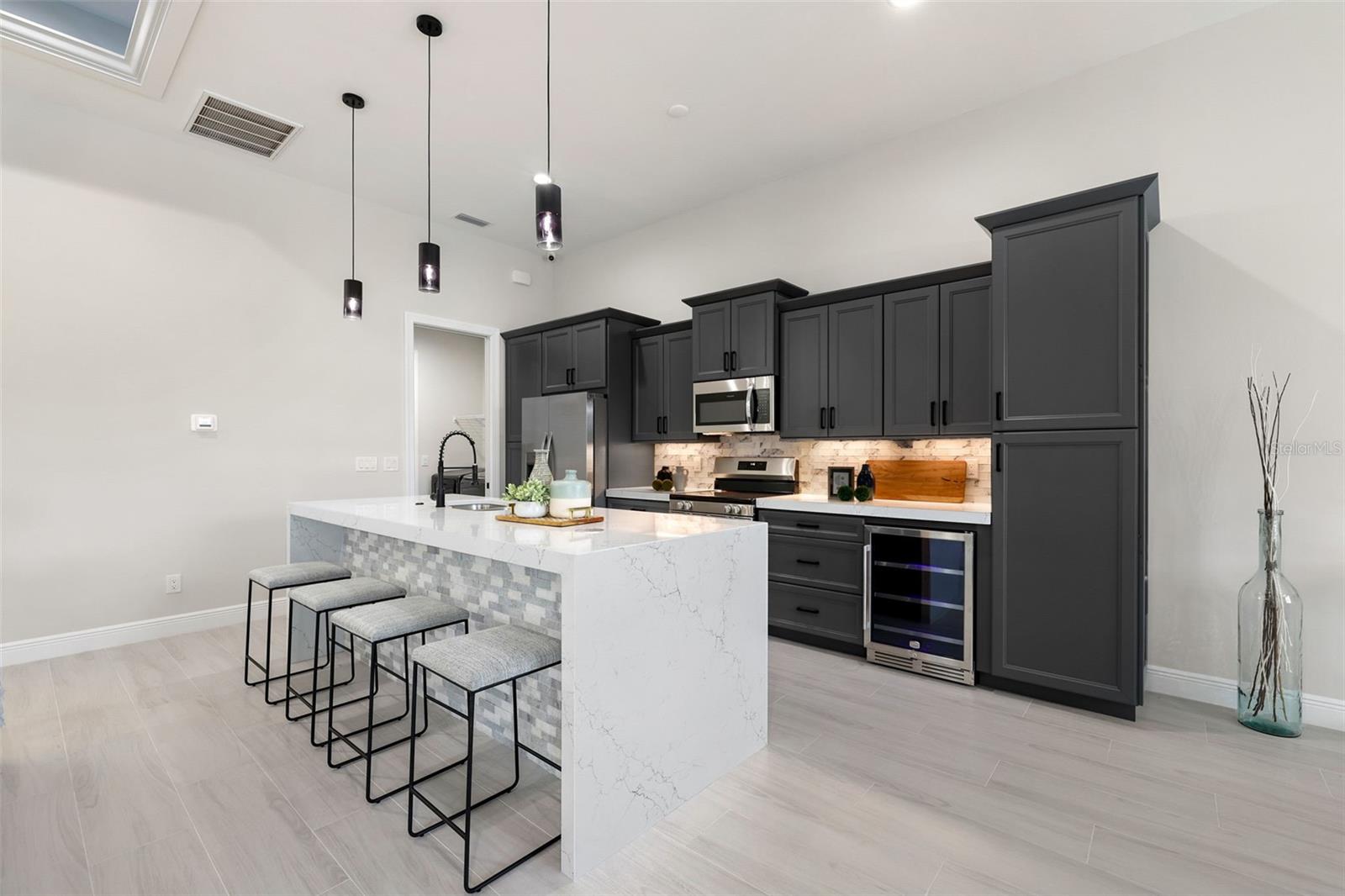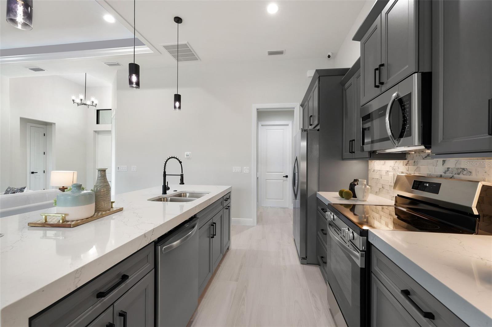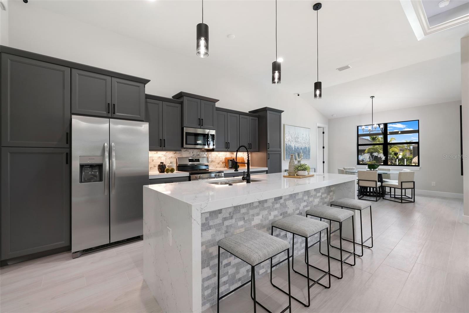 Bem-vindo ao modelo SOHO em 1806 Northwest 38th Place em Cape Coral, FL! Esta nova casa luxuosa de 4 camas e 3 banheiros está repleta de atualizações de alta qualidade e oferece mais de 2.000 pés quadrados de espaço elegante. Imagine relaxar à beira de sua piscina aquecida e spa, tudo gerenciado por um sistema Pentair de última geração. A gaiola da piscina com imagem da guarda oferece vistas desobstruídas, criando uma mistura perfeita de vida interna e externa. Os entusiastas da navegação vão adorar o deck composto e o elevador de barco de 14.000 libras com acesso ao Golfo - perfeito para cruzeiros ao pôr do sol e aventuras de fim de semana. Entre e você será recebido por uma planta baixa de conceito aberto que exala elegância moderna. A cozinha é um sonho culinário, com eletrodomésticos Frigidaire de aço inoxidável, elegantes bancadas de quartzo e amplos armários para todas as suas necessidades de armazenamento. Mas isso não é tudo - esta cozinha de grandes dimensões de 6 cm possui bancadas de quartzo Cambria com retornos em cascata de ilha de dupla face, um descarte e uma torre de receptáculo pop-up que inclui recursos de carregamento sem fio e uma porta de carregamento USB. Os tetos iluminados em toda a casa adicionam um toque de sofisticação e ambiente. A suíte principal é um santuário de conforto e luxo, oferecendo muito espaço para relaxar. O banheiro privativo está equipado com equipamentos e acabamentos de alta qualidade, proporcionando uma experiência de spa em casa. Os quartos adicionais são de tamanho generoso e versáteis, perfeitos para hóspedes ou para um escritório doméstico. Saia para sua cozinha externa totalmente equipada, com frigobar, ideal para receber amigos e familiares. O quintal é adornado com palmeiras natalinas, adicionando um clima tropical ao seu oásis particular. Quer esteja a organizar um churrasco de verão ou a desfrutar de uma noite tranquila à beira da piscina, este espaço exterior foi concebido para relaxamento e diversão. Mantenha-se conectado e seguro com sistemas integrados de alto-falantes internos e externos e câmeras de segurança de última geração. A casa também apresenta acabamento avançado e atenção aos detalhes, garantindo qualidade e durabilidade por toda parte. Esta casa é uma obra-prima de luxo moderno e design atencioso, pronta para você torná-la sua. Não perca esta incrível oportunidade de viver o melhor estilo de vida da Flórida.