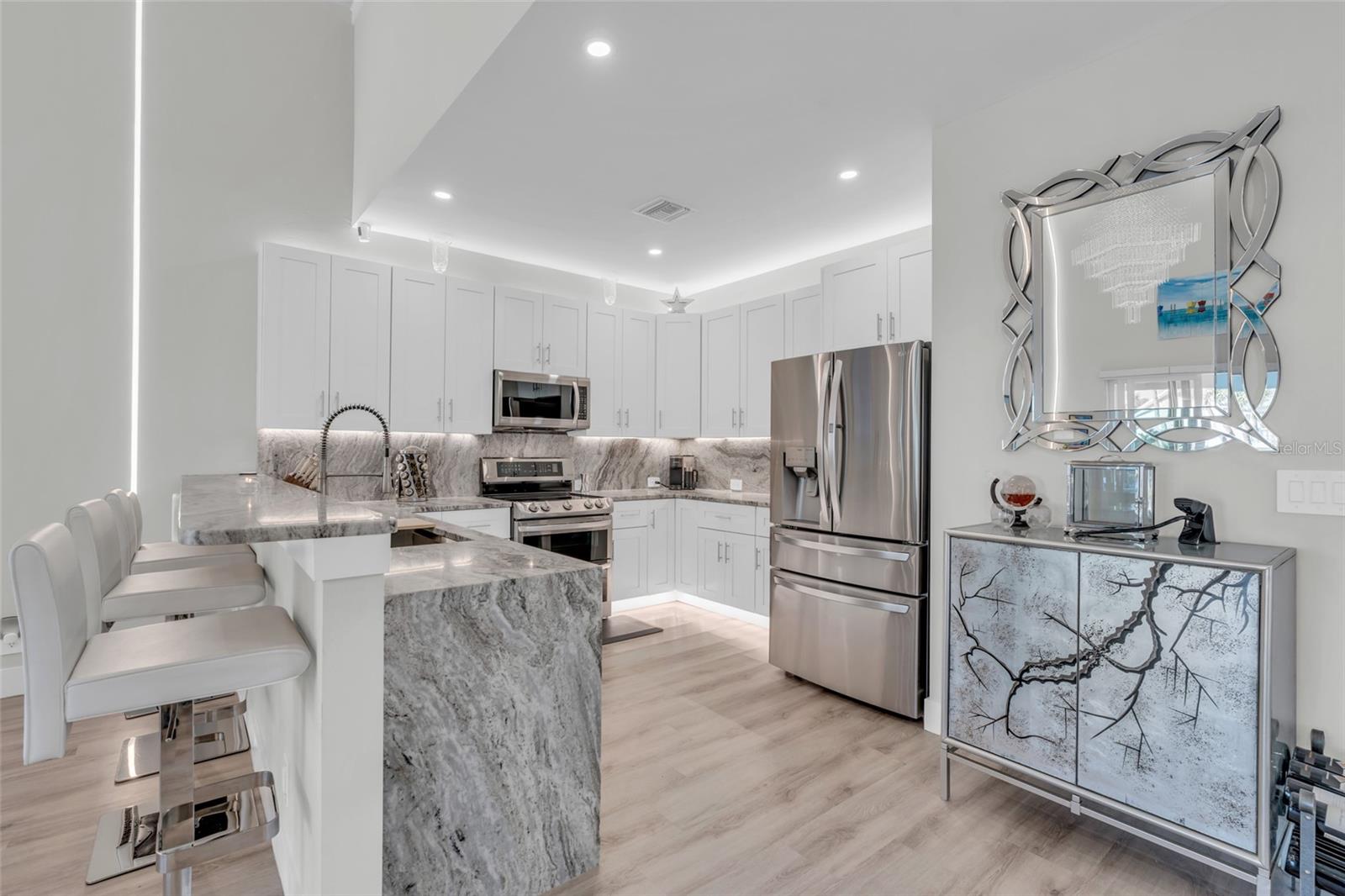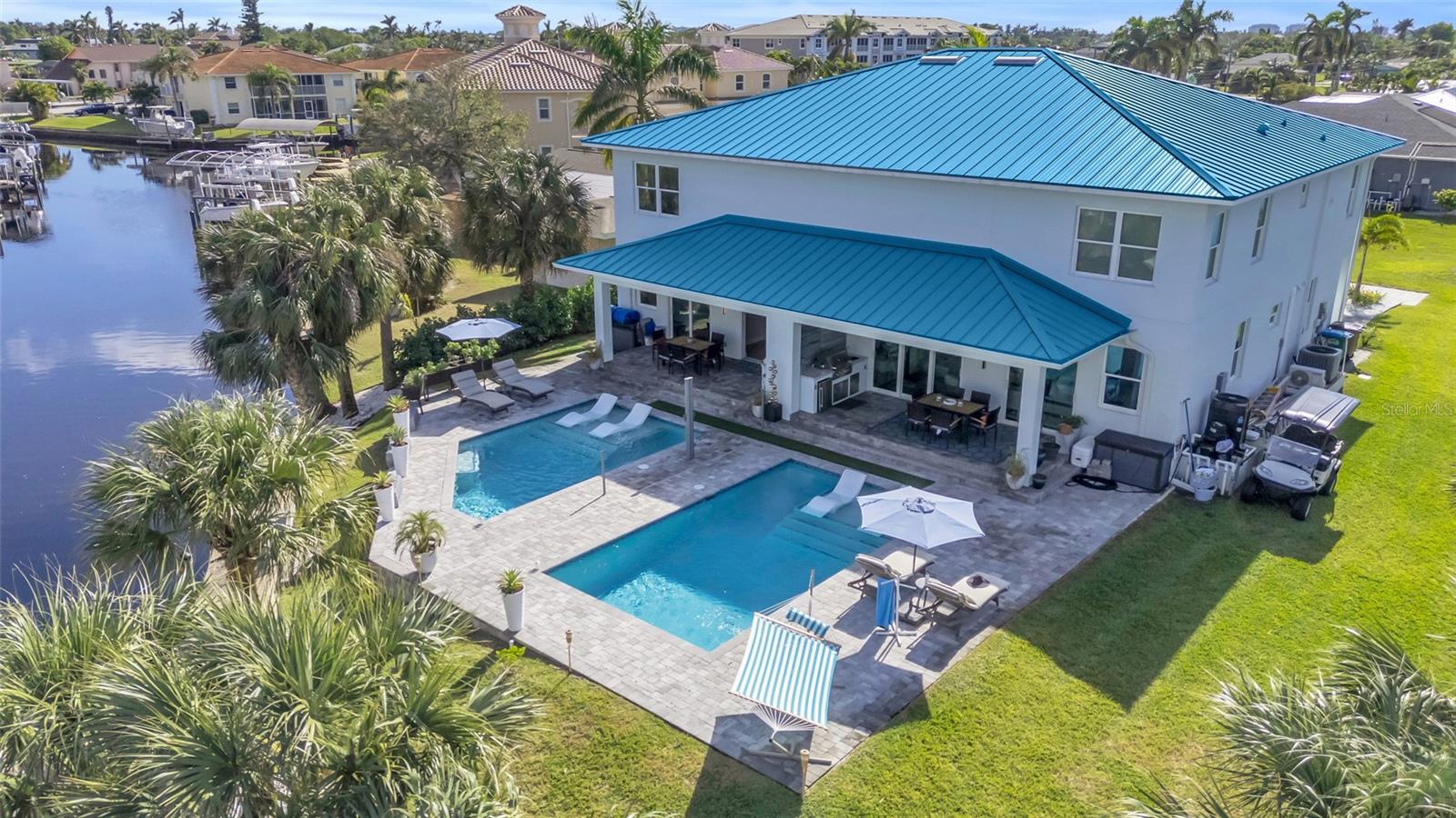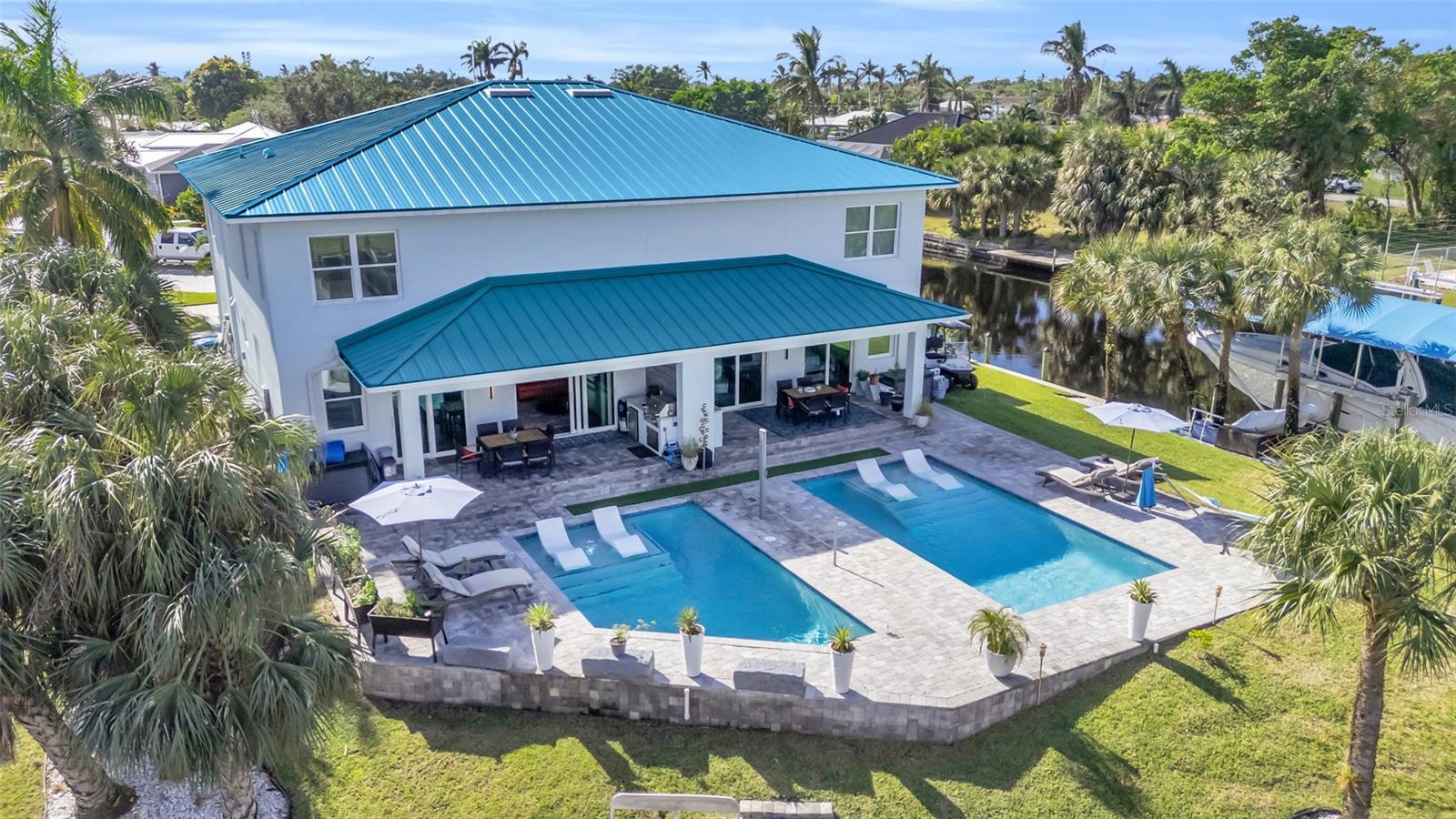 Experimente o auge do luxo e da vida moderna com esta excepcional residência semi-anexada à beira-mar em Cape Coral. Perfeitamente adequada para uma vida multigeracional, gerando renda de aluguel ou desfrutando de um retiro privado, esta propriedade oferece uma combinação incomparável de versatilidade, estilo e recursos premium. Cada casa se estende por 2.091 pés quadrados e inclui 3 quartos, uma sala, 2,5 banheiros e uma garagem para 2 carros, tornando-a ideal para investidores exigentes ou para aqueles que buscam uma vida incomparável à beira-mar. Ambas as casas possuem suas próprias piscinas lindas e pátios privativos, criando um oásis para relaxamento e entretenimento. O sonho dos velejadores! Os velejadores ficarão cativados pelo acesso direto pela água, sem pontes, ao Golfo do México, oferecendo uma rota fácil para pesca de classe mundial, praias imaculadas e águas abertas. Quer você seja um marinheiro experiente ou um entusiasta casual, o cais da propriedade e o elevador de barco de 20.000 libras garantem que seu estilo de vida náutico seja tão conveniente quanto agradável. Combinada com amplas vistas para o mar de quase todos os quartos, esta residência geminada resume a beleza e a facilidade de viver à beira-mar. No interior, o Home 1 define o padrão de luxo moderno com eletrodomésticos inteligentes de aço inoxidável de última geração da LG, incluindo uma geladeira que envia mensagens de texto e produz cubos de gelo de bourbon, um micro-ondas de convecção e acabamentos de alta qualidade por toda parte. Esta casa conta ainda com bar seco com tampo de granito, armários personalizados, persianas motorizadas na sala e iluminação LED no chão. A luxuosa suíte principal inclui uma grande porta de correr para a varanda, banheira de imersão, pia dupla e closet espaçoso. Além disso, possui uma garagem com temperatura controlada. A Casa 2, com entrada privativa, oferece a mesma configuração espaçosa e vistas deslumbrantes para o mar. Embora mantenha um layout ligeiramente diferente, oferece amplo espaço e versatilidade para famílias ou convidados. Ambas as casas possuem armários personalizados, quartos secundários amplos e uma penteadeira dupla adicional no andar de cima. Construída para oferecer resiliência e eficiência, a propriedade inclui janelas e portas contra o impacto do furacão e um telhado revestido de alumínio durável de 50 anos. O espaço ao ar livre é igualmente impressionante, com cozinhas externas totalmente equipadas, piscinas ionizadas aquecidas que exigem manutenção mínima de cloro e muito espaço para aproveitar o sol da Flórida. Situada em um terreno com um enorme paredão, esta propriedade garante amplo espaço de ancoragem e acesso incomparável à beira-mar. Com a sua combinação de conveniências modernas, acabamentos luxuosos e acesso direto ao Golfo, esta residência semi-anexa é um achado raro, oferecendo um estilo de vida luxuoso e excelente potencial de investimento. Não perca a oportunidade de possuir este pedaço do paraíso em Cape Coral!