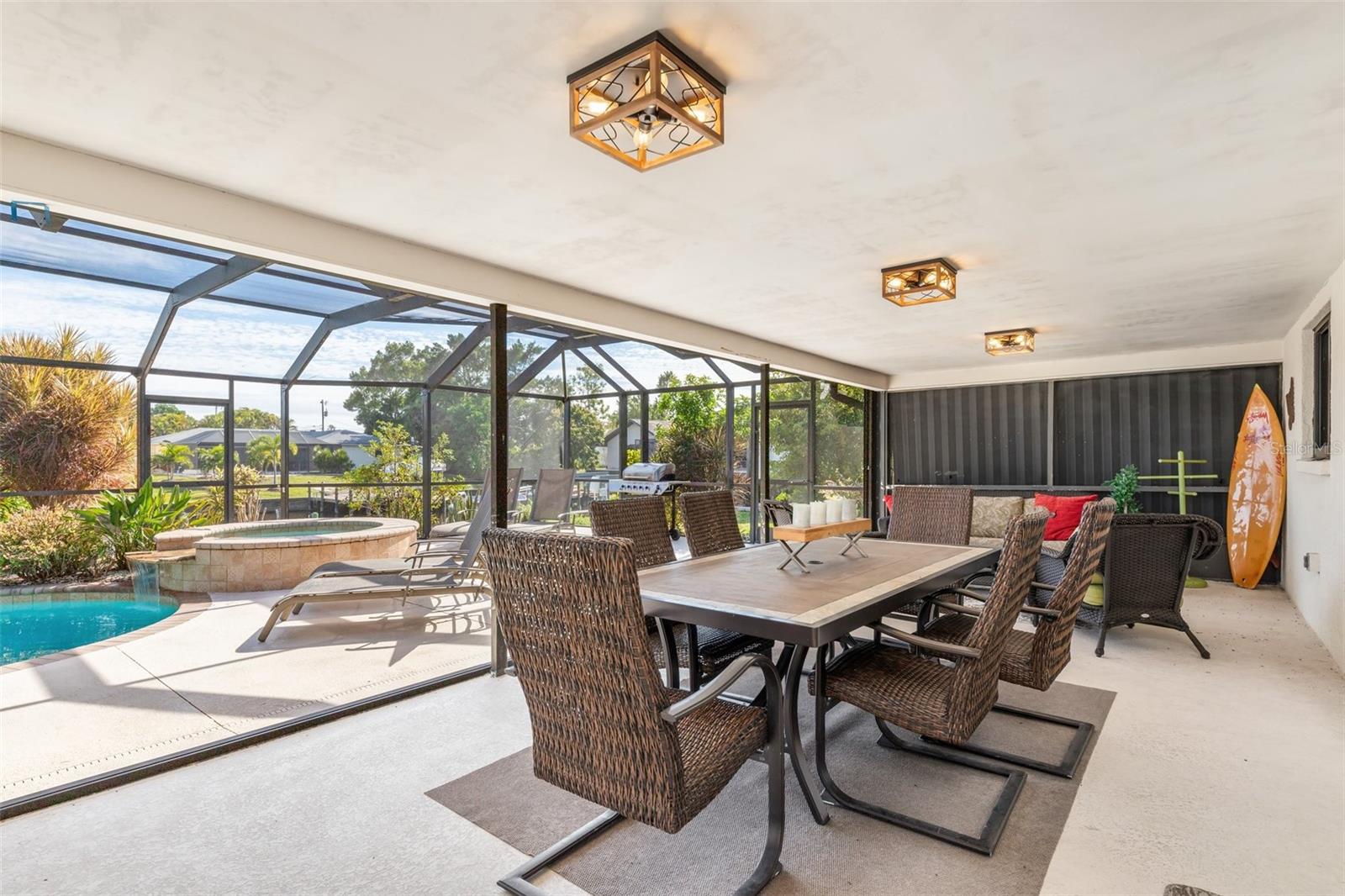 Sem HOA, fachada do canal de água salgada, piscina e spa, grande pátio fechado para entretenimento. Vistas da piscina e do canal enquanto você entra. Bem -vindo à sua próxima casa em Cape Coral. Esta casa de 3 quartos e 2 banheiros oferece a oportunidade de apreciar o melhor da vida à beira-mar. Layout de piso aberto, cozinha abastecida com utensílios de aço inoxidável. A suíte master apresenta um espaçoso closet, enquanto pisos de ladrilhos e carpetes em toda a casa adicionam um toque convidativo a todos os quartos. Tudo dentro é negociável para ser incluído para sua conveniência. Esta é uma propriedade turnkey à beira -mar que o receberá em adotar o belo estilo de vida da Flórida que você sonha. Esta casa também oferece uma oportunidade fantástica de aluguel, proporcionando o equilíbrio perfeito de prazer pessoal e potencial de renda. Os vendedores são motivados.