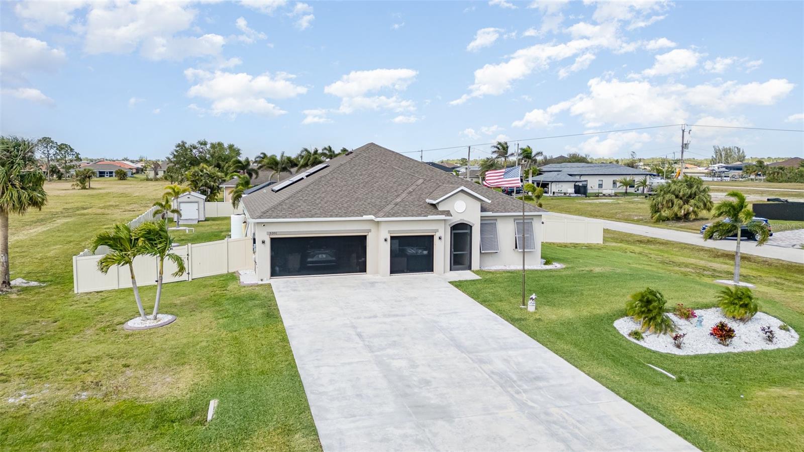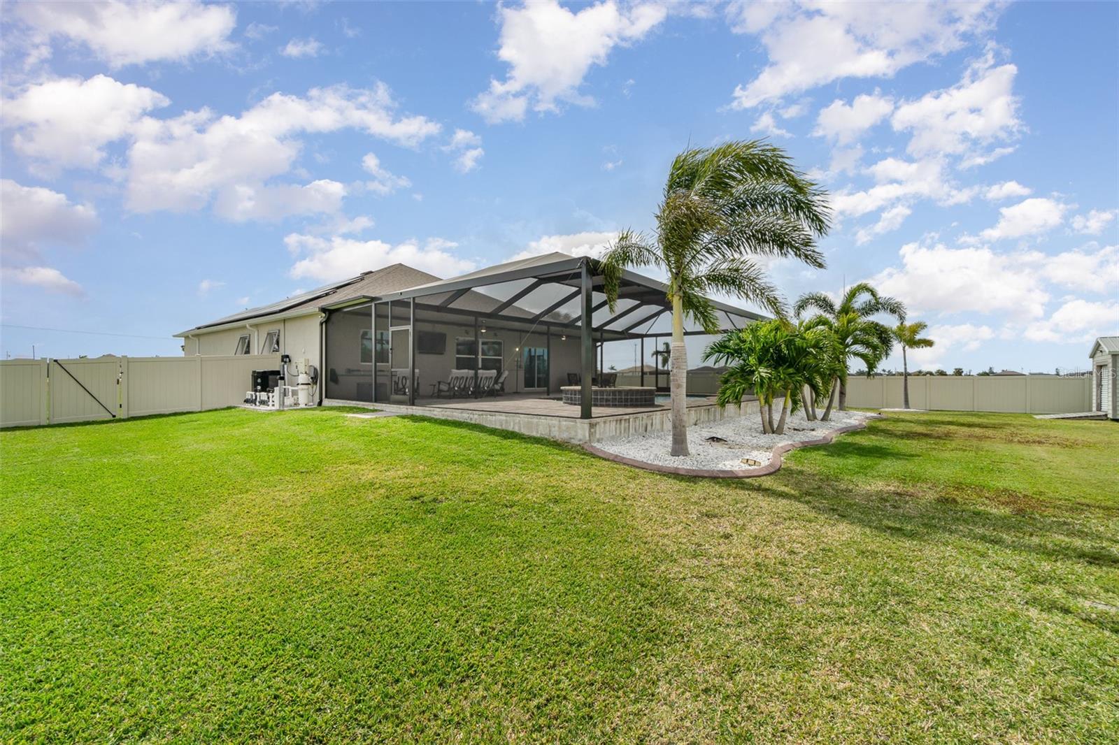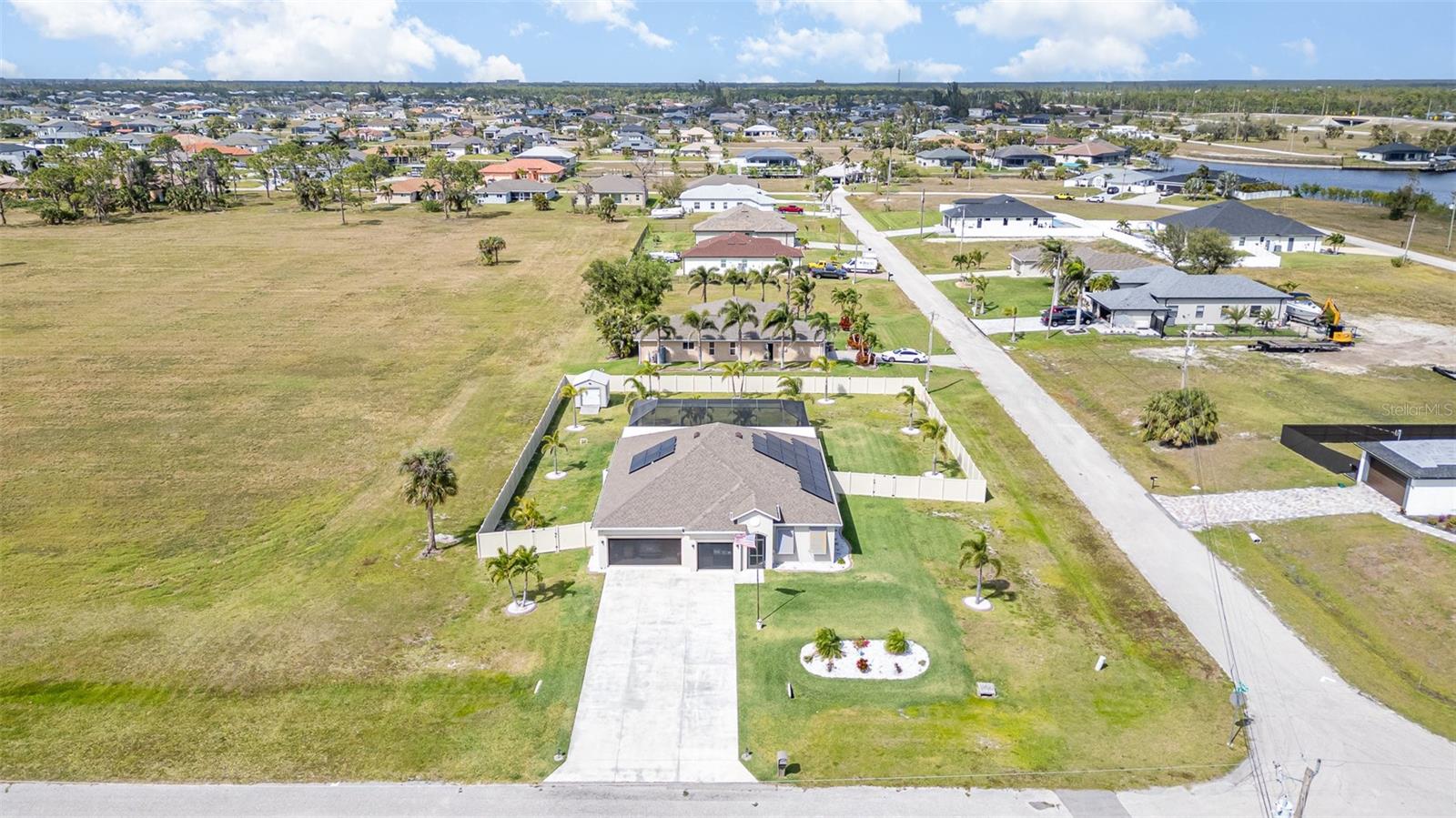 Lindo 3 quartos, 2 banheiro, garagem de 3 carros, piscina em casa com uma sala de família, situada em um lote de meio hectare em Cape Coral. Sem taxas de HOA! Clique no link 1 do Tour Virtual para o vídeo e o link virtual 2 para o tour 3D. Esta casa encantadora possui uma planta baixa e arejada, piso de ladrilhos nas principais áreas de estar, um sistema de osmose reversa de casa inteira, painéis solares e muito mais! Passe um tempo de qualidade com amigos e familiares na sala de estar, com duas grandes janelas para muita iluminação natural. A cozinha oferece todos os utensílios de aço inoxidável, incluindo um forno duplo embutido e cozinheiro, bancadas em granito, backsplash de telha, uma ilha com uma barra de café da manhã, uma despensa e muitos armários para armazenamento. Expanda seu espaço de vida e entretenimento para a família e a sala de jantar da cozinha com um controle deslizante de vidro para o Lanai. O espaçoso quarto principal tem um teto de bandeja, um closet e um banheiro privativo com uma vaidade de pia dupla, um chuveiro com bancada e várias cabeças de chuveiro e um armário de água. Os quartos de hóspedes estão em uma planta baixa, proporcionando muita privacidade com armários embutidos e um banheiro de hóspedes compartilhado por perto. Um oásis privado aguarda a grande parte de exibição, onde você pode saborear seu café da manhã ou relaxar com sua bebida de noite favorita. Recarregue e relaxe com uma piscina de água salgada aquecida e spa, perfeita para diversão durante todo o ano ou absorva o sol do deck da piscina. O quintal paisagístico é totalmente cercado com um galpão de armazenamento para todos os seus equipamentos ao ar livre. 2021 Telhado - Sistema de osmose reversa de casa inteira - painéis solares w 3 baterias de backup Tesla - Proteção do furacão - Sistema de alarme Vivint w 2 câmeras e gravador de 30 dias - armazenamento de garagem de teto - Garagem epoxy e piso de entrada frontal. Convenientemente localizado perto de compras e butiques locais, refeições finas e casuais, entretenimento ao vivo e uma curta viagem de carro para praias premiadas! Agende sua exibição hoje!