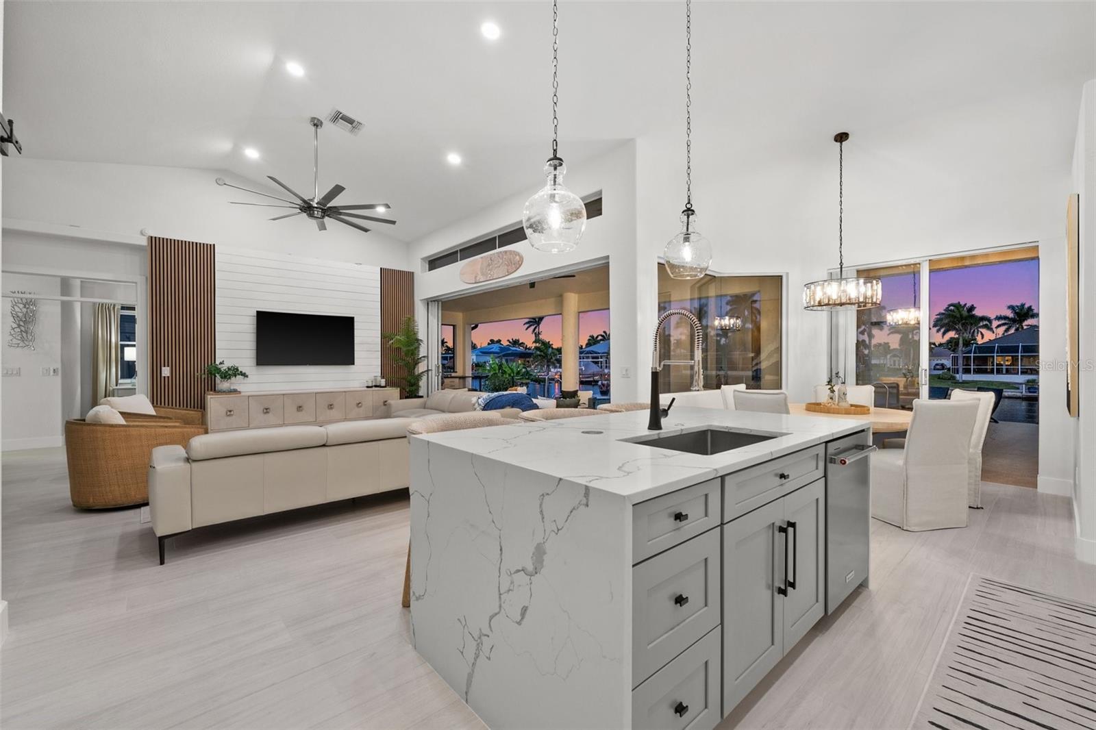 PREÇO PARA VENDER! Viva o melhor estilo de vida do sudoeste da Flórida nesta casa MOBILIADA com piscina com acesso ao Golfo, lindamente atualizada, localizada a poucos minutos das lojas, restaurantes e marina de Cape Harbour. Situada em um lote triplo cercado de grandes dimensões com 120 PÉS DE ACESSO À BEIRA-MAR DO GOLFO, esta casa de 3 quartos e 3 banheiros com um ESCRITÓRIO privado oferece amplas vistas para o canal e muito espaço para relaxar e se divertir. O layout de conceito aberto apresenta tetos altos, novo piso de porcelanato e controles deslizantes na grande sala para uma vida interna e externa perfeita. A cozinha da ilha é atualizada, moderna e costeira, com bancada de quartzo, eletrodomésticos de inox, balcão para café da manhã, iluminação aprimorada e novo backsplash de azulejos. A espaçosa suíte principal inclui portas francesas para a varanda, closet e banheiro privativo totalmente remodelado com pias duplas, banheira de imersão independente e chuveiro com box de vidro. Dois quartos de hóspedes, um escritório dedicado, um banheiro completo para hóspedes e um banheiro de piscina proporcionam conforto e flexibilidade para familiares ou visitantes. Do lado de fora, desfrute de uma grande varanda coberta, cozinha externa totalmente nova com churrasqueira embutida e geladeira de bebidas, além de um amplo deck ao redor da piscina cintilante. As atualizações recentes incluem re-tubulação de toda a casa, um novo painel elétrico, novo aquecedor de água, nova máquina de lavar louça, banheiros remodelados, iluminação e acessórios atualizados, pintura nova no interior e na garagem e novo paisagismo. Uma entrada circular e um cenário tropical exuberante aumentam a atratividade do meio-fio. Com acesso rápido a águas abertas e SEM INUNDAÇÕES durante Ian, Helene ou Milton, este é um verdadeiro retiro à beira-mar de Cape Coral. TELHADO 2023 AC 2025 AQUECEDOR DE PISCINA 2025
