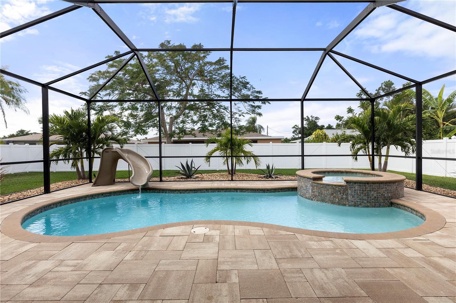 Descubra esta casa lindamente atualizada de 3 quartos e 2 banheiros, em um bairro altamente desejável de Cape Coral, a poucos minutos do centro da cidade. Aninhado em uma área tranquila perto do velho campo de golfe revitalizado da cidade, esta propriedade oferece uma mistura perfeita de conforto moderno e luxo ao ar livre. O layout aberto cria uma atmosfera espaçosa e convidativa, perfeita para entretenimento ou relaxamento. As atualizações recentes incluem um novo telhado em 2022, uma nova bomba de piscina e aparelhos em 2024, novos pisos nos quartos e bancadas impressionantes de quartzo na cozinha e na lavanderia. Luminárias atualizadas por toda parte, janelas parciais de furacão, janelas com tinta de UV e um sistema de filtração de água aprimora o apelo e a funcionalidade da casa, uma entrada de automóveis recém-selada. A garagem de dois carros apresenta pisos epóxi recém-aplicados, adicionando um toque polido ao espaço. A área externa é um verdadeiro oásis, completo com uma piscina e um spa com um aquecedor, um pátio estendido com uma passarela percorrida ao longo da lateral da casa e uma cozinha externa construída em 2024 sob uma pérgola sombreada. O quintal cercado exibe paisagismo totalmente novo, iluminação paisagística e um Lanai totalmente redigido, criando um retiro privado. A entrada de automóveis extra em largura oferece amplo estacionamento, e a localização da casa em um bairro pacífico aumenta seu fascínio. Mantida e cuidadosamente atualizada, essa propriedade é realmente excepcional. Agende sua exibição particular hoje e descubra tudo o que esta jóia do Cabo Coral tem a oferecer!