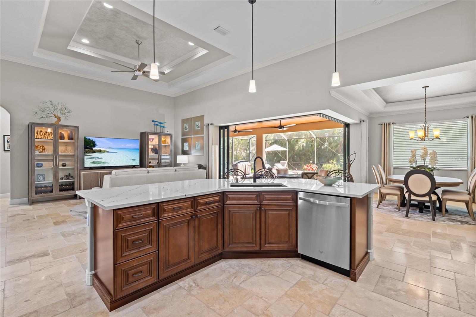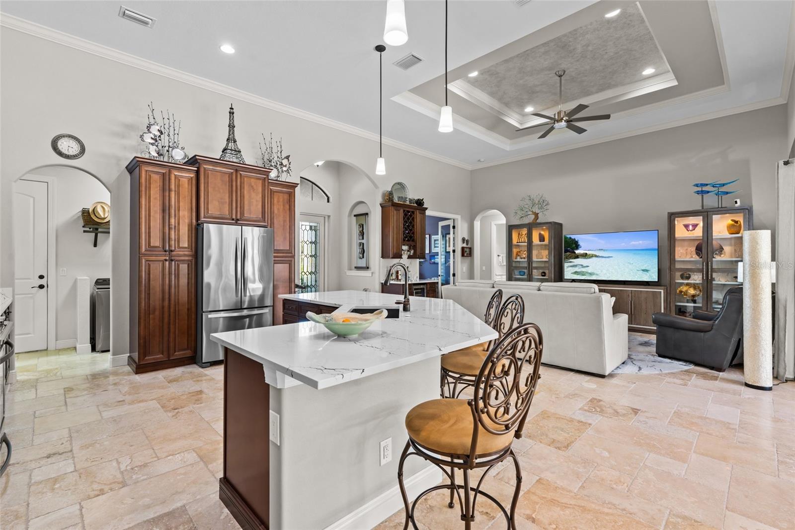 Espetacular residência executiva de alto padrão construída sob medida oferece uma vida luxuosa com cada detalhe cuidadosamente pensado e atualizado - esta casa não precisa de absolutamente nada! Construída em 2016 e amplamente atualizada em 2024, esta propriedade é um achado raro que combina perfeitamente elegância atemporal com conveniência moderna. Entre em uma planta aberta e iluminada com detalhes de teto extra altos e impressionantes na sala de estar, suíte principal e escritório/escritório. A luz natural entra pelas janelas e portas de alto impacto e baixa emissividade, proporcionando beleza, eficiência energética e segurança. Molduras de coroa elegantes percorrem toda a casa, adicionando um toque final sofisticado. O coração da casa é a cozinha do chef, atualizada com requintadas bancadas de quartzo Cambria em 2024, juntamente com armários de alta qualidade e acessórios elegantes que são funcionais e luxuosos. O belo piso de travertino flui pelas principais áreas de estar, realçando a sensação aconchegante e sofisticada da casa. A espaçosa suíte principal oferece um retiro tranquilo, com tetos retangulares, muita luz e um luxuoso banheiro privativo com pia dupla e lindas bancadas de pedra-sabão. O closet enorme se conecta à lavanderia - uma conveniência brilhante e rara na maioria das casas. Os quartos adicionais são de tamanhos generosos e o escritório/escritório é perfeito para trabalho remoto, sala de leitura ou uma fuga tranquila. Saia para o seu paraíso pessoal: uma varanda coberta com um rico teto de cedro e ventiladores de teto potentes, criando uma atmosfera serena para entretenimento ou relaxamento. As portas de vidro deslizantes de 90 graus abrem totalmente, misturando o interior com o exterior e levando à sua piscina de água salgada aquecida, ideal para diversão durante todo o ano. Outros recursos incluem uma unidade de ar condicionado totalmente nova, uma nova bomba de piscina e um sistema de água de osmose reversa (RO) para toda a casa, telas Storm Smart na varanda, todas instaladas em 2024. Há também uma conexão EV dedicada instalada em 2022, junto com um mini-ar condicionado split na espaçosa garagem para 3 carros e conectado para conexão do gerador. Uma nova camada de tinta interior ilumina toda a casa. O armazenamento é abundante, com espaços bem projetados por toda parte. O melhor de tudo é que esta casa nunca sofreu inundações causadas por nenhuma tempestade - um grande bônus para quem vive na Flórida. Esta propriedade única verifica todos os requisitos de luxo, conforto e paz de espírito. Esteja você procurando uma residência em tempo integral ou um refúgio sazonal sofisticado, esta casa oferece tudo que você precisa. Não perca a oportunidade de possuir uma verdadeira jóia – agende hoje mesmo seu tour privado! Seguro contra inundações do proprietário transferível $ 1.867 / ano.