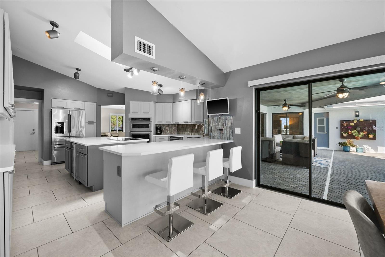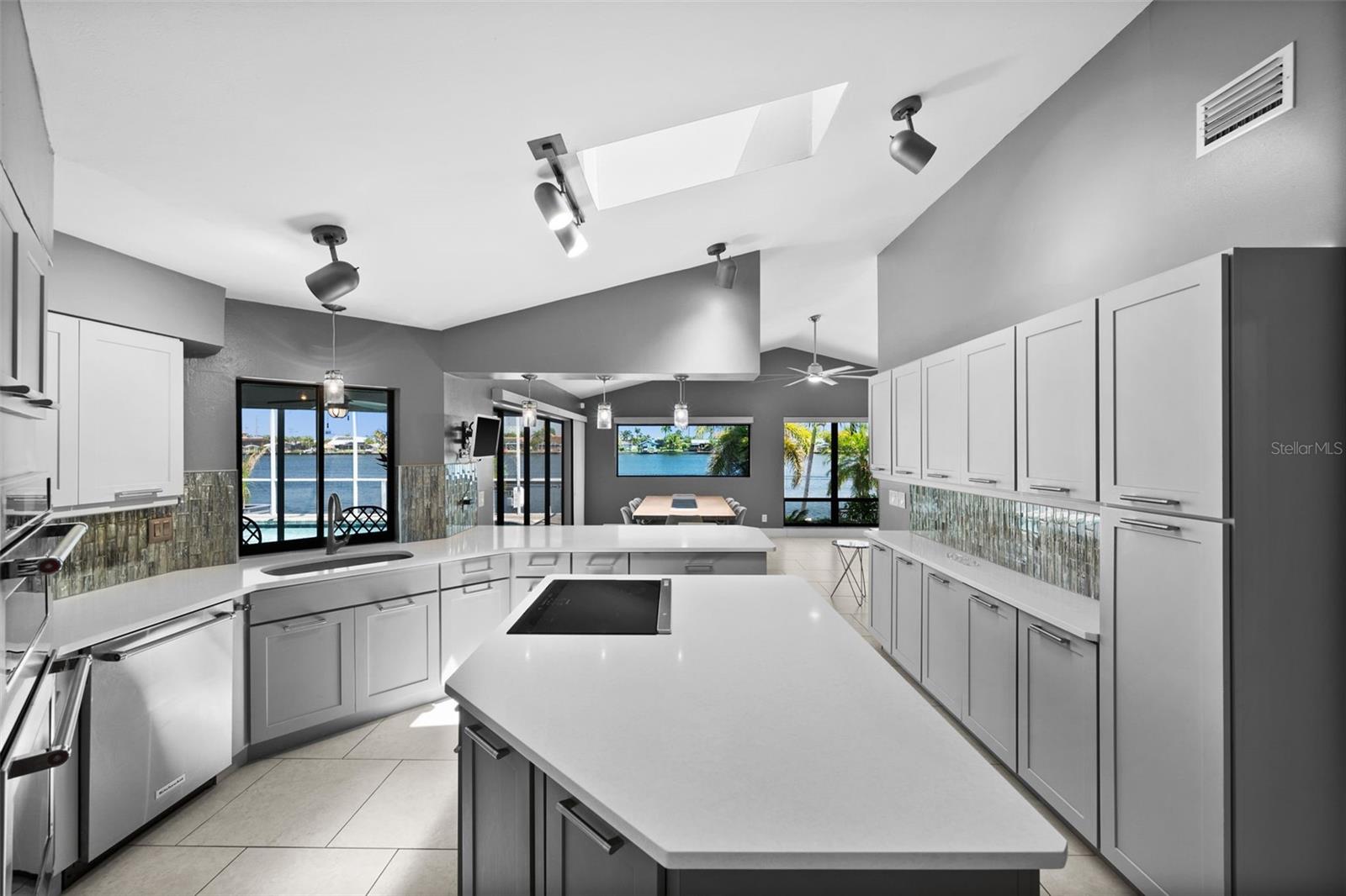 Desfrute de vistas panorâmicas à beira do lago e acesso do Golfo desta casa lindamente atualizada no Lago Thunderbird, parte dos famosos 8 lagos de Cape Coral. Localizado em um beco sem saída tranquilo, esta casa de 3 quartos e 2,5 banheiros oferece mais de 2.300 pés quadrados de espaço de estar com vistas incríveis de água das principais áreas de estar, sala de estar, sala de jantar e suíte primária. A cozinha é o coração da casa e possui bancadas de quartzo, todos os appliances KitchenAid, incluindo um forno duplo. Há um sistema de ventilação retrátil de eliminação na ilha, todos os aparelhos inoxidáveis, toneladas de espaço para o gabinete, uma geladeira de vinho/bebida, café e despensa. Está aberto a uma espaçosa sala de estar e área de jantar, com grandes janelas e espreguiçadeiras de embolsar que levam à piscina e à Lanai-perfeitas para grandes reuniões e vida interior para fora. O exterior é um retiro tropical privado com uma piscina de água salgada aquecida, teto de Lanai com painéis de madeira, gabinete rastreado, deck de pavimentação e várias áreas de estar ao ar livre. Há um banho de bilhar dedicado, uma sala de armazenamento de grandes dimensões fora da Lanai e docas de concreto e madeira ao longo da água. O quarto principal oferece vistas deslumbrantes, um closet e acesso direto à área da piscina. O banho privativo inclui pias duplas, uma banheira de imersão e um chuveiro enorme de azulejos. Destaques adicionais incluem um novo telhado em 2024, um aquecedor de água sem tanques em 2022, tetos de madeira personalizados, coberturas de janelas atualizadas, um quintal cercado e uma garagem de 2 carros de entrada lateral. Esta casa verifica todas as caixas para localização, layout e estilo de vida - apenas minutos de jantar, compras, um curto passeio de barco para praias, o Golfo e tudo o que o sudoeste da Flórida tem a oferecer.