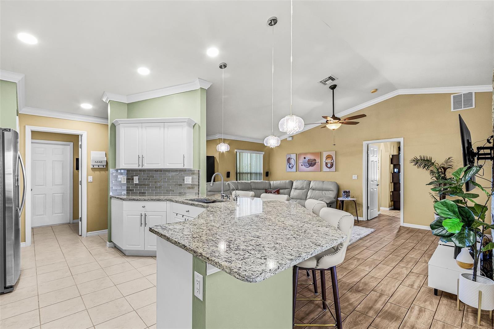 Linda atualizada de 3 camas e 2 banheiros pronta para se mudar para casa em uma zona de inundação! 1.448 pés quadrados construídos em 2003 com novo telhado (2023), aquecedor de água (2021), AC 2016, todas as avaliações pagas. Esta casa apresenta pisos de ladrilhos, a cozinha possui bancadas de granito com um backsplash impressionante, aparelhos inoxidáveis e uma despensa. Lavadora e secadora incl. Desfrute de uma grande suíte master com 2 armários, banheiro com vaidade dupla, chuveiro atualizado com portas de vidro. O Outdoor inclui uma varanda da frente e lanai, cercada em quintal com árvores frutíferas, Systrinkler System 2017, Calhas ao redor, saída elétrica extra para carregar seu carro ou adicionar um gerador, galpão de armazenamento e muito mais ... Novo bairro incrível e tranquilo que fica perto de jantar, fazer compras e muito mais!