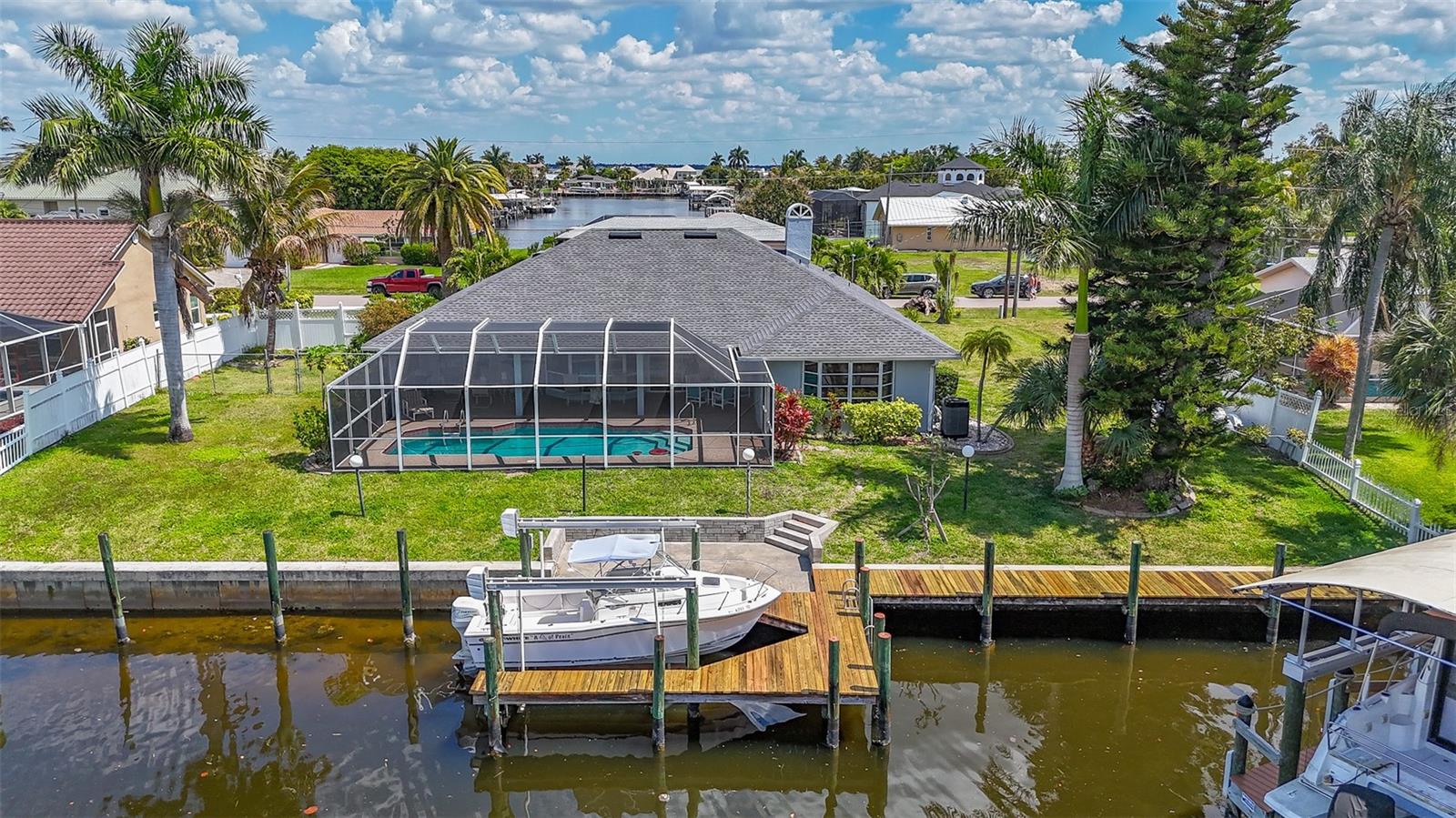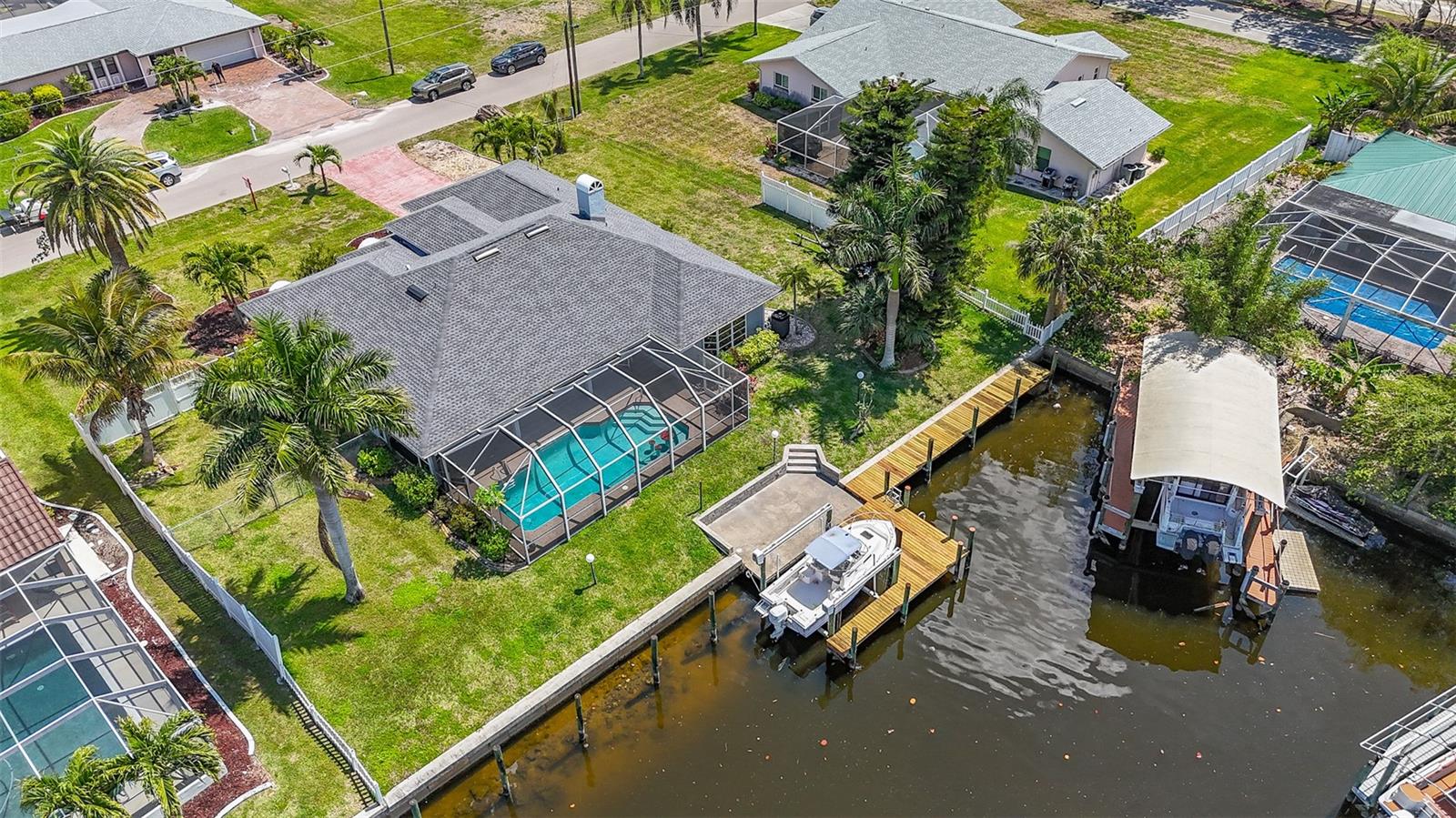 Bem-vindo ao retiro dos seus sonhos à beira-mar no altamente desejável bairro com acesso ao Palaco Grande Sailboat! Esta deslumbrante propriedade está inserida num lote triplo, oferecendo uma proximidade incomparável ao rio. Com 120 pés de frente para o mar e um cais envolvente de 26 pés com um elevador de 10.000 libras, os entusiastas da navegação irão se deliciar com a conveniência e o luxo que esta casa oferece. Saia para a gaiola da piscina reformada e para a área da piscina recém-acabada com piso de pedra - um oásis perfeito para relaxamento e entretenimento. Aproveite a conveniência de um banho externo depois de um dia na água. Com 2 controles deslizantes que levam à área da piscina, a vida interna e externa é perfeita e sem esforço. Famílias com amigos peludos apreciarão a área cercada para cães com portas convenientes para cães. Aconchegue-se nas noites frias de inverno junto à lareira, acrescentando calor e ambiente à casa. No interior, as atualizações continuam com pisos de vinil de luxo totalmente novos, exceto no quarto. A cozinha possui armários novos, bancadas de granito nível 5 e eletrodomésticos atualizados, perfeitos para entusiastas da culinária. Esta casa foi meticulosamente mantida com uma pintura profissional completa por dentro e por fora. O AC tem 7 anos, o tanque de água quente tem 5 anos e o telhado é novo em 2024, garantindo anos de vida sem preocupações. Recursos adicionais incluem novas persianas e tratamentos de janela, além da opção de móveis para combinar com a venda. Curioso sobre o barco? Informe-se sobre a possibilidade de incluí-lo na venda e tenha certeza de que o vendedor está disposto a auxiliar no financiamento do proprietário com a entrada certa. Não perca esta oportunidade de possuir um pedaço do paraíso em um dos bairros mais procurados de Cape Coral. Agende sua exibição hoje mesmo e comece a viver o estilo de vida à beira-mar que você sempre sonhou!