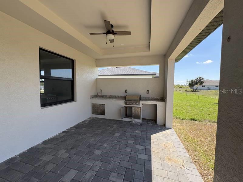 Impressionante casa de 3 quartos e 2 banheiros construída em 2023 com acabamentos atualizados. 1.931 pés quadrados de área útil com tetos em caixotões na grande sala, bancadas de quartzo com veios calacatta e borda de ilha em cascata, armários shaker brancos e sancas. Chuveiro master walk-in com piso de pedra, chuveiros duplos e nicho de mosaico. Piso de cerâmica por toda parte. Lavanderia exclusiva com pia e pia com tampo de quartzo. Varanda coberta com piso em pavimentação, ventilador de teto e cozinha externa embutida com balcão de granito, churrasqueira e pia. Entrada de automóveis em pavimentação, portão de garagem de design escuro e piso de garagem revestido com epóxi. Garagem anexa para 2 carros. Imóvel encontra-se devoluto e disponível para visualização imediata.