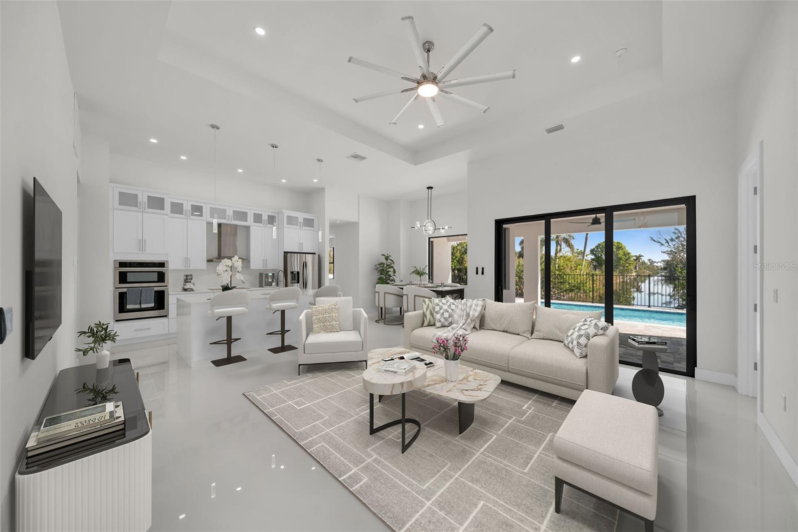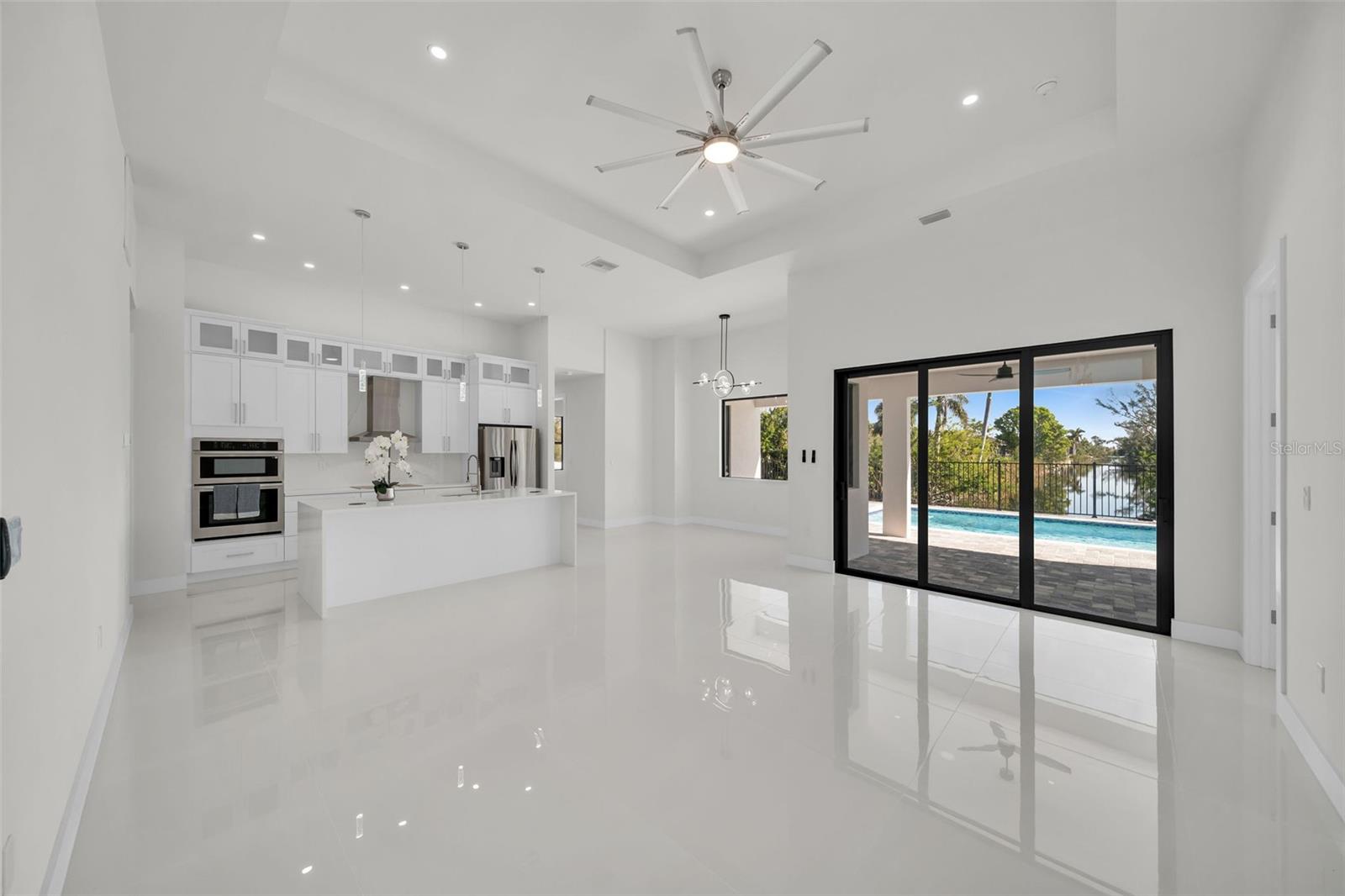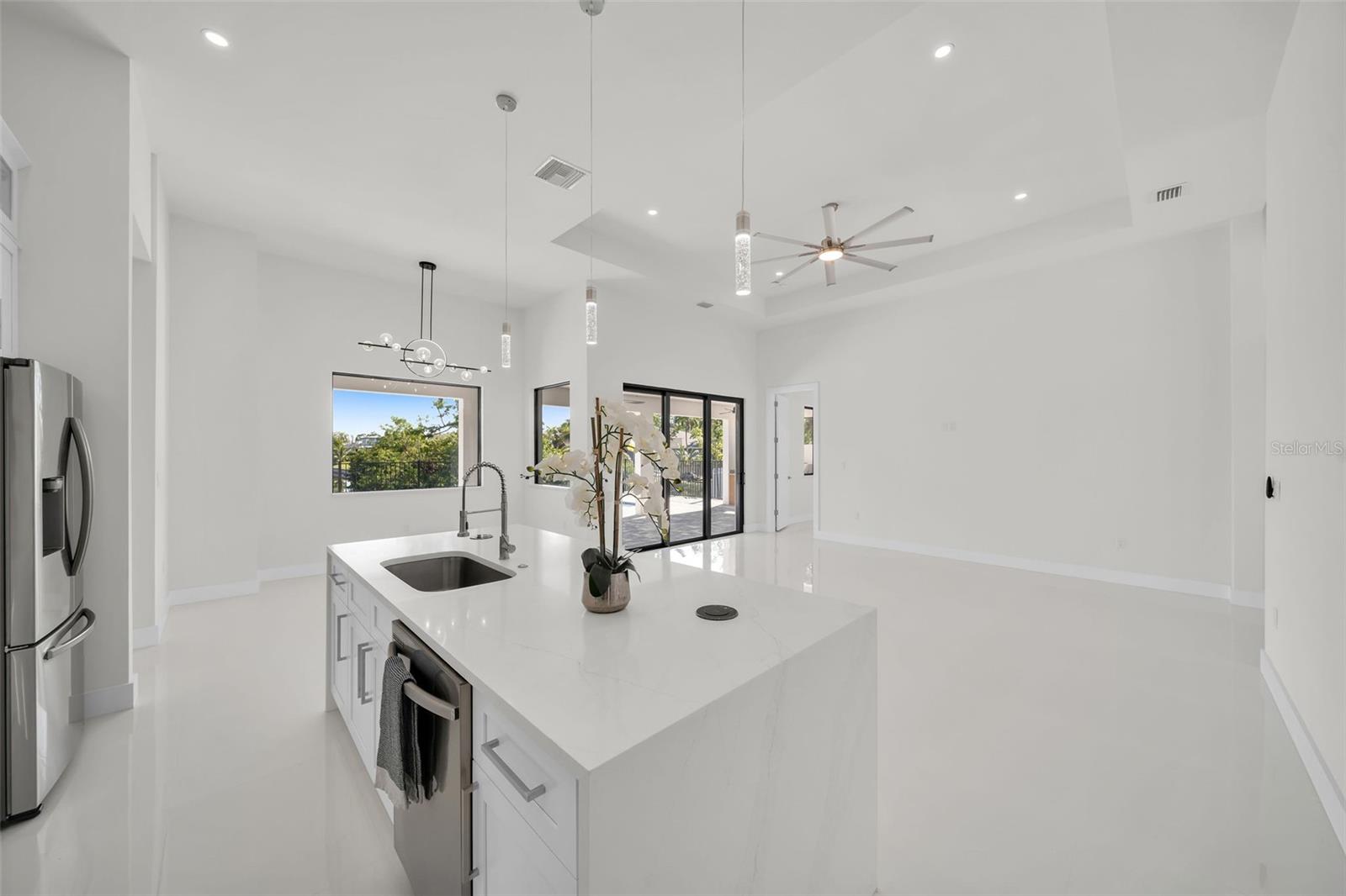 Bem-vindo à casa dos seus sonhos na Flórida! Esta nova casa com piscina tem um design moderno e elegante de conceito aberto que combina perfeitamente a vida interna e externa. Delicie-se com luxuosos acabamentos contemporâneos por toda parte. Com 4 quartos espaçosos e 3 banheiros, esta casa foi projetada pensando no conforto e no estilo. A elegante Suíte Master é um retiro privado, completo com um requintado sistema de chuveiro com efeito de chuva, chuveiro de mão e armários duplos "para ele e para ela" com prateleiras personalizadas. A grande cozinha e os banheiros apresentam impressionantes bancadas de quartzo, oferecendo beleza e durabilidade. A cozinha gourmet é o sonho de qualquer chef, com armários personalizados, uma grande ilha e acabamentos de primeira linha - perfeita para cozinhar e se divertir. Saia para o seu oásis pessoal, onde uma fantástica piscina de água salgada espera por você. Aproveite o amplo pátio pavimentado e a cozinha ao ar livre, completa com pia, churrasqueira e muito espaço para a família e amigos se reunirem. Esta casa está situada no final de um tranquilo canal navegável de água doce, oferecendo vistas desobstruídas e deslumbrantes que se estendem pelo curso de água - perfeitas para relaxar enquanto aprecia o ambiente sereno. Situada em um tranquilo canal navegável de água doce em Cape Coral, esta casa oferece acesso ao extenso sistema de canais de água doce da região. É um achado raro neste bairro muito procurado, oferecendo um pedaço do paraíso a poucos minutos de mercados, restaurantes, farmácias e das belas praias do sudoeste da Flórida. Localizado com fácil acesso a Fort Myers e aos aeroportos locais, você desfrutará da conveniência da água e esgoto da cidade, além da tranquilidade adicional de um saldo de avaliações baixo - menos de US$ 2.000. Com garantias do construtor incluídas, esta casa está pronta para você se mudar e começar a criar memórias. Não perca esta propriedade excepcional - agende sua visita hoje e veja por si mesmo porque esta casa é verdadeiramente única!