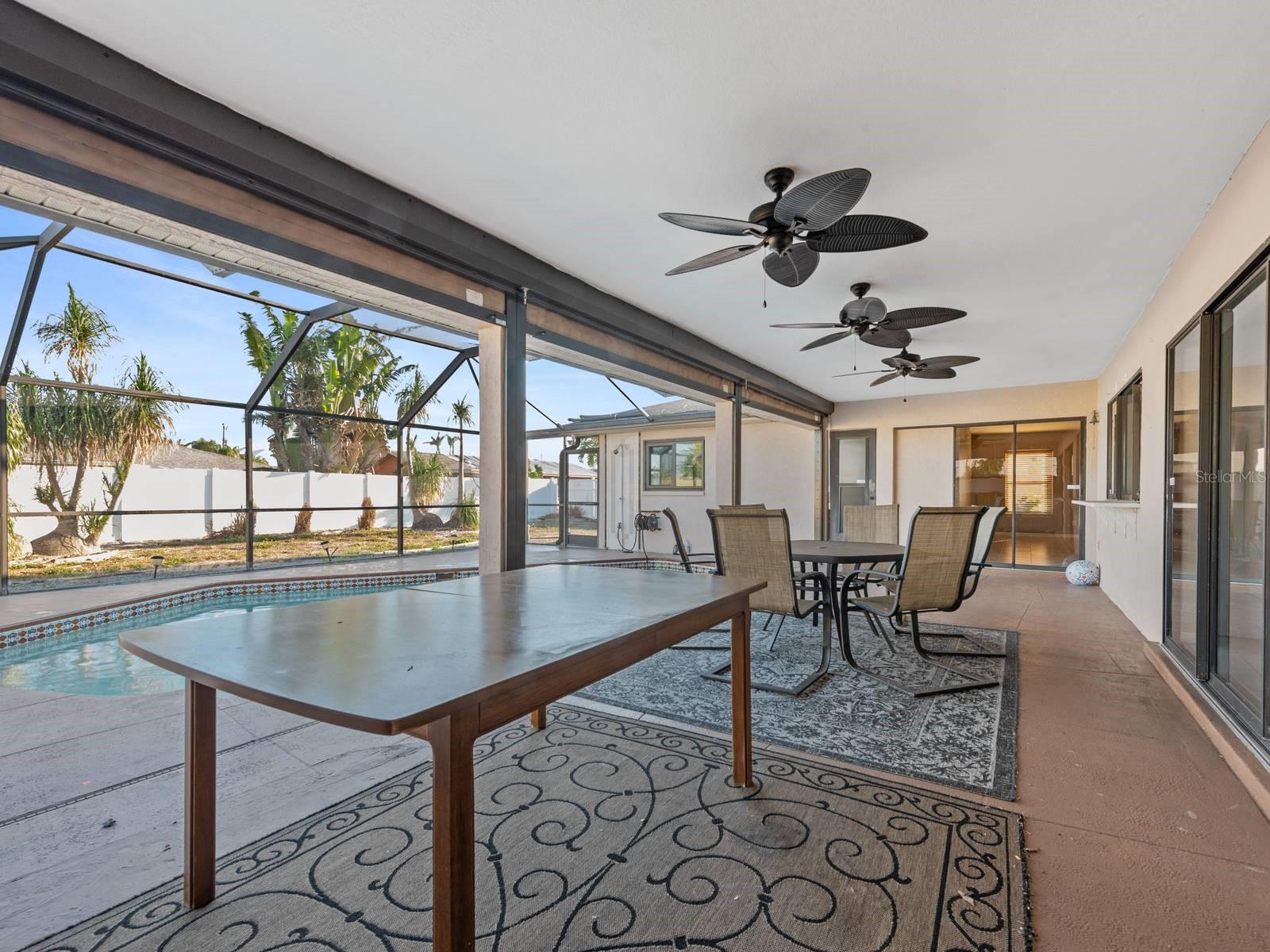 Fabulosa e espaçosa casa unifamiliar Casa com piscina na pitoresca comunidade de Cape Coral. Não em uma zona de inundação! Esta casa tem mais de 1.800 pés quadrados, 3 quartos, 2 banheiros completos, PAINÉIS SOLARES e está situada em quase 1/4 de acre! Planta aberta com cores neutras e muita luz natural por toda parte. Entre pelas portas duplas e você será recebido por uma ampla sala de estar com piso cerâmico e ventilador de teto. Continue para a cozinha, que foi remodelada em 2021 com designs, toques e cores personalizados, incluindo a adição de uma enorme despensa e bar para sentar na cozinha. Adjacente está a sala familiar com vista para a varanda coberta e para a grande piscina. Desfrute da sua piscina privada sem preocupações com produtos químicos agressivos porque a piscina funciona em sistema de 'Água Salgada', utilizando sal que se converte em cloro, o que é muito suave para a sua pele, cabelo e roupas. Janelas e portas contra impacto de furacão foram adicionadas em 2016 para maior eficiência e podem reduzir o seguro do seu proprietário. Telas à prova de furacões também foram adicionadas à varanda para maior privacidade. Todos os 3 quartos possuem armários e ventiladores de teto. O quarto principal em plano dividido é separado dos outros 2 quartos. O banheiro principal possui armários duplos e pias, cômoda separada e Step-In-Tub, que foi adicionado em 2022. Os painéis solares ajudarão você a economizar dinheiro em suas contas de serviços públicos. O TELHADO foi substituído em 2022! O ar condicionado foi substituído em 2023! Perto de compras. restaurantes e o encantador centro de Cape Coral. O orgulho de propriedade aparece nesta propriedade bem conservada e atualizada, com mais de US$ 100.000 nos últimos anos! Tudo foi feito para você e esta propriedade é espetacular! Tudo que você precisa fazer é desfazer as malas e aproveitar o estilo de vida da Flórida! Bem-vindo ao lar!