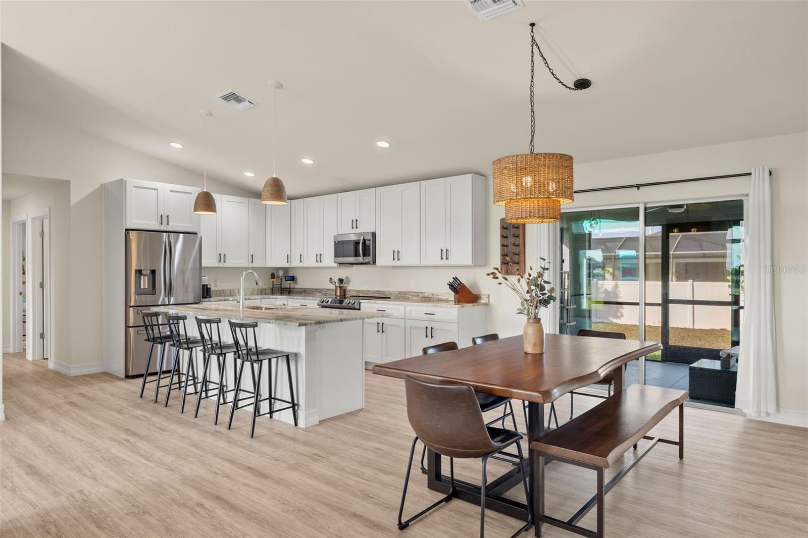 Bem -vindo à sua casa ideal! Esta linda casa de quatro quartos e dois banheiros apresenta uma sala de estar aberta convidativa cheia de luz natural. Os espaços de estar e jantar combinados fluem sem esforço para uma cozinha lindamente trabalhada, completa com armários agitadores de luz alta, bancadas em granito e uma ilha independente com uma pia, tornando -a perfeita para refeições familiares divertidas ou casuais. Experimente o oásis familiar ideal com este design de piso dividido cuidadosamente planejado! O layout espaçoso distingue a suíte primária dos outros três quartos e um banheiro compartilhado, oferecendo privacidade e tranquilidade. O quarto principal é um verdadeiro santuário, apresentando um closet de tamanho generoso com iluminação para fácil organização. Os três quartos adicionais oferecem amplo espaço para sua família, convidados ou até um escritório em casa dedicado. Os banheiros primários e de hóspedes possuem o luxo de pias duplas e bancadas de granito elegantes para a conveniência de todos. A planta adaptável garante que todos tenham seu próprio espaço, tornando -o um excelente ajuste para a vida familiar e o trabalho remoto. Saia para o grande lanai, oferecendo muito espaço para reuniões ao ar livre e o cenário perfeito para uma piscina futura. Desfrute de tranquilidade com esta casa bem projetada, que vem com uma saída externa útil especificamente para uma conexão fácil do gerador. Esse recurso valioso garante que você possa facilmente alimentar aparelhos essenciais durante interrupções, proporcionando segurança e conforto para sua família. Aprecie a confiança que vem por estar preparada para qualquer situação, enquanto reside em um ambiente bonito e convidativo. Não deixe que essa oportunidade passe para possuir uma casa que equilibra a funcionalidade e a segurança! Esta propriedade é ideal para aqueles que buscam conforto, estilo e uma pitada de luxo. Aproveite a chance de torná -lo seu!