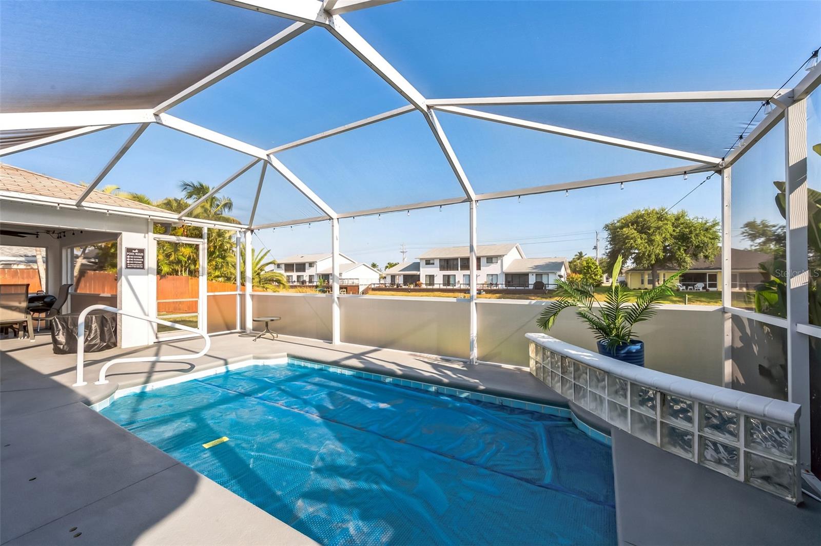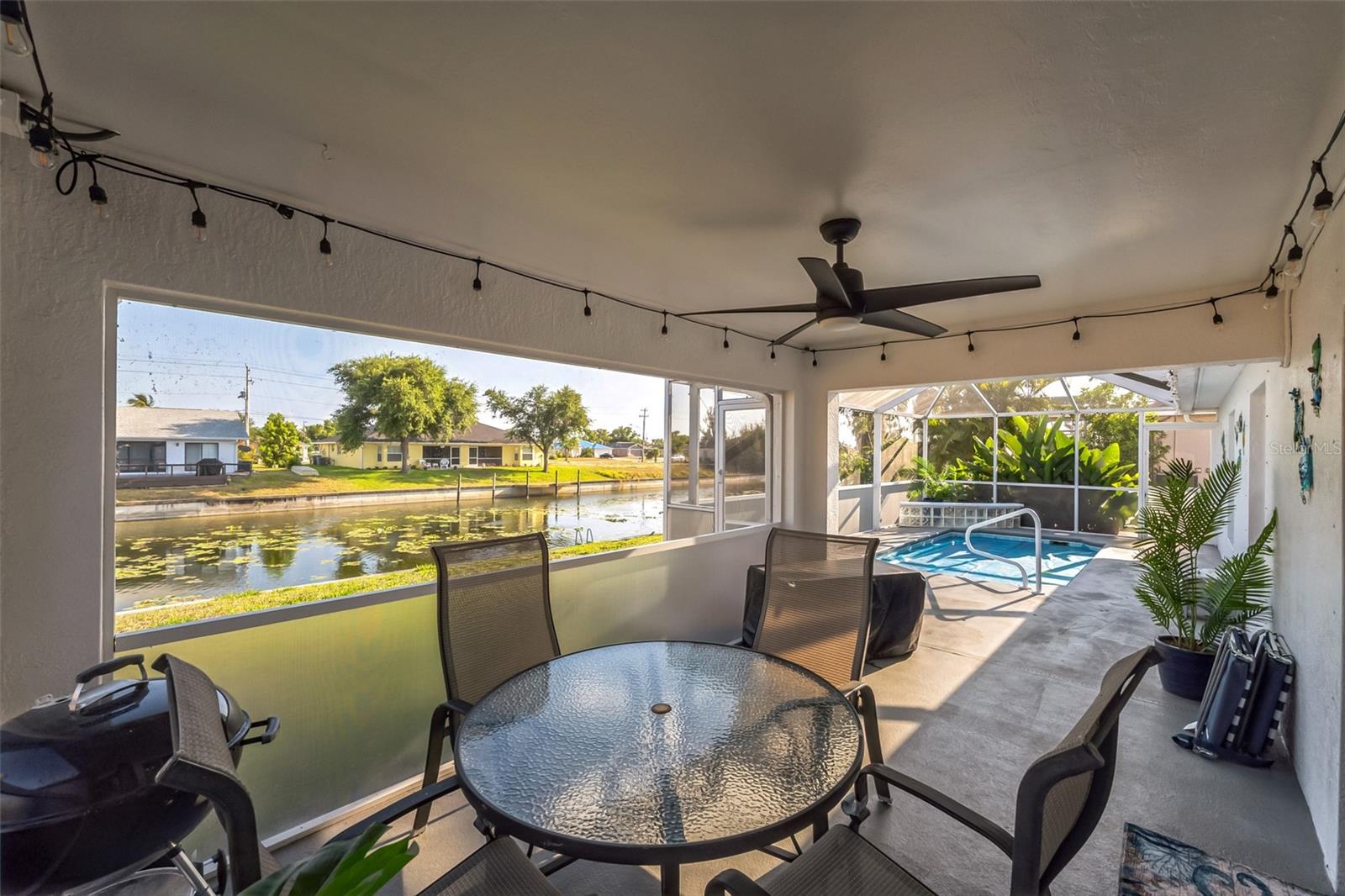 Deve ver esta piscina de 3 quartos/2 banheiros em casa com vista para o canal de água doce Barkentine na área de SW muito desejada de Cape Coral! A cozinha brilhante e espaçosa é completa com utensílios de aço inoxidável, luminárias atualizadas, bar de café da manhã e área de jantar. A sala é enorme com tetos abobadados e leva à área de pátio/piscina traseira. A lanai selecionada e a piscina de água doce aquecida são complementadas por um espaço disfarçado com uma vista relaxante do canal, onde você vai gostar de pescar, caiaque e remar! Há uma planta baixa, para que os proprietários tenham muita privacidade. A suíte master tem um closet e muito espaço para uma cama king-size. O banheiro privativo inclui uma banheira profunda e uma combinação de chuveiro. O Den pode ser facilmente convertido em uma sala de sogros/sala flexível. Há uma garagem de 2 carros com espaço para muito mais carros na garagem! Os recursos adicionais incluem: janelas/persianas, sistema de sprinklers/poço, sistema de segurança e HVAC de 2 anos! Sem taxas de HOA! Sem zona de inundação! Conveniente para Fort Myers, aeroportos, restaurantes, compras, entretenimento e praias!