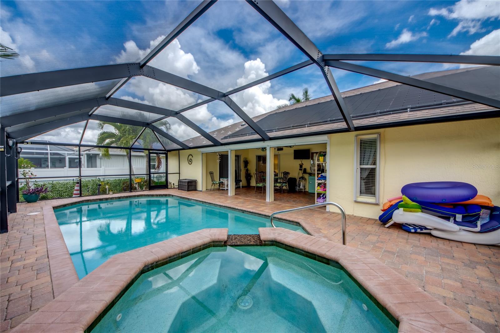 **NOVO TELHADO SENDO INSTALADO AGORA, LICENÇAS RETIDAS **Charmosa casa 3BR/2BA em Cape Coral - perfeita para investidores ou quem procura férias!** Bem-vindo à sua próxima oportunidade de investimento ou casa de férias dos sonhos em 2566 SW 27th Ave, Cape Coral, Flórida! Esta propriedade de 1.548 pés quadrados, lindamente mantida, é uma joia no coração de um bairro maravilhoso, oferecendo conforto e conveniência. **Destaques da propriedade:** - **Pronto para uso imediato**: Mude-se imediatamente ou comece a alugar imediatamente. Esta casa vem totalmente mobiliada com uma decoração de bom gosto, tornando-a uma transição fácil para Airbnb, VRBO ou sua escapadela pessoal. - **Atualizações Modernas**: Equipada com **telhado novo** e **painéis solares**, esta casa não só cuida do seu conforto, mas também das suas contas de energia. Adote uma vida ecológica com custos reduzidos. - **Oásis ao ar livre**: mergulhe no relaxamento com uma **piscina de água salgada e spa**, ambos aquecidos para diversão durante todo o ano. A área da piscina é perfeita para se divertir ou relaxar depois de um dia sob o sol da Flórida. - **Belo paisagismo**: O quintal é um cenário pitoresco com um paisagismo exuberante e bem cuidado que aumenta a atratividade da casa e oferece um espaço ao ar livre sereno. - **Aparelhos atualizados**: Todos os aparelhos são mais novos, garantindo que a funcionalidade e o estilo estejam ao seu alcance. - **Características internas**: Espaçosos 3 quartos e 2 banheiros, projetados com uma estética moderna e conforto em mente. Cada quarto oferece um retiro acolhedor para hóspedes ou familiares. - **Potencial de Investimento**: Com o seu estado chave na mão e características apelativas como a instalação solar e piscina aquecida, este imóvel destaca-se como uma excelente opção para arrendamento de curta duração, prometendo um bom retorno do investimento. - **Localização**: Situado em Cape Coral, desfrute da proximidade de comodidades locais, praias, restaurantes e entretenimento, tornando-o um local atraente para turistas e residentes. Esta propriedade não é apenas uma casa; é uma casa à espera de guardar memórias ou um investimento estratégico com rentabilidade. Esteja você procurando um retiro pessoal ou uma adição ao seu portfólio de aluguel, o 2566 SW 27th Ave oferece charme e potencial. Não perca esta oportunidade em um dos locais mais procurados da Flórida. Contate-nos hoje para uma visita e torne esta beleza de Cape Coral sua!