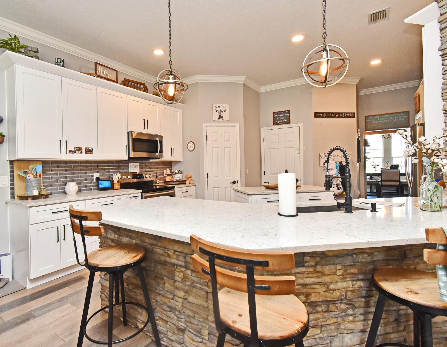 Bem-vindo à sua próxima casa em um condomínio fechado convidativo, onde o conforto e a conveniência estão integrados. Esta residência totalmente atualizada de cinco quartos e quatro banheiros oferece mais de 3.200 pés quadrados de espaço cuidadosamente projetado. A partir do momento em que você entra, você apreciará o artesanato, seja na área de jantar formal para festas de fim de ano ou na aconchegante sala de família completa com lareira pronta para uma noite de cinema ou para assar marshmallows - sem necessidade de fogueira. A cozinha tem vista para a piscina e para o pátio, facilitando o entretenimento. Falando em brisa, seu novo telhado garante que você fique seco e livre de preocupações quando as chuvas da Flórida chegarem. O espaço ao ar livre rouba a cena, com um quintal privativo perfeito para churrascos de fim de semana ou tardes preguiçosas. O quarto principal oferece muito espaço para relaxar, completo com closet, banheira de jardim e chuveiro separado. Se os hóspedes vierem para ficar - ou parecerem nunca mais sair - a suíte dos sogros inclui sua própria fritadeira de micro-ondas/ar e fogão para total independência (ou fuga). Convenientemente localizado perto das principais estradas, lojas e restaurantes, você também está perto da Universidade da Flórida Central. Para os amantes da natureza e pequenos aventureiros, o Red Bug Lake Park está logo ali. E se você estiver viajando, encontrará as estações de ônibus e trem próximas à mão. Esta casa combina qualidade de construção, vida flexível e uma vibração comunitária calorosa. Traga sua escova de dentes e maiô – seu próximo capítulo o aguarda.