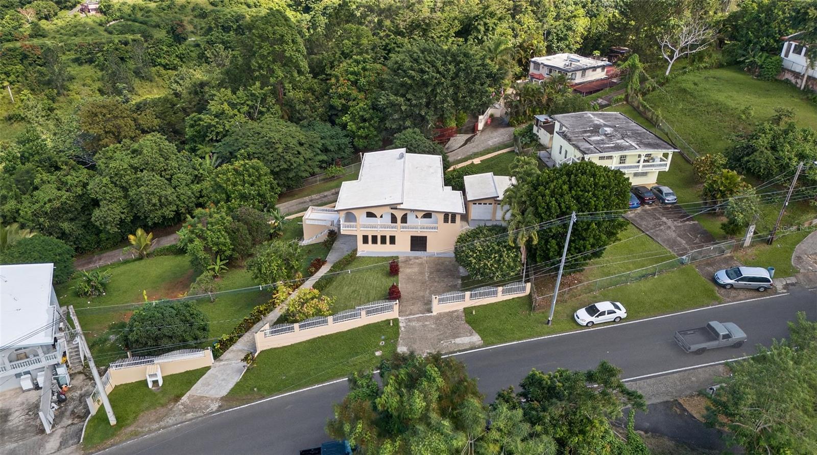 Linda propriedade em Guavate, Cayey, com clima fresco de montanha, vista para a natureza e um terreno de 1.482 m². A casa possui duas unidades habitacionais de concreto, cada uma com medidor de energia elétrica, perfeitas para morar em uma unidade e alugar a outra, ou como investimento. A casa principal oferece 2.921 pés quadrados, 3 quartos, 3 banheiros, garagem para 2 carros, telhado em excelente estado e varanda com vista deslumbrante. A segunda unidade tem 1.500 pés quadrados, 2 quartos, 1 banheiro e entrada privativa. Inclui cerca perimetral, terraço aberto e grande área de armazenamento. Ótima localização próximo à PR-184 com fácil acesso à PR-52.