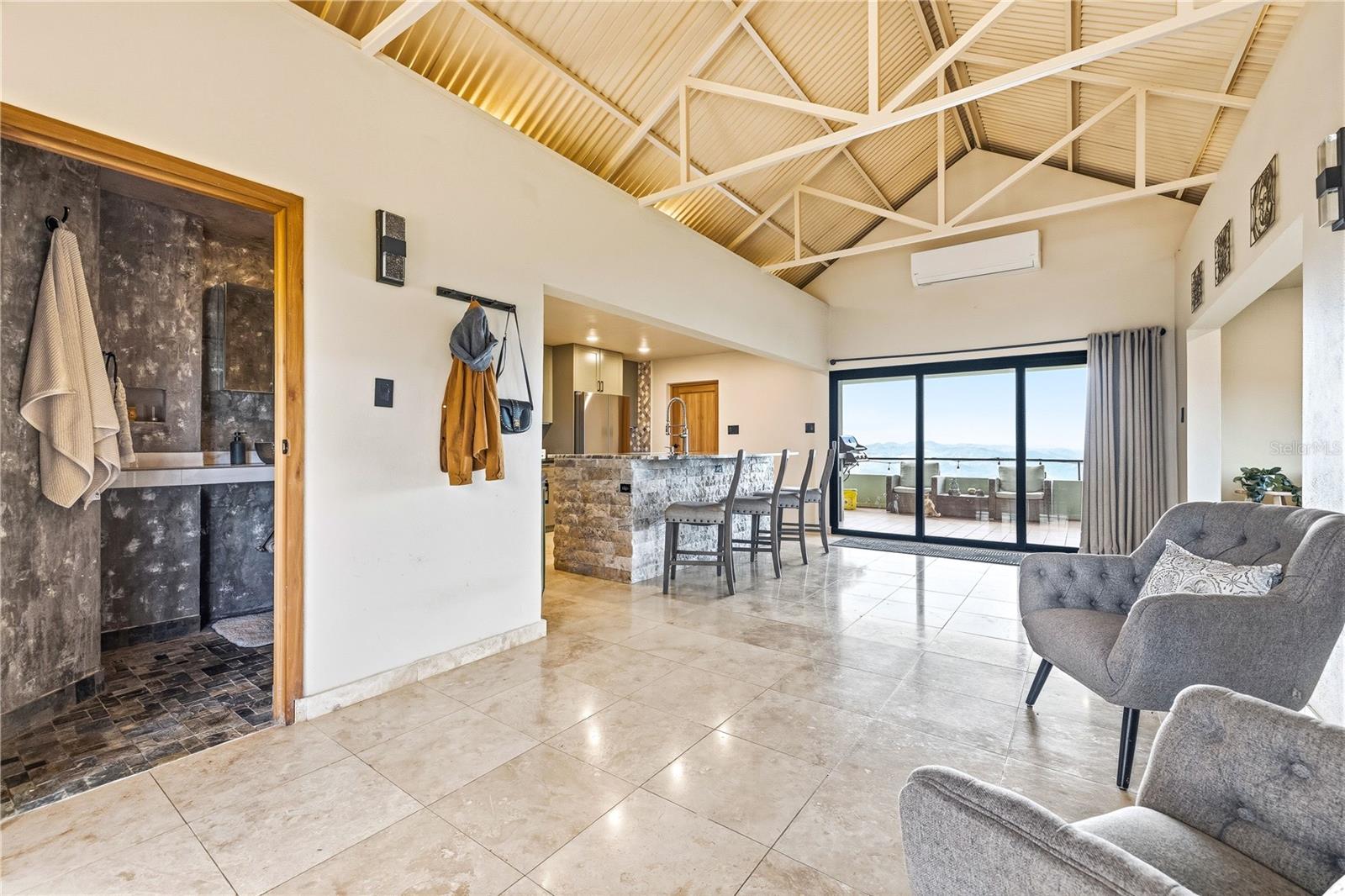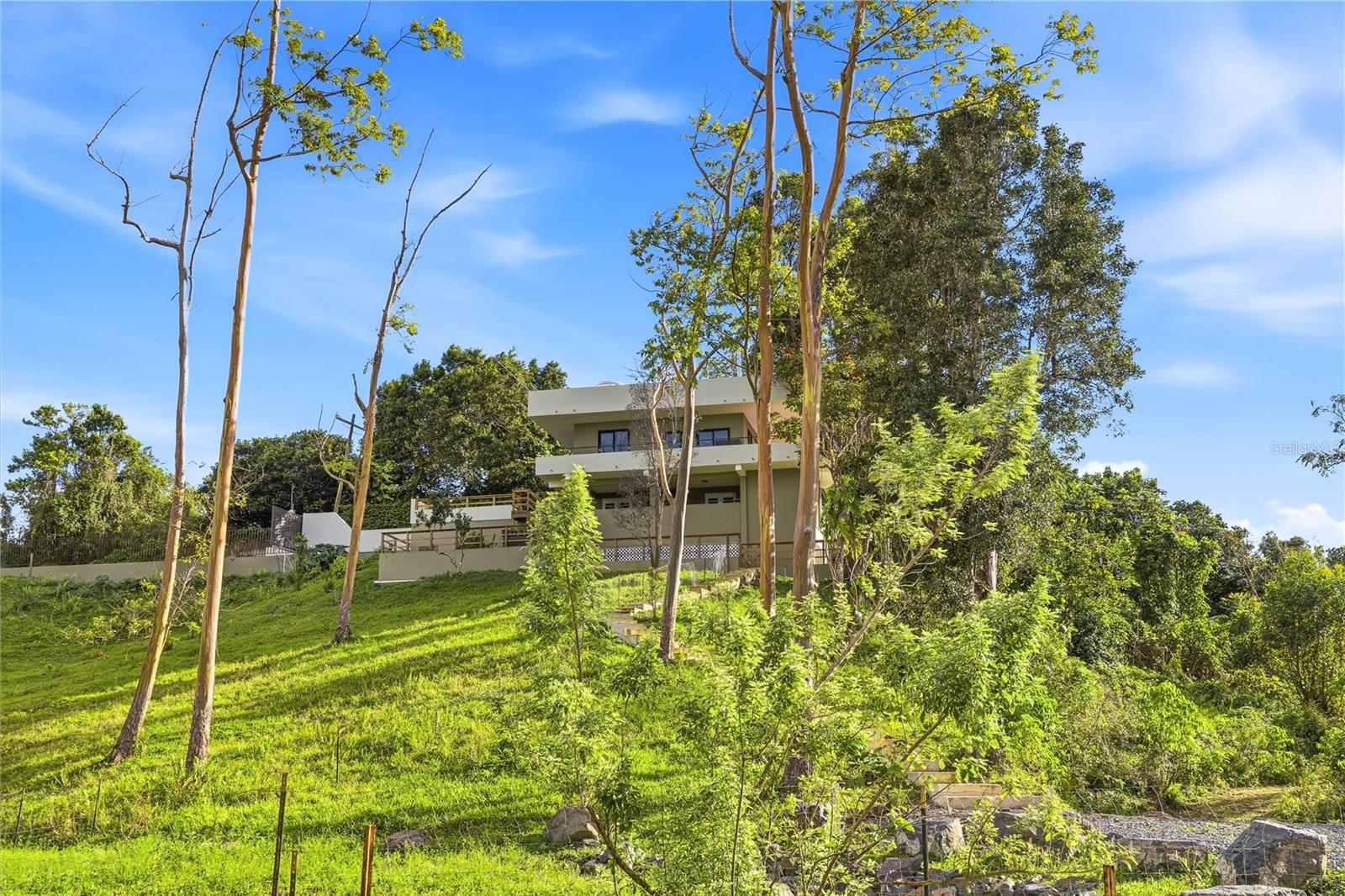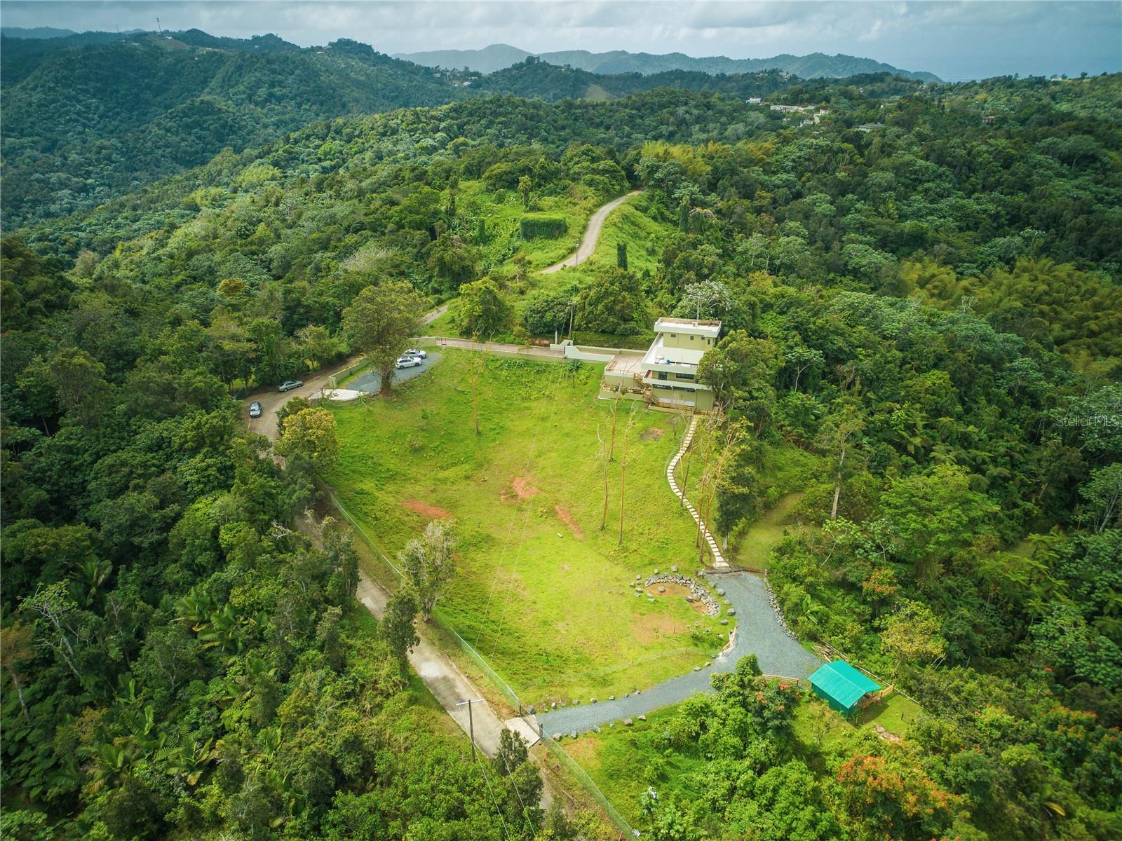 Retiro Privado no Topo da Montanha em Cayey – 5 Acres com Vista Panorâmica Situada a aproximadamente 1.000 metros nas montanhas centrais de Porto Rico, esta excepcional casa de 4 quartos e 4 banheiros fica em 5 acres de terra exuberante, oferecendo vistas de 120° do horizonte e privacidade incomparável. Acessada através de uma longa entrada privada, a propriedade está rodeada pela natureza, criando um refúgio sereno e tranquilo. A apenas 10 minutos do centro de Cayey e a poucos minutos da cultura e culinária local de Guavate. Projetada para conforto e vida moderna, a casa possui internet Starlink de alta velocidade, sistema solar de 10 quilowatts com bateria reserva alimentando circuitos essenciais e gerador de gás, garantindo confiabilidade para residência em tempo integral ou trabalho remoto. A propriedade também inclui aquecedor solar de água, painel principal de 600 A, osmose reversa e sistema de água. O interior possui uma espaçosa suíte master no andar de cima com piso de travertino e cerâmica, acabamentos em PVC e quartzo, mesa personalizada e AC. A sala também tem ar condicionado, e a casa inclui fogão a gás, varanda envolvente e sistema de câmeras de segurança. As comodidades adicionais incluem garagem para 1 carro com amplas estantes embutidas, lago, barracão com luz e água e oportunidade licenciada para construir mais uma casa na propriedade. O terreno é rico em árvores frutíferas tropicais, incluindo tangerina, banana, goiaba, abacate, laranjeira e uma árvore Pana, além de 3 cabras que ajudam na manutenção do terreno. Com o ar mais fresco da montanha, pôr do sol deslumbrante no horizonte oeste e proximidade de restaurantes locais, este retiro combina privacidade, beleza natural e infraestrutura moderna, tornando-o ideal como residência privada, casa de férias ou oportunidade de investimento. Aproveite tudo o que o campo tem para apresentar estando perto da cidade!