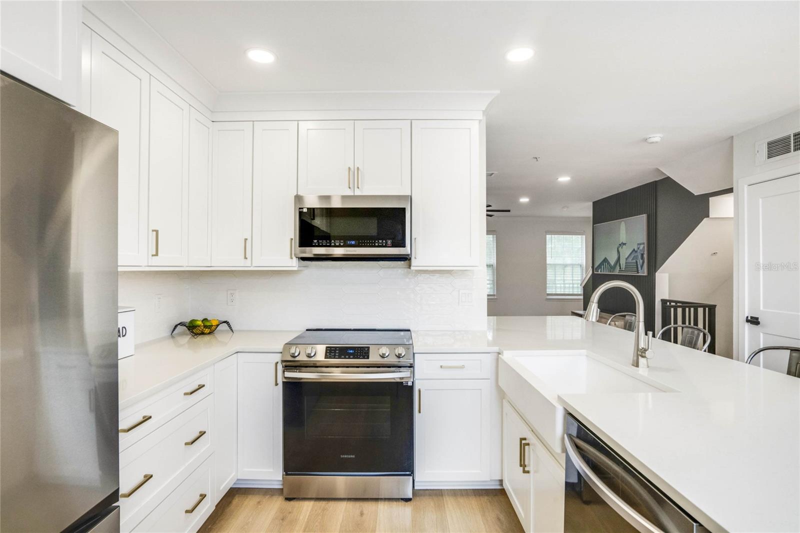 Bem-vindo ao 1050 Waterside Dr, carinhosamente conhecido como "The Treehouse" pelos atuais proprietários. Esta residência urbana de 3 andares totalmente renovada (2024) e pronta para morar está localizada na muito procurada comunidade de Siena at Celebration. Este lindo condomínio oferece vistas deslumbrantes do campo de golfe e do lago no conforto da sua sala de estar na Waterside Drive. O primeiro andar possui um estúdio versátil ou sala bônus, além de acesso a uma espaçosa garagem para dois carros que inclui piso de epóxi de design, novo sistema de iluminação e teclado para fácil acesso. Subindo para o segundo andar, você encontrará uma área iluminada e arejada que flui perfeitamente para uma cozinha de conceito aberto, que possui armários shaker totalmente novos, bancadas de quartzo e uma cafeteria elegante adornada com papel de parede lavável da Lamborghini. O terceiro andar abriga três quartos totalmente atualizados, incluindo uma suíte master com paredes elegantes e novas arandelas de parede. Ambos os banheiros foram totalmente reformados com piso moderno, azulejos de chuveiro, pias, divisórias de vidro e acessórios totalmente novos. Esta residência urbana foi amplamente atualizada, com pintura fresca, novo piso de tábuas laminadas com aparência de madeira, rodapés e portas atualizados e belos degraus e degraus de carvalho. Iluminação embutida foi adicionada por toda parte e a área de jantar é complementada por um lustre regulável. Novas persianas de madeira falsa, ferragens de porta atualizadas e novos eletrodomésticos Samsung completam a transformação. A casa também possui uma nova porta de entrada, novas portas de armário nos quartos e um aquecedor de água quente totalmente novo. Viver em Celebration, FL oferece mais do que apenas uma bela casa. O condomínio foi projetado para luxo e lazer, com acesso a parques, playgrounds, piscinas comunitárias e mais de 42 quilômetros de trilhas para caminhada e ciclismo. Você também estará a poucos passos de restaurantes sofisticados, entretenimento e trilhas naturais pitorescas. A localização privilegiada desta casa oferece fácil acesso à I-4, 417, 429 e World Drive, com o Walt Disney World a apenas 10 minutos de distância e o Aeroporto Internacional de Orlando a apenas 25 minutos de carro. Esta moradia totalmente renovada é a mistura perfeita de luxo, conforto e conveniência em uma das comunidades mais desejáveis da Flórida Central. Não perca a oportunidade de fazer da “The Treehouse” a casa dos seus sonhos!